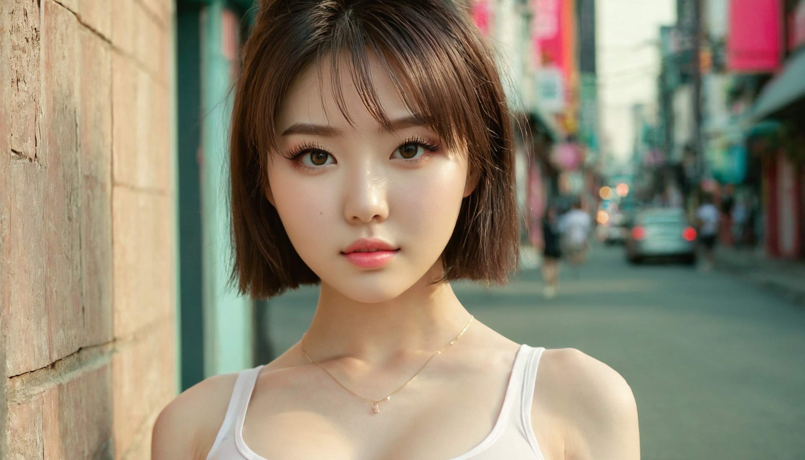 {"3": {"inputs": {"seed": 896388620178149, "steps": 64, "cfg": 7.33, "sampler_name": "dpmpp_2m", "scheduler": "karras", "denoise": 1.0, "model": ["27", 0], "positive": ["6", 0], "negative": ["7", 0], "latent_image": ["5", 0]}, "class_type": "KSampler"}, "4": {"inputs": {"ckpt_name": "juggernautxl.safetensors"}, "class_type": "CheckpointLoaderSimple"}, "5": {"inputs": {"width": 1344, "height": 768, "batch_size": 1}, "class_type": "EmptyLatentImage"}, "6": {"inputs": {"text": "18 year old girl, (ukrainian:1.00), (korean:1.06), (temptress:1.08), (seductive facial expression:0.96), (beautiful eyes:1.05), (eyelashes:1.05), (blush:1.11), (sexy lips:1.13), (detailed face:1.12), (seductive pose:1.12), (pale skin:1.07), (slim:0.98), (cute:1.13), (idol:1.06), (in a seductive pose:1.01), (large perky breasts:1.00), (cleavage:1.09), (thigh gap:1.04), (white tanktop:1.03), busy street, (natural looking skin:1.07), (soft lighting:1.01), (detailed skin:1.01), (portra:1.09), (textured skin:1.05), (skin fuzz:1.00), (candid cinema:1.09), (film:1.05), (RAW:1.01)", "clip": ["27", 1]}, "class_type": "CLIPTextEncode"}, "7": {"inputs": {"text": "(bad hands:1.05), (watermark:1.13), (low resolution:1.08), (open mouth:1.10), (twisted:1.07), (distorted:1.14), (worst quality:1.09)", "clip": ["27", 1]}, "class_type": "CLIPTextEncode"}, "8": {"inputs": {"samples": ["3", 0], "vae": ["4", 2]}, "class_type": "VAEDecode"}, "25": {"inputs": {"lora_name": "nudify_xl.safetensors", "strength_model": 0.29, "strength_clip": 0.23, "model": ["4", 0], "clip": ["4", 1]}, "class_type": "LoraLoader"}, "26": {"inputs": {"lora_name": "shirtlift_SDXL_v2.safetensors", "strength_model": 0.15, "strength_clip": 0.17, "model": ["25", 0], "clip": ["25", 1]}, "class_type": "LoraLoader"}, "27": {"inputs": {"lora_name": "PerfectEyesXL.safetensors", "strength_model": 0.13, "strength_clip": 0.06, "model": ["26", 0], "clip": ["26", 1]}, "class_type": "LoraLoader"}, "30": {"inputs": {"model_name": "4x_NMKD-Superscale-SP_178000_G.pth"}, "class_type": "UpscaleModelLoader"}, "31": {"inputs": {"upscale_model": ["30", 0], "image": ["8", 0]}, "class_type": "ImageUpscaleWithModel"}, "32": {"inputs": {"upscale_method": "lanczos", "scale_by": 0.5, "image": ["31", 0]}, "class_type": "ImageScaleBy"}, "33": {"inputs": {"pixels": ["32", 0], "vae": ["4", 2]}, "class_type": "VAEEncode"}, "34": {"inputs": {"seed": 896388620178149, "steps": 64, "cfg": 7.33, "sampler_name": "dpmpp_2m", "scheduler": "karras", "denoise": 0.3, "model": ["27", 0], "positive": ["6", 0], "negative": ["7", 0], "latent_image": ["33", 0]}, "class_type": "KSampler"}, "36": {"inputs": {"samples": ["34", 0], "vae": ["4", 2]}, "class_type": "VAEDecode"}, "39": {"inputs": {"filename_prefix": "comfyapi-1714738259008", "images": ["36", 0]}, "class_type": "SaveImage"}}