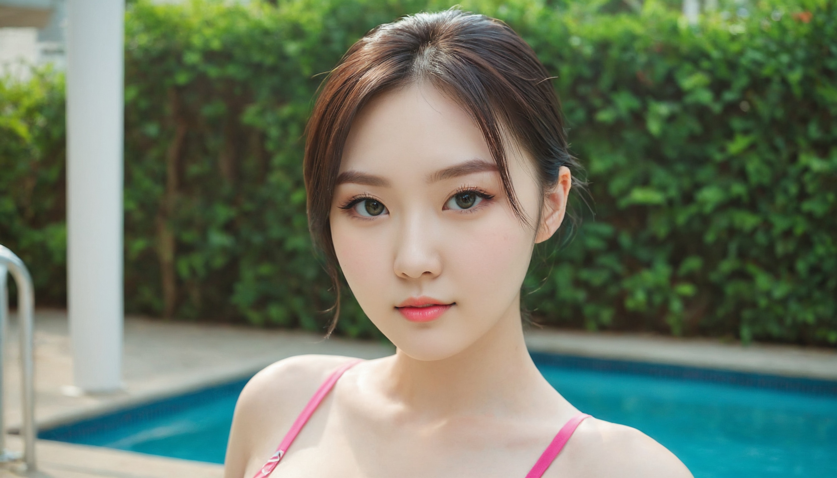 {"3": {"inputs": {"seed": 206008199330573, "steps": 32, "cfg": 5.48, "sampler_name": "dpmpp_2m", "scheduler": "karras", "denoise": 1.0, "model": ["27", 0], "positive": ["6", 0], "negative": ["7", 0], "latent_image": ["5", 0]}, "class_type": "KSampler"}, "4": {"inputs": {"ckpt_name": "juggernautXL_v8Rundiffusion.safetensors"}, "class_type": "CheckpointLoaderSimple"}, "5": {"inputs": {"width": 1344, "height": 768, "batch_size": 1}, "class_type": "EmptyLatentImage"}, "6": {"inputs": {"text": "24 year old girl, (ukrainian:1.00), (korean:1.08), (eyelashes:0.96), (idol:1.11), (slim:1.07), (cute:0.97), (sexy lips:1.10), (double eyelids:1.05), (detailed face:1.13), (temptress:1.09), (seductive facial expression:1.01), (seductive pose:1.13), (pale skin:1.14), (beautiful eyes:1.01), (in a seductive pose:1.01), (large perky breasts:1.10), (cleavage:0.99), (thigh gap:1.03), (in a swimsuit:1.13) at a pool, (detailed skin:1.03), (soft lighting:1.08), (portra:1.06), (natural looking skin:1.06), (RAW:1.06), (film:1.04), (candid cinema:1.07), (skin fuzz:1.07), (textured skin:1.04)", "clip": ["27", 1]}, "class_type": "CLIPTextEncode"}, "7": {"inputs": {"text": "(worst quality:1.07), (bad hands:1.05), (watermark:1.12), (twisted:1.12), (open mouth:1.11), (distorted:1.14), (low resolution:1.10)", "clip": ["27", 1]}, "class_type": "CLIPTextEncode"}, "8": {"inputs": {"samples": ["3", 0], "vae": ["4", 2]}, "class_type": "VAEDecode"}, "25": {"inputs": {"lora_name": "nudify_xl.safetensors", "strength_model": 0.04, "strength_clip": 0.06, "model": ["4", 0], "clip": ["4", 1]}, "class_type": "LoraLoader"}, "26": {"inputs": {"lora_name": "shirtlift_SDXL_v2.safetensors", "strength_model": 0.04, "strength_clip": 0.06, "model": ["25", 0], "clip": ["25", 1]}, "class_type": "LoraLoader"}, "27": {"inputs": {"lora_name": "PerfectEyesXL.safetensors", "strength_model": 0.14, "strength_clip": 0.0, "model": ["26", 0], "clip": ["26", 1]}, "class_type": "LoraLoader"}, "30": {"inputs": {"model_name": "4x_NMKD-Superscale-SP_178000_G.pth"}, "class_type": "UpscaleModelLoader"}, "31": {"inputs": {"upscale_model": ["30", 0], "image": ["8", 0]}, "class_type": "ImageUpscaleWithModel"}, "32": {"inputs": {"upscale_method": "lanczos", "scale_by": 0.5, "image": ["31", 0]}, "class_type": "ImageScaleBy"}, "33": {"inputs": {"pixels": ["32", 0], "vae": ["4", 2]}, "class_type": "VAEEncode"}, "34": {"inputs": {"seed": 206008199330573, "steps": 32, "cfg": 5.48, "sampler_name": "dpmpp_2m", "scheduler": "karras", "denoise": 0.3, "model": ["27", 0], "positive": ["6", 0], "negative": ["7", 0], "latent_image": ["33", 0]}, "class_type": "KSampler"}, "36": {"inputs": {"samples": ["34", 0], "vae": ["4", 2]}, "class_type": "VAEDecode"}, "39": {"inputs": {"filename_prefix": "comfyapi-1707258490350", "images": ["36", 0]}, "class_type": "SaveImage"}}