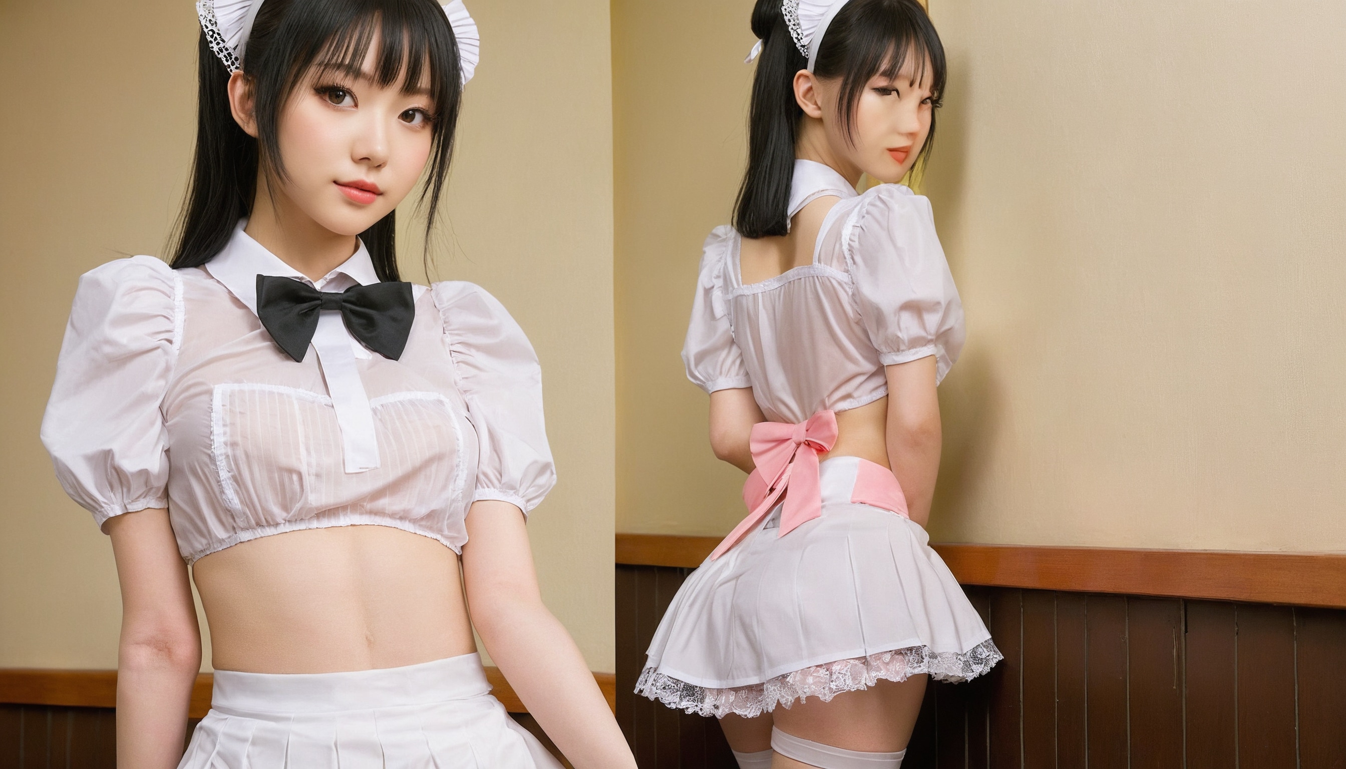 {"3": {"inputs": {"seed": 700806476275628, "steps": 64, "cfg": 6.31, "sampler_name": "dpmpp_2m", "scheduler": "karras", "denoise": 1.0, "model": ["27", 0], "positive": ["6", 0], "negative": ["7", 0], "latent_image": ["5", 0]}, "class_type": "KSampler"}, "4": {"inputs": {"ckpt_name": "juggernautxl.safetensors"}, "class_type": "CheckpointLoaderSimple"}, "5": {"inputs": {"width": 1344, "height": 768, "batch_size": 1}, "class_type": "EmptyLatentImage"}, "6": {"inputs": {"text": "18 year old girl, (ukrainian:1.08), (japanese:1.06), (pale skin:0.97), (blush:1.07), (seductive pose:1.01), (idol:1.14), (slim:1.11), (beautiful eyes:1.02), (eyelashes:1.00), (seductive facial expression:1.01), (sexy lips:1.05), (cute:1.07), (double eyelids:1.07), (perky ass:1.09), (exposed ass:0.98), (looking back:1.04), (sexy ass:0.99), (thigh gap:0.98), in a (skimpy maid costume:1.00) working at a maid cafe, choker, bowtie, headband, pleated skirt, (film:1.06), (candid cinema:1.03), (textured skin:1.09), (soft lighting:1.04), (RAW:1.09), (skin fuzz:1.04), (natural looking skin:1.08), (detailed skin:1.07), (portra:1.06)", "clip": ["27", 1]}, "class_type": "CLIPTextEncode"}, "7": {"inputs": {"text": "(watermark:1.14), (worst quality:1.14), (open mouth:1.06), (bad hands:1.12), (distorted:1.09), (twisted:1.06), (low resolution:1.06)", "clip": ["27", 1]}, "class_type": "CLIPTextEncode"}, "8": {"inputs": {"samples": ["3", 0], "vae": ["4", 2]}, "class_type": "VAEDecode"}, "25": {"inputs": {"lora_name": "nudify_xl.safetensors", "strength_model": 0.17, "strength_clip": 0.3, "model": ["4", 0], "clip": ["4", 1]}, "class_type": "LoraLoader"}, "26": {"inputs": {"lora_name": "shirtlift_SDXL_v2.safetensors", "strength_model": 0.07, "strength_clip": 0.13, "model": ["25", 0], "clip": ["25", 1]}, "class_type": "LoraLoader"}, "27": {"inputs": {"lora_name": "PerfectEyesXL.safetensors", "strength_model": 0.02, "strength_clip": 0.07, "model": ["26", 0], "clip": ["26", 1]}, "class_type": "LoraLoader"}, "30": {"inputs": {"model_name": "4x_NMKD-Superscale-SP_178000_G.pth"}, "class_type": "UpscaleModelLoader"}, "31": {"inputs": {"upscale_model": ["30", 0], "image": ["8", 0]}, "class_type": "ImageUpscaleWithModel"}, "32": {"inputs": {"upscale_method": "lanczos", "scale_by": 0.5, "image": ["31", 0]}, "class_type": "ImageScaleBy"}, "33": {"inputs": {"pixels": ["32", 0], "vae": ["4", 2]}, "class_type": "VAEEncode"}, "34": {"inputs": {"seed": 700806476275628, "steps": 64, "cfg": 6.31, "sampler_name": "dpmpp_2m", "scheduler": "karras", "denoise": 0.3, "model": ["27", 0], "positive": ["6", 0], "negative": ["7", 0], "latent_image": ["33", 0]}, "class_type": "KSampler"}, "36": {"inputs": {"samples": ["34", 0], "vae": ["4", 2]}, "class_type": "VAEDecode"}, "39": {"inputs": {"filename_prefix": "comfyapi-1718608697090", "images": ["36", 0]}, "class_type": "SaveImage"}}