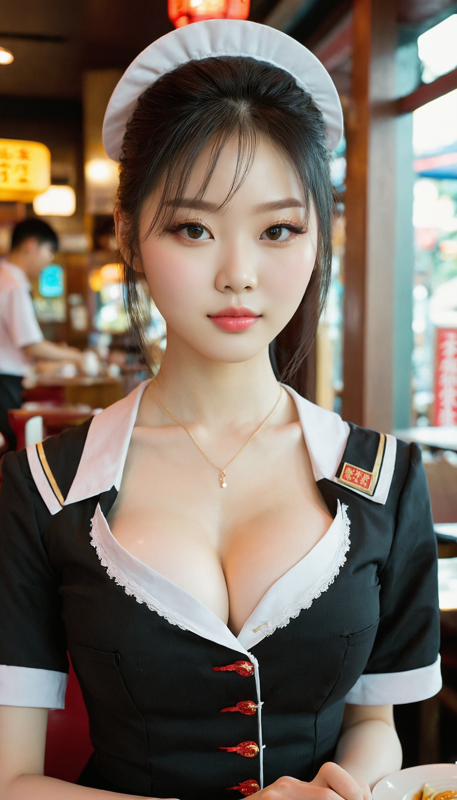{"3": {"inputs": {"seed": 295360750310562, "steps": 64, "cfg": 6.19, "sampler_name": "dpmpp_2m", "scheduler": "karras", "denoise": 1.0, "model": ["27", 0], "positive": ["6", 0], "negative": ["7", 0], "latent_image": ["5", 0]}, "class_type": "KSampler"}, "4": {"inputs": {"ckpt_name": "juggernautxl.safetensors"}, "class_type": "CheckpointLoaderSimple"}, "5": {"inputs": {"width": 768, "height": 1344, "batch_size": 1}, "class_type": "EmptyLatentImage"}, "6": {"inputs": {"text": "20 year old girl, (chinese:1.05), (pale skin:1.11), (seductive pose:1.08), (beautiful eyes:1.03), (temptress:1.10), (slim:1.07), (cute:1.00), (seductive facial expression:1.06), (eyelashes:1.07), (blush:1.05), (sexy lips:0.97), (double eyelids:1.02), (idol:1.08), (detailed face:1.02), (in a seductive pose:1.09), (large perky breasts:1.12), (cleavage:0.96), (thigh gap:0.96), (a waitress in uniform:1.08) working at a restaurant, (film:1.00), (skin fuzz:1.07), (candid cinema:1.08), (soft lighting:1.05), (textured skin:1.02), (RAW:1.00), (portra:1.05), (natural looking skin:1.00), (detailed skin:1.03)", "clip": ["27", 1]}, "class_type": "CLIPTextEncode"}, "7": {"inputs": {"text": "(twisted:1.10), (distorted:1.06), (watermark:1.11), (open mouth:1.12), (low resolution:1.12), (bad hands:1.14), (worst quality:1.10)", "clip": ["27", 1]}, "class_type": "CLIPTextEncode"}, "8": {"inputs": {"samples": ["3", 0], "vae": ["4", 2]}, "class_type": "VAEDecode"}, "25": {"inputs": {"lora_name": "nudify_xl.safetensors", "strength_model": 0.06, "strength_clip": 0.15, "model": ["4", 0], "clip": ["4", 1]}, "class_type": "LoraLoader"}, "26": {"inputs": {"lora_name": "shirtlift_SDXL_v2.safetensors", "strength_model": 0.08, "strength_clip": 0.16, "model": ["25", 0], "clip": ["25", 1]}, "class_type": "LoraLoader"}, "27": {"inputs": {"lora_name": "PerfectEyesXL.safetensors", "strength_model": 0.07, "strength_clip": 0.12, "model": ["26", 0], "clip": ["26", 1]}, "class_type": "LoraLoader"}, "30": {"inputs": {"model_name": "4x_NMKD-Superscale-SP_178000_G.pth"}, "class_type": "UpscaleModelLoader"}, "31": {"inputs": {"upscale_model": ["30", 0], "image": ["8", 0]}, "class_type": "ImageUpscaleWithModel"}, "32": {"inputs": {"upscale_method": "lanczos", "scale_by": 0.5, "image": ["31", 0]}, "class_type": "ImageScaleBy"}, "33": {"inputs": {"pixels": ["32", 0], "vae": ["4", 2]}, "class_type": "VAEEncode"}, "34": {"inputs": {"seed": 295360750310562, "steps": 64, "cfg": 6.19, "sampler_name": "dpmpp_2m", "scheduler": "karras", "denoise": 0.3, "model": ["27", 0], "positive": ["6", 0], "negative": ["7", 0], "latent_image": ["33", 0]}, "class_type": "KSampler"}, "36": {"inputs": {"samples": ["34", 0], "vae": ["4", 2]}, "class_type": "VAEDecode"}, "39": {"inputs": {"filename_prefix": "comfyapi-1714587091821", "images": ["36", 0]}, "class_type": "SaveImage"}}