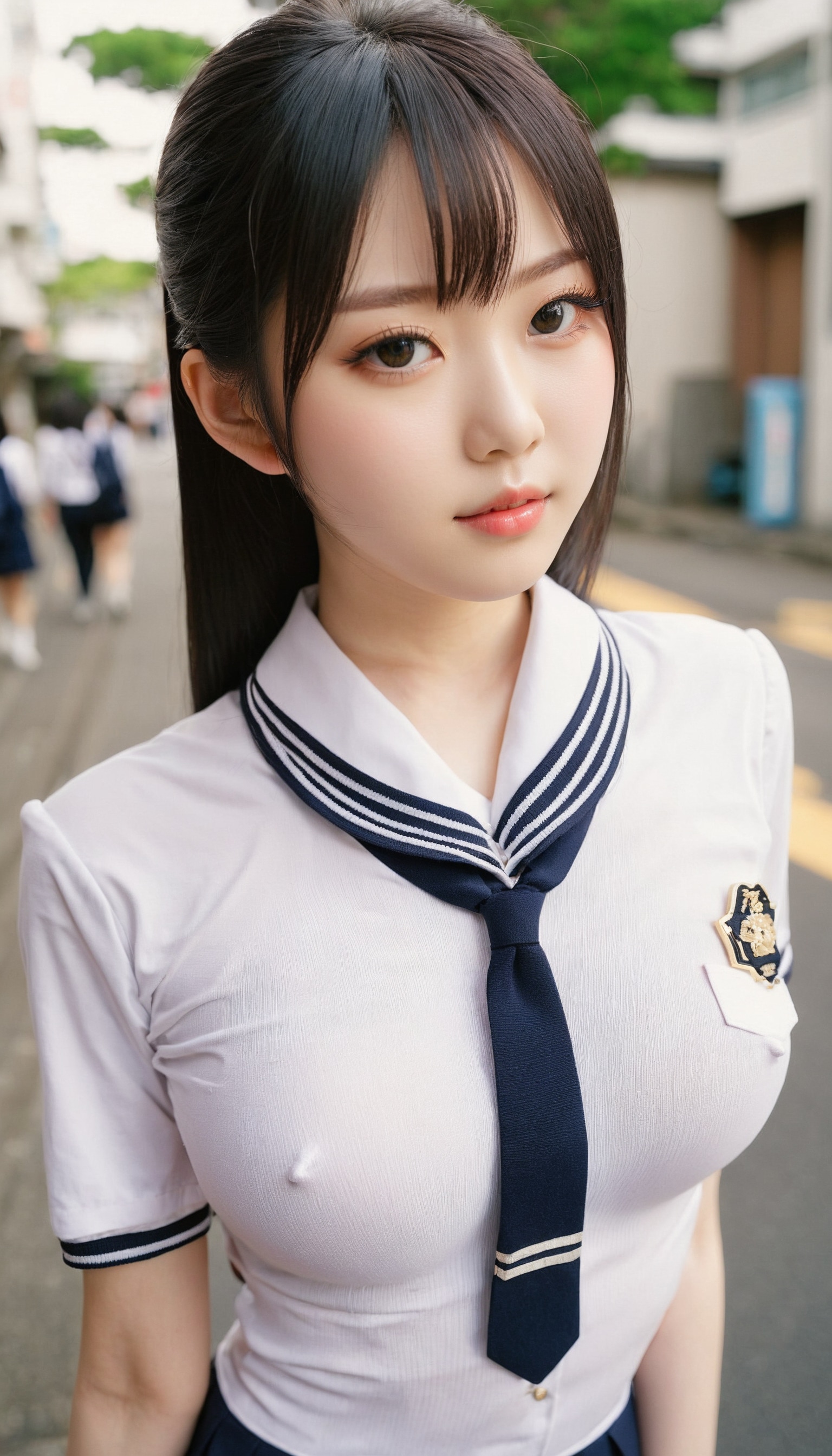 {"3": {"inputs": {"seed": 979626212894591, "steps": 64, "cfg": 7.25, "sampler_name": "dpmpp_2m", "scheduler": "karras", "denoise": 1.0, "model": ["27", 0], "positive": ["6", 0], "negative": ["7", 0], "latent_image": ["5", 0]}, "class_type": "KSampler"}, "4": {"inputs": {"ckpt_name": "juggernautxl.safetensors"}, "class_type": "CheckpointLoaderSimple"}, "5": {"inputs": {"width": 768, "height": 1344, "batch_size": 1}, "class_type": "EmptyLatentImage"}, "6": {"inputs": {"text": "21 year old girl, (japanese:1.00), (pale skin:1.08), (beautiful eyes:1.06), (idol:1.07), (blush:1.12), (seductive pose:1.14), (detailed face:0.99), (seductive facial expression:1.07), (slim:1.05), (cute:1.02), (sexy lips:1.10), (eyelashes:1.12), (in a seductive pose:1.03), (large perky breasts:1.12), (cleavage:1.08), (thigh gap:0.95), (school uniform:1.14), choker, busy street, (RAW:1.01), (detailed skin:1.07), (natural looking skin:1.06), (portra:1.09), (candid cinema:1.01), (textured skin:1.05), (skin fuzz:1.07), (soft lighting:1.04), (film:1.01)", "clip": ["27", 1]}, "class_type": "CLIPTextEncode"}, "7": {"inputs": {"text": "(distorted:1.09), (twisted:1.13), (watermark:1.09), (low resolution:1.09), (worst quality:1.05), (bad hands:1.07), (open mouth:1.05)", "clip": ["27", 1]}, "class_type": "CLIPTextEncode"}, "8": {"inputs": {"samples": ["3", 0], "vae": ["4", 2]}, "class_type": "VAEDecode"}, "25": {"inputs": {"lora_name": "nudify_xl.safetensors", "strength_model": 0.13, "strength_clip": 0.26, "model": ["4", 0], "clip": ["4", 1]}, "class_type": "LoraLoader"}, "26": {"inputs": {"lora_name": "shirtlift_SDXL_v2.safetensors", "strength_model": 0.13, "strength_clip": 0.16, "model": ["25", 0], "clip": ["25", 1]}, "class_type": "LoraLoader"}, "27": {"inputs": {"lora_name": "PerfectEyesXL.safetensors", "strength_model": 0.0, "strength_clip": 0.02, "model": ["26", 0], "clip": ["26", 1]}, "class_type": "LoraLoader"}, "30": {"inputs": {"model_name": "4x_NMKD-Superscale-SP_178000_G.pth"}, "class_type": "UpscaleModelLoader"}, "31": {"inputs": {"upscale_model": ["30", 0], "image": ["8", 0]}, "class_type": "ImageUpscaleWithModel"}, "32": {"inputs": {"upscale_method": "lanczos", "scale_by": 0.5, "image": ["31", 0]}, "class_type": "ImageScaleBy"}, "33": {"inputs": {"pixels": ["32", 0], "vae": ["4", 2]}, "class_type": "VAEEncode"}, "34": {"inputs": {"seed": 979626212894591, "steps": 64, "cfg": 7.25, "sampler_name": "dpmpp_2m", "scheduler": "karras", "denoise": 0.3, "model": ["27", 0], "positive": ["6", 0], "negative": ["7", 0], "latent_image": ["33", 0]}, "class_type": "KSampler"}, "36": {"inputs": {"samples": ["34", 0], "vae": ["4", 2]}, "class_type": "VAEDecode"}, "39": {"inputs": {"filename_prefix": "comfyapi-1733829881551", "images": ["36", 0]}, "class_type": "SaveImage"}}