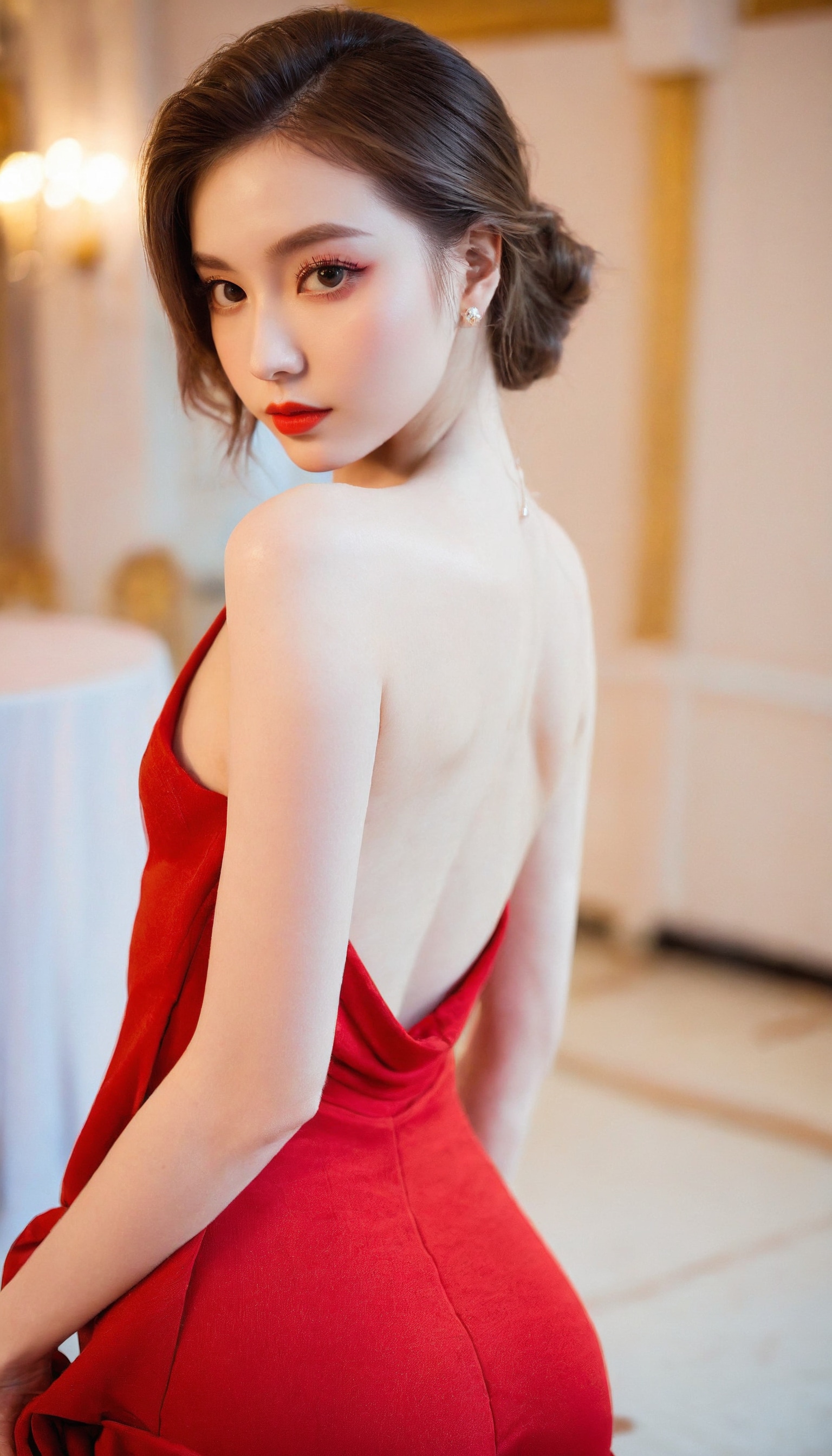 {"3": {"inputs": {"seed": 497953090419315, "steps": 64, "cfg": 6.53, "sampler_name": "dpmpp_2m", "scheduler": "karras", "denoise": 1.0, "model": ["27", 0], "positive": ["6", 0], "negative": ["7", 0], "latent_image": ["5", 0]}, "class_type": "KSampler"}, "4": {"inputs": {"ckpt_name": "helloworldxl.safetensors"}, "class_type": "CheckpointLoaderSimple"}, "5": {"inputs": {"width": 768, "height": 1344, "batch_size": 1}, "class_type": "EmptyLatentImage"}, "6": {"inputs": {"text": "22 year old girl, (ukrainian:0.97), (slim:1.10), (sexy lips:1.09), (blush:0.95), (temptress:1.00), (eyelashes:1.11), (pale skin:1.07), (cute:0.97), (double eyelids:1.01), (seductive facial expression:1.09), (beautiful eyes:1.01), (idol:1.14), (seductive pose:1.14), (detailed face:1.14), (perky ass:0.96), (exposed ass:0.99), (looking back:1.13), (sexy ass:1.00), (thigh gap:0.96), (wearing a low-cut red dress:1.07) at a ballroom, (soft lighting:1.00), (skin fuzz:1.09), (detailed skin:1.03), (RAW:1.06), (textured skin:1.00), (natural looking skin:1.05), (portra:1.08), (film:1.02)", "clip": ["27", 1]}, "class_type": "CLIPTextEncode"}, "7": {"inputs": {"text": "(bad hands:1.10), (worst quality:1.05), (open mouth:1.14), (watermark:1.11), (distorted:1.10), (twisted:1.07), (low resolution:1.14)", "clip": ["27", 1]}, "class_type": "CLIPTextEncode"}, "8": {"inputs": {"samples": ["3", 0], "vae": ["4", 2]}, "class_type": "VAEDecode"}, "25": {"inputs": {"lora_name": "nudify_xl.safetensors", "strength_model": 0.31, "strength_clip": 0.3, "model": ["4", 0], "clip": ["4", 1]}, "class_type": "LoraLoader"}, "26": {"inputs": {"lora_name": "shirtlift_SDXL_v2.safetensors", "strength_model": 0.14, "strength_clip": 0.05, "model": ["25", 0], "clip": ["25", 1]}, "class_type": "LoraLoader"}, "27": {"inputs": {"lora_name": "PerfectEyesXL.safetensors", "strength_model": 0.12, "strength_clip": 0.05, "model": ["26", 0], "clip": ["26", 1]}, "class_type": "LoraLoader"}, "30": {"inputs": {"model_name": "4x_NMKD-Superscale-SP_178000_G.pth"}, "class_type": "UpscaleModelLoader"}, "31": {"inputs": {"upscale_model": ["30", 0], "image": ["8", 0]}, "class_type": "ImageUpscaleWithModel"}, "32": {"inputs": {"upscale_method": "lanczos", "scale_by": 0.5, "image": ["31", 0]}, "class_type": "ImageScaleBy"}, "33": {"inputs": {"pixels": ["32", 0], "vae": ["4", 2]}, "class_type": "VAEEncode"}, "34": {"inputs": {"seed": 497953090419315, "steps": 64, "cfg": 6.53, "sampler_name": "dpmpp_2m", "scheduler": "karras", "denoise": 0.3, "model": ["27", 0], "positive": ["6", 0], "negative": ["7", 0], "latent_image": ["33", 0]}, "class_type": "KSampler"}, "36": {"inputs": {"samples": ["34", 0], "vae": ["4", 2]}, "class_type": "VAEDecode"}, "39": {"inputs": {"filename_prefix": "comfyapi-1714797902159", "images": ["36", 0]}, "class_type": "SaveImage"}}