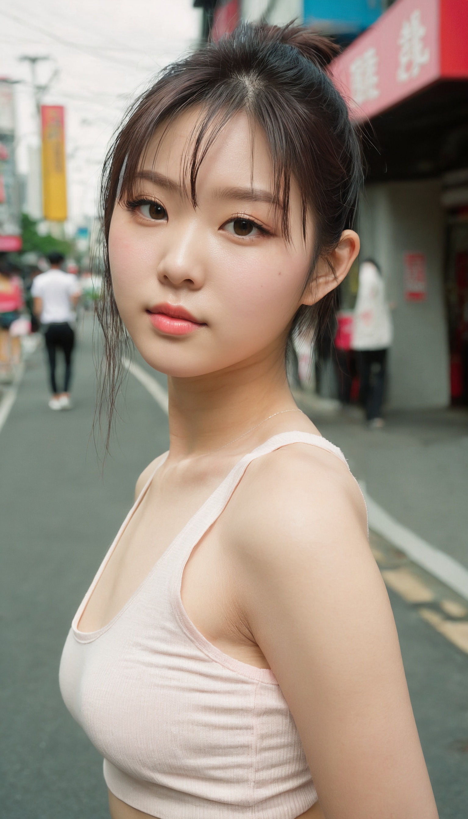 {"3": {"inputs": {"seed": 645665419177430, "steps": 32, "cfg": 6.01, "sampler_name": "dpmpp_2m", "scheduler": "karras", "denoise": 1.0, "model": ["27", 0], "positive": ["6", 0], "negative": ["7", 0], "latent_image": ["5", 0]}, "class_type": "KSampler"}, "4": {"inputs": {"ckpt_name": "juggernautxl.safetensors"}, "class_type": "CheckpointLoaderSimple"}, "5": {"inputs": {"width": 768, "height": 1344, "batch_size": 1}, "class_type": "EmptyLatentImage"}, "6": {"inputs": {"text": "19 year old girl, (irish:1.09), (japanese:1.08), (chinese:1.08), (cute:0.99), (slim:1.02), (idol:1.08), (temptress:1.11), (sexy lips:1.00), (eyelashes:0.95), (detailed face:1.03), (blush:1.11), (beautiful eyes:1.10), (pale skin:1.14), (double eyelids:1.05), (seductive pose:1.06), (seductive facial expression:0.98), (perky ass:1.08), (exposed ass:0.98), (looking back:1.06), (sexy ass:1.05), (thigh gap:1.12), (white tanktop:1.10), busy street, (film:1.04), (candid cinema:1.04), (portra:1.04), (skin fuzz:1.01), (textured skin:1.06), (detailed skin:1.04), (natural looking skin:1.01), (soft lighting:1.00), (RAW:1.09)", "clip": ["27", 1]}, "class_type": "CLIPTextEncode"}, "7": {"inputs": {"text": "(bad hands:1.10), (low resolution:1.11), (watermark:1.09), (open mouth:1.06), (twisted:1.11), (distorted:1.09)", "clip": ["27", 1]}, "class_type": "CLIPTextEncode"}, "8": {"inputs": {"samples": ["3", 0], "vae": ["4", 2]}, "class_type": "VAEDecode"}, "25": {"inputs": {"lora_name": "nudify_xl.safetensors", "strength_model": 0.19, "strength_clip": 0.08, "model": ["4", 0], "clip": ["4", 1]}, "class_type": "LoraLoader"}, "26": {"inputs": {"lora_name": "shirtlift_SDXL_v2.safetensors", "strength_model": 0.19, "strength_clip": 0.0, "model": ["25", 0], "clip": ["25", 1]}, "class_type": "LoraLoader"}, "27": {"inputs": {"lora_name": "PerfectEyesXL.safetensors", "strength_model": 0.04, "strength_clip": 0.16, "model": ["26", 0], "clip": ["26", 1]}, "class_type": "LoraLoader"}, "30": {"inputs": {"model_name": "4x_NMKD-Superscale-SP_178000_G.pth"}, "class_type": "UpscaleModelLoader"}, "31": {"inputs": {"upscale_model": ["30", 0], "image": ["8", 0]}, "class_type": "ImageUpscaleWithModel"}, "32": {"inputs": {"upscale_method": "lanczos", "scale_by": 0.5, "image": ["31", 0]}, "class_type": "ImageScaleBy"}, "33": {"inputs": {"pixels": ["32", 0], "vae": ["4", 2]}, "class_type": "VAEEncode"}, "34": {"inputs": {"seed": 645665419177430, "steps": 32, "cfg": 6.01, "sampler_name": "dpmpp_2m", "scheduler": "karras", "denoise": 0.3, "model": ["27", 0], "positive": ["6", 0], "negative": ["7", 0], "latent_image": ["33", 0]}, "class_type": "KSampler"}, "36": {"inputs": {"samples": ["34", 0], "vae": ["4", 2]}, "class_type": "VAEDecode"}, "39": {"inputs": {"filename_prefix": "comfyapi-1728029314039", "images": ["36", 0]}, "class_type": "SaveImage"}}