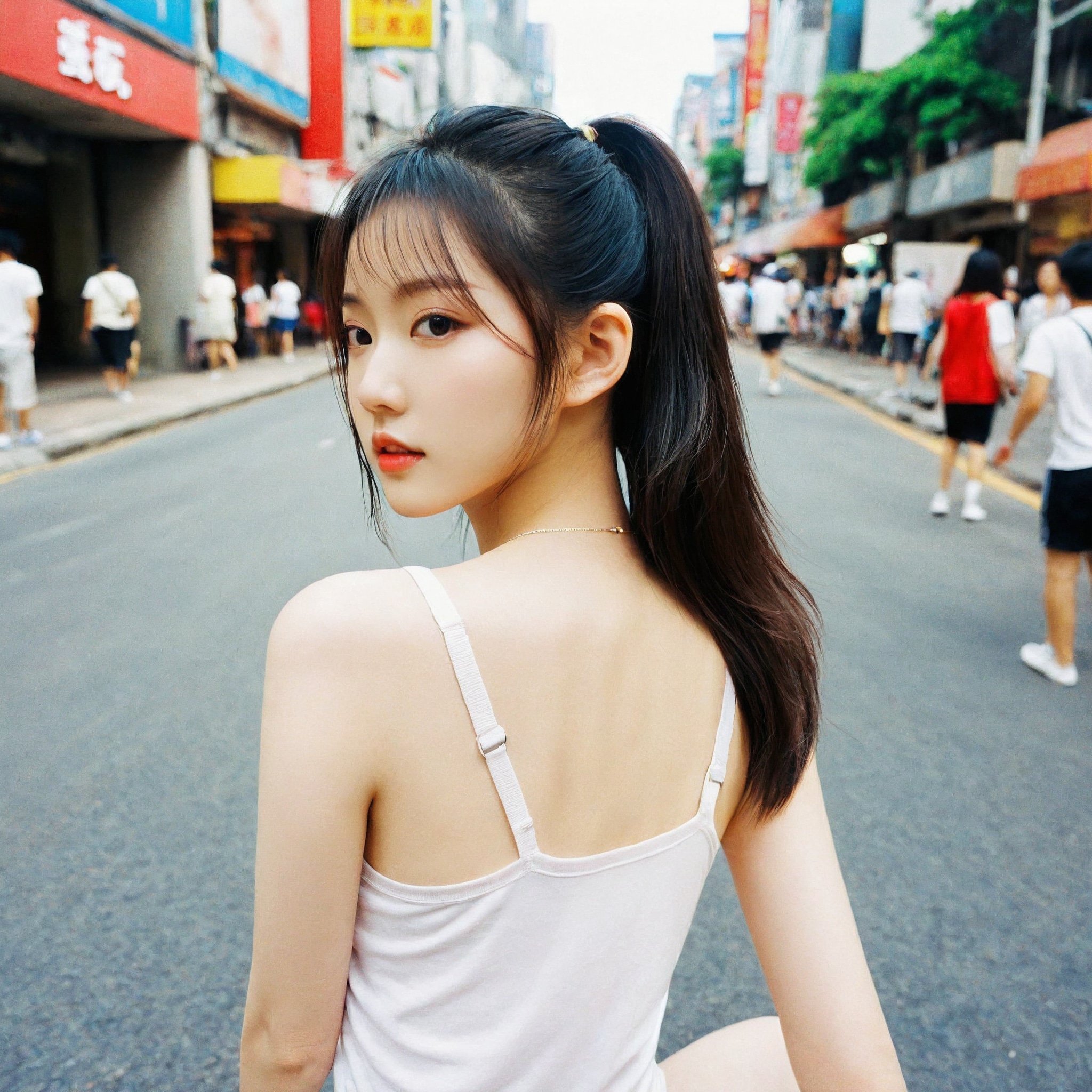{"3": {"inputs": {"seed": 816097350045301, "steps": 64, "cfg": 5.75, "sampler_name": "dpmpp_2m", "scheduler": "karras", "denoise": 1.0, "model": ["27", 0], "positive": ["6", 0], "negative": ["7", 0], "latent_image": ["5", 0]}, "class_type": "KSampler"}, "4": {"inputs": {"ckpt_name": "leosamsHelloworldSDXL_helloworldSDXL32DPO.safetensors"}, "class_type": "CheckpointLoaderSimple"}, "5": {"inputs": {"width": 1024, "height": 1024, "batch_size": 1}, "class_type": "EmptyLatentImage"}, "6": {"inputs": {"text": "18 year old girl, (korean:0.95), (taiwanese:1.09), (japanese:0.99), (detailed face:1.13), (cute:1.02), (sexy lips:0.96), (slim:1.07), (seductive pose:1.12), (seductive facial expression:0.95), (pale skin:1.10), (temptress:1.07), (blush:1.03), (beautiful eyes:1.02), (double eyelids:1.03), (eyelashes:0.97), (idol:1.01), (perky ass:1.12), (exposed ass:1.07), (looking back:1.07), (sexy ass:1.14), (thigh gap:0.96), (white tanktop:1.08), busy street, (portra:1.01), (soft lighting:1.02), (skin fuzz:1.00), (film:1.02), (candid cinema:1.09), (RAW:1.05), (natural looking skin:1.06), (textured skin:1.00), (detailed skin:1.08)", "clip": ["27", 1]}, "class_type": "CLIPTextEncode"}, "7": {"inputs": {"text": "(low resolution:1.12), (open mouth:1.09), (worst quality:1.13), (distorted:1.10), (bad hands:1.09), (twisted:1.12), (watermark:1.10)", "clip": ["27", 1]}, "class_type": "CLIPTextEncode"}, "8": {"inputs": {"samples": ["3", 0], "vae": ["4", 2]}, "class_type": "VAEDecode"}, "25": {"inputs": {"lora_name": "nudify_xl.safetensors", "strength_model": 0.24, "strength_clip": 0.13, "model": ["4", 0], "clip": ["4", 1]}, "class_type": "LoraLoader"}, "26": {"inputs": {"lora_name": "shirtlift_SDXL_v2.safetensors", "strength_model": 0.07, "strength_clip": 0.17, "model": ["25", 0], "clip": ["25", 1]}, "class_type": "LoraLoader"}, "27": {"inputs": {"lora_name": "PerfectEyesXL.safetensors", "strength_model": 0.03, "strength_clip": 0.11, "model": ["26", 0], "clip": ["26", 1]}, "class_type": "LoraLoader"}, "30": {"inputs": {"model_name": "4x_NMKD-Superscale-SP_178000_G.pth"}, "class_type": "UpscaleModelLoader"}, "31": {"inputs": {"upscale_model": ["30", 0], "image": ["8", 0]}, "class_type": "ImageUpscaleWithModel"}, "32": {"inputs": {"upscale_method": "lanczos", "scale_by": 0.5, "image": ["31", 0]}, "class_type": "ImageScaleBy"}, "33": {"inputs": {"pixels": ["32", 0], "vae": ["4", 2]}, "class_type": "VAEEncode"}, "34": {"inputs": {"seed": 816097350045301, "steps": 64, "cfg": 5.75, "sampler_name": "dpmpp_2m", "scheduler": "karras", "denoise": 0.3, "model": ["27", 0], "positive": ["6", 0], "negative": ["7", 0], "latent_image": ["33", 0]}, "class_type": "KSampler"}, "36": {"inputs": {"samples": ["34", 0], "vae": ["4", 2]}, "class_type": "VAEDecode"}, "39": {"inputs": {"filename_prefix": "comfyapi-1707915477779", "images": ["36", 0]}, "class_type": "SaveImage"}}