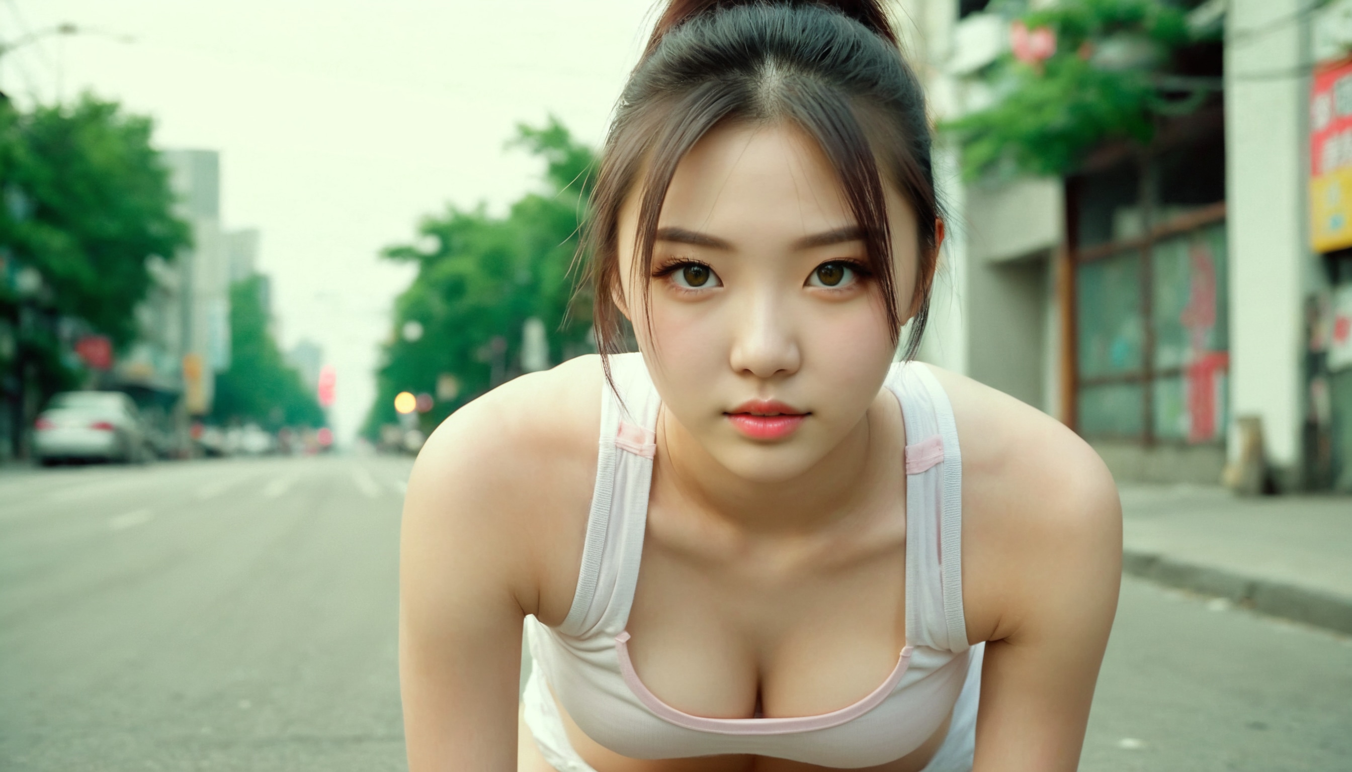 {"3": {"inputs": {"seed": 515681813559434, "steps": 64, "cfg": 7.78, "sampler_name": "dpmpp_2m", "scheduler": "karras", "denoise": 1.0, "model": ["27", 0], "positive": ["6", 0], "negative": ["7", 0], "latent_image": ["5", 0]}, "class_type": "KSampler"}, "4": {"inputs": {"ckpt_name": "juggernautxl.safetensors"}, "class_type": "CheckpointLoaderSimple"}, "5": {"inputs": {"width": 1344, "height": 768, "batch_size": 1}, "class_type": "EmptyLatentImage"}, "6": {"inputs": {"text": "20 year old girl, (ukrainian:0.95), (chinese:1.03), (cute:1.11), (beautiful eyes:1.12), (seductive pose:0.96), (detailed face:1.12), (blush:1.10), (temptress:1.07), (double eyelids:1.06), (slim:1.14), (seductive facial expression:0.99), (pale skin:0.95), (eyelashes:1.00), (idol:0.96), (on all fours:1.13), (spreading ass cheeks:0.98), (from behind:1.05), (backboob:1.00), (white tanktop:1.03), busy street, (RAW:1.01), (film:1.01), (portra:1.06), (skin fuzz:1.02), (detailed skin:1.04), (textured skin:1.00), (natural looking skin:1.02), (candid cinema:1.02), (soft lighting:1.09)", "clip": ["27", 1]}, "class_type": "CLIPTextEncode"}, "7": {"inputs": {"text": "(distorted:1.11), (bad hands:1.05), (watermark:1.08), (open mouth:1.14), (low resolution:1.10), (twisted:1.09)", "clip": ["27", 1]}, "class_type": "CLIPTextEncode"}, "8": {"inputs": {"samples": ["3", 0], "vae": ["4", 2]}, "class_type": "VAEDecode"}, "25": {"inputs": {"lora_name": "nudify_xl.safetensors", "strength_model": 0.24, "strength_clip": 0.34, "model": ["4", 0], "clip": ["4", 1]}, "class_type": "LoraLoader"}, "26": {"inputs": {"lora_name": "shirtlift_SDXL_v2.safetensors", "strength_model": 0.19, "strength_clip": 0.18, "model": ["25", 0], "clip": ["25", 1]}, "class_type": "LoraLoader"}, "27": {"inputs": {"lora_name": "PerfectEyesXL.safetensors", "strength_model": 0.09, "strength_clip": 0.08, "model": ["26", 0], "clip": ["26", 1]}, "class_type": "LoraLoader"}, "30": {"inputs": {"model_name": "4x_NMKD-Superscale-SP_178000_G.pth"}, "class_type": "UpscaleModelLoader"}, "31": {"inputs": {"upscale_model": ["30", 0], "image": ["8", 0]}, "class_type": "ImageUpscaleWithModel"}, "32": {"inputs": {"upscale_method": "lanczos", "scale_by": 0.5, "image": ["31", 0]}, "class_type": "ImageScaleBy"}, "33": {"inputs": {"pixels": ["32", 0], "vae": ["4", 2]}, "class_type": "VAEEncode"}, "34": {"inputs": {"seed": 515681813559434, "steps": 64, "cfg": 7.78, "sampler_name": "dpmpp_2m", "scheduler": "karras", "denoise": 0.3, "model": ["27", 0], "positive": ["6", 0], "negative": ["7", 0], "latent_image": ["33", 0]}, "class_type": "KSampler"}, "36": {"inputs": {"samples": ["34", 0], "vae": ["4", 2]}, "class_type": "VAEDecode"}, "39": {"inputs": {"filename_prefix": "comfyapi-1718468020432", "images": ["36", 0]}, "class_type": "SaveImage"}}