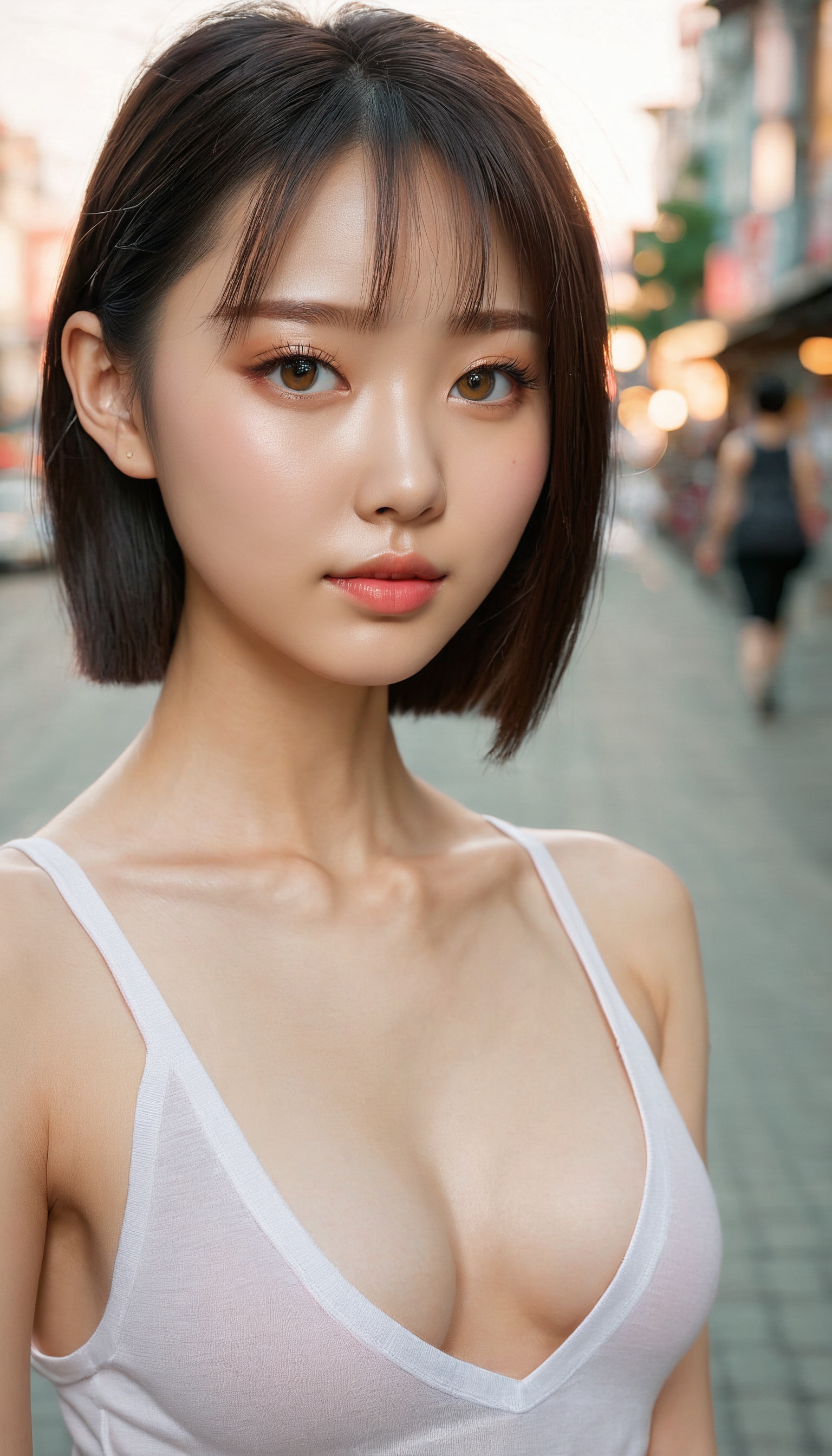 {"3": {"inputs": {"seed": 316322484739414, "steps": 64, "cfg": 7.9, "sampler_name": "dpmpp_2m", "scheduler": "karras", "denoise": 1.0, "model": ["27", 0], "positive": ["6", 0], "negative": ["7", 0], "latent_image": ["5", 0]}, "class_type": "KSampler"}, "4": {"inputs": {"ckpt_name": "juggernautxl.safetensors"}, "class_type": "CheckpointLoaderSimple"}, "5": {"inputs": {"width": 768, "height": 1344, "batch_size": 1}, "class_type": "EmptyLatentImage"}, "6": {"inputs": {"text": "22 year old girl, (ukrainian:1.12), (chinese:0.95), (slim:1.08), (seductive pose:0.99), (beautiful eyes:1.14), (double eyelids:1.14), (detailed face:1.04), (sexy lips:1.14), (idol:1.13), (cute:0.99), (pale skin:1.00), (seductive facial expression:0.96), (blush:1.11), (temptress:1.09), (eyelashes:1.13), (perky ass:1.03), (exposed ass:1.14), (looking back:0.99), (sexy ass:1.02), (thigh gap:1.03), (white tanktop:1.06), busy street, (film:1.06), (RAW:1.06), (natural looking skin:1.01), (portra:1.02), (textured skin:1.04), (candid cinema:1.04), (soft lighting:1.09), (detailed skin:1.07), (skin fuzz:1.07)", "clip": ["27", 1]}, "class_type": "CLIPTextEncode"}, "7": {"inputs": {"text": "(distorted:1.07), (low resolution:1.05), (watermark:1.13), (bad hands:1.14), (open mouth:1.13), (worst quality:1.11), (twisted:1.06)", "clip": ["27", 1]}, "class_type": "CLIPTextEncode"}, "8": {"inputs": {"samples": ["3", 0], "vae": ["4", 2]}, "class_type": "VAEDecode"}, "25": {"inputs": {"lora_name": "nudify_xl.safetensors", "strength_model": 0.25, "strength_clip": 0.15, "model": ["4", 0], "clip": ["4", 1]}, "class_type": "LoraLoader"}, "26": {"inputs": {"lora_name": "shirtlift_SDXL_v2.safetensors", "strength_model": 0.13, "strength_clip": 0.01, "model": ["25", 0], "clip": ["25", 1]}, "class_type": "LoraLoader"}, "27": {"inputs": {"lora_name": "PerfectEyesXL.safetensors", "strength_model": 0.0, "strength_clip": 0.06, "model": ["26", 0], "clip": ["26", 1]}, "class_type": "LoraLoader"}, "30": {"inputs": {"model_name": "4x_NMKD-Superscale-SP_178000_G.pth"}, "class_type": "UpscaleModelLoader"}, "31": {"inputs": {"upscale_model": ["30", 0], "image": ["8", 0]}, "class_type": "ImageUpscaleWithModel"}, "32": {"inputs": {"upscale_method": "lanczos", "scale_by": 0.5, "image": ["31", 0]}, "class_type": "ImageScaleBy"}, "33": {"inputs": {"pixels": ["32", 0], "vae": ["4", 2]}, "class_type": "VAEEncode"}, "34": {"inputs": {"seed": 316322484739414, "steps": 64, "cfg": 7.9, "sampler_name": "dpmpp_2m", "scheduler": "karras", "denoise": 0.3, "model": ["27", 0], "positive": ["6", 0], "negative": ["7", 0], "latent_image": ["33", 0]}, "class_type": "KSampler"}, "36": {"inputs": {"samples": ["34", 0], "vae": ["4", 2]}, "class_type": "VAEDecode"}, "39": {"inputs": {"filename_prefix": "comfyapi-1716451792584", "images": ["36", 0]}, "class_type": "SaveImage"}}