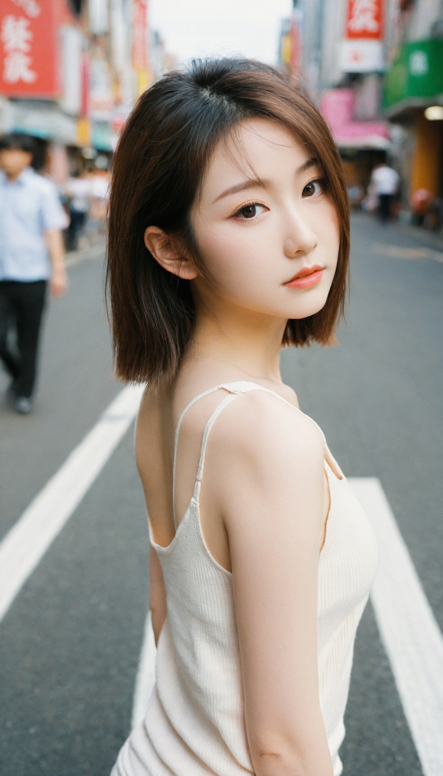 {"3": {"inputs": {"seed": 779670828385814, "steps": 64, "cfg": 5.25, "sampler_name": "dpmpp_2m", "scheduler": "karras", "denoise": 1.0, "model": ["27", 0], "positive": ["6", 0], "negative": ["7", 0], "latent_image": ["5", 0]}, "class_type": "KSampler"}, "4": {"inputs": {"ckpt_name": "leosamsHelloworldSDXL_helloworldSDXL32DPO.safetensors"}, "class_type": "CheckpointLoaderSimple"}, "5": {"inputs": {"width": 768, "height": 1344, "batch_size": 1}, "class_type": "EmptyLatentImage"}, "6": {"inputs": {"text": "23 year old girl, (japanese:1.02), (irish:1.09), (temptress:1.07), (seductive facial expression:1.02), (slim:0.96), (beautiful eyes:1.05), (blush:1.01), (double eyelids:1.05), (eyelashes:0.99), (idol:1.00), (detailed face:1.09), (seductive pose:1.07), (cute:1.10), (pale skin:1.10), (sexy lips:1.13), (perky ass:1.07), (exposed ass:0.98), (looking back:1.08), (sexy ass:1.14), (thigh gap:1.09), (white tanktop:1.02), busy street, (film:1.06), (natural looking skin:1.09), (textured skin:1.01), (RAW:1.05), (skin fuzz:1.01), (detailed skin:1.02), (candid cinema:1.07), (portra:1.09), (soft lighting:1.08)", "clip": ["27", 1]}, "class_type": "CLIPTextEncode"}, "7": {"inputs": {"text": "(open mouth:1.14), (low resolution:1.14), (bad hands:1.11), (distorted:1.06), (worst quality:1.11), (twisted:1.13), (watermark:1.09)", "clip": ["27", 1]}, "class_type": "CLIPTextEncode"}, "8": {"inputs": {"samples": ["3", 0], "vae": ["4", 2]}, "class_type": "VAEDecode"}, "25": {"inputs": {"lora_name": "nudify_xl.safetensors", "strength_model": 0.36, "strength_clip": 0.02, "model": ["4", 0], "clip": ["4", 1]}, "class_type": "LoraLoader"}, "26": {"inputs": {"lora_name": "shirtlift_SDXL_v2.safetensors", "strength_model": 0.06, "strength_clip": 0.03, "model": ["25", 0], "clip": ["25", 1]}, "class_type": "LoraLoader"}, "27": {"inputs": {"lora_name": "PerfectEyesXL.safetensors", "strength_model": 0.19, "strength_clip": 0.03, "model": ["26", 0], "clip": ["26", 1]}, "class_type": "LoraLoader"}, "30": {"inputs": {"model_name": "4x_NMKD-Superscale-SP_178000_G.pth"}, "class_type": "UpscaleModelLoader"}, "31": {"inputs": {"upscale_model": ["30", 0], "image": ["8", 0]}, "class_type": "ImageUpscaleWithModel"}, "32": {"inputs": {"upscale_method": "lanczos", "scale_by": 0.5, "image": ["31", 0]}, "class_type": "ImageScaleBy"}, "33": {"inputs": {"pixels": ["32", 0], "vae": ["4", 2]}, "class_type": "VAEEncode"}, "34": {"inputs": {"seed": 779670828385814, "steps": 64, "cfg": 5.25, "sampler_name": "dpmpp_2m", "scheduler": "karras", "denoise": 0.3, "model": ["27", 0], "positive": ["6", 0], "negative": ["7", 0], "latent_image": ["33", 0]}, "class_type": "KSampler"}, "36": {"inputs": {"samples": ["34", 0], "vae": ["4", 2]}, "class_type": "VAEDecode"}, "39": {"inputs": {"filename_prefix": "comfyapi-1707601468009", "images": ["36", 0]}, "class_type": "SaveImage"}}