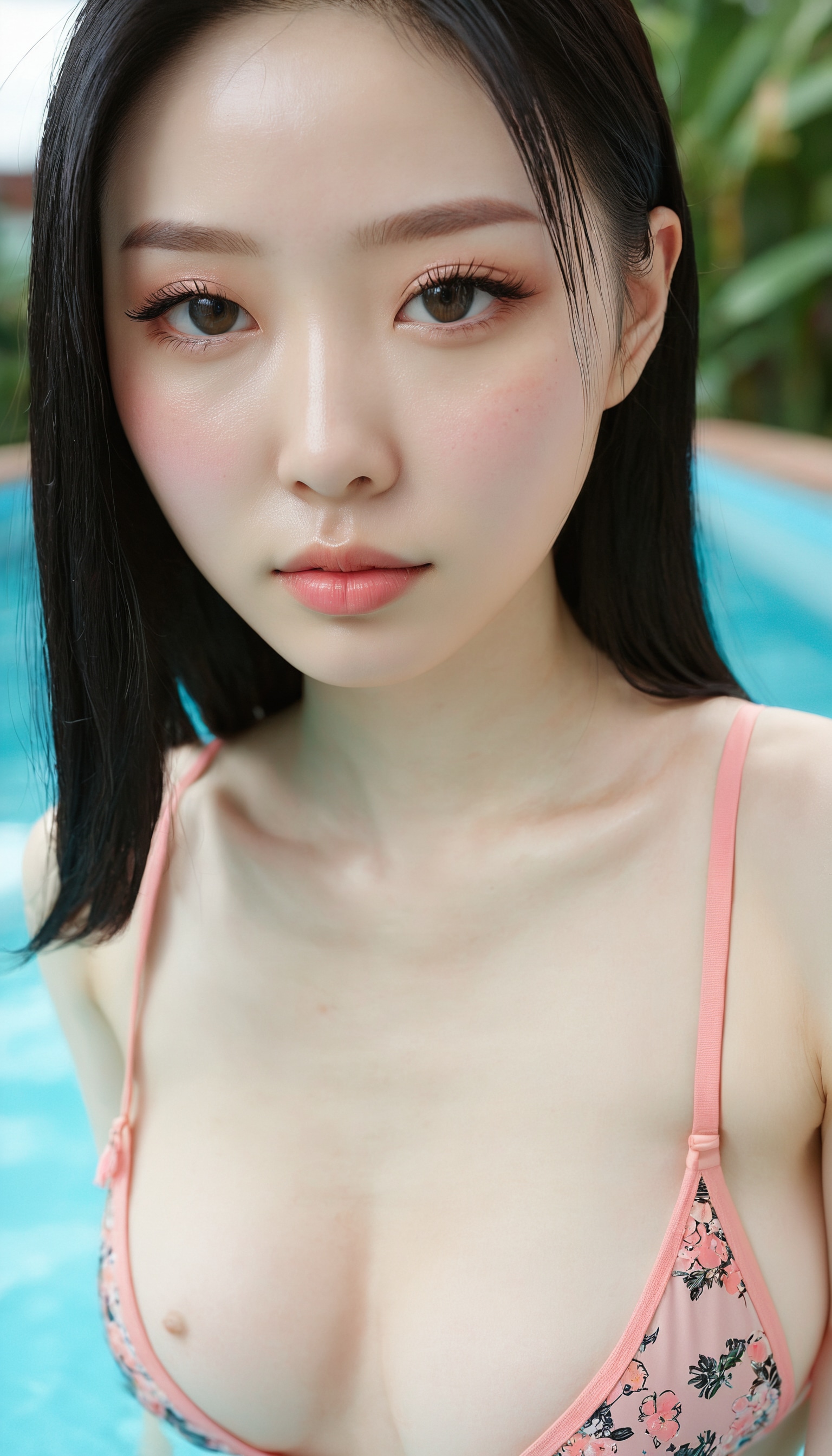 {"3": {"inputs": {"seed": 440893308691740, "steps": 64, "cfg": 7.96, "sampler_name": "dpmpp_2m", "scheduler": "karras", "denoise": 1.0, "model": ["27", 0], "positive": ["6", 0], "negative": ["7", 0], "latent_image": ["5", 0]}, "class_type": "KSampler"}, "4": {"inputs": {"ckpt_name": "juggernautxl.safetensors"}, "class_type": "CheckpointLoaderSimple"}, "5": {"inputs": {"width": 768, "height": 1344, "batch_size": 1}, "class_type": "EmptyLatentImage"}, "6": {"inputs": {"text": "24 year old girl, (korean:0.98), (ukrainian:0.99), (pale skin:1.09), (temptress:1.10), (seductive facial expression:0.95), (double eyelids:0.96), (blush:1.13), (eyelashes:1.06), (cute:1.04), (slim:0.97), (detailed face:1.12), (seductive pose:1.02), (sexy lips:0.96), (in a seductive pose:0.97), (large perky breasts:0.95), (cleavage:1.07), (thigh gap:1.04), (in a swimsuit:1.02) at a pool, (skin fuzz:1.02), (candid cinema:1.06), (natural looking skin:1.06), (film:1.09), (detailed skin:1.07), (RAW:1.04), (portra:1.00), (textured skin:1.07), (soft lighting:1.09)", "clip": ["27", 1]}, "class_type": "CLIPTextEncode"}, "7": {"inputs": {"text": "(watermark:1.07), (low resolution:1.08), (twisted:1.14), (bad hands:1.09), (distorted:1.09), (open mouth:1.14), (worst quality:1.14)", "clip": ["27", 1]}, "class_type": "CLIPTextEncode"}, "8": {"inputs": {"samples": ["3", 0], "vae": ["4", 2]}, "class_type": "VAEDecode"}, "25": {"inputs": {"lora_name": "nudify_xl.safetensors", "strength_model": 0.01, "strength_clip": 0.27, "model": ["4", 0], "clip": ["4", 1]}, "class_type": "LoraLoader"}, "26": {"inputs": {"lora_name": "shirtlift_SDXL_v2.safetensors", "strength_model": 0.09, "strength_clip": 0.17, "model": ["25", 0], "clip": ["25", 1]}, "class_type": "LoraLoader"}, "27": {"inputs": {"lora_name": "PerfectEyesXL.safetensors", "strength_model": 0.12, "strength_clip": 0.15, "model": ["26", 0], "clip": ["26", 1]}, "class_type": "LoraLoader"}, "30": {"inputs": {"model_name": "4x_NMKD-Superscale-SP_178000_G.pth"}, "class_type": "UpscaleModelLoader"}, "31": {"inputs": {"upscale_model": ["30", 0], "image": ["8", 0]}, "class_type": "ImageUpscaleWithModel"}, "32": {"inputs": {"upscale_method": "lanczos", "scale_by": 0.5, "image": ["31", 0]}, "class_type": "ImageScaleBy"}, "33": {"inputs": {"pixels": ["32", 0], "vae": ["4", 2]}, "class_type": "VAEEncode"}, "34": {"inputs": {"seed": 440893308691740, "steps": 64, "cfg": 7.96, "sampler_name": "dpmpp_2m", "scheduler": "karras", "denoise": 0.3, "model": ["27", 0], "positive": ["6", 0], "negative": ["7", 0], "latent_image": ["33", 0]}, "class_type": "KSampler"}, "36": {"inputs": {"samples": ["34", 0], "vae": ["4", 2]}, "class_type": "VAEDecode"}, "39": {"inputs": {"filename_prefix": "comfyapi-1713457728885", "images": ["36", 0]}, "class_type": "SaveImage"}}
