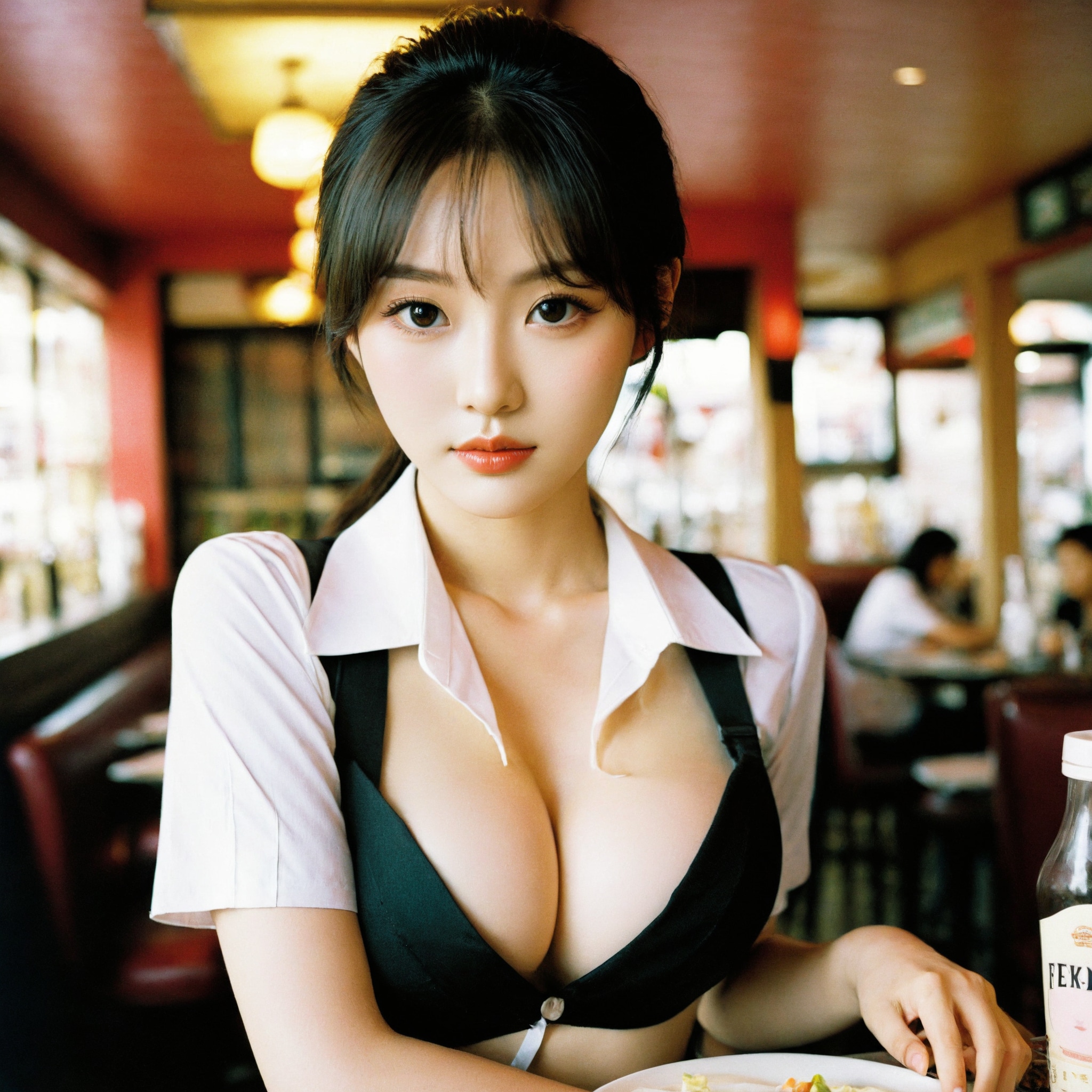 {"3": {"inputs": {"seed": 634152256410211, "steps": 64, "cfg": 7.29, "sampler_name": "dpmpp_2m", "scheduler": "karras", "denoise": 1.0, "model": ["27", 0], "positive": ["6", 0], "negative": ["7", 0], "latent_image": ["5", 0]}, "class_type": "KSampler"}, "4": {"inputs": {"ckpt_name": "helloworldxl.safetensors"}, "class_type": "CheckpointLoaderSimple"}, "5": {"inputs": {"width": 1024, "height": 1024, "batch_size": 1}, "class_type": "EmptyLatentImage"}, "6": {"inputs": {"text": "22 year old girl, (korean:1.12), (seductive facial expression:1.01), (temptress:1.09), (detailed face:1.13), (slim:1.13), (pale skin:1.11), (seductive pose:0.99), (sexy lips:1.01), (blush:1.05), (idol:0.97), (beautiful eyes:1.00), (cute:1.01), (eyelashes:1.08), (double eyelids:1.01), (in a seductive pose:1.09), (large perky breasts:1.03), (cleavage:1.09), (thigh gap:0.98), (a waitress in uniform:1.00) working at a restaurant, (skin fuzz:1.01), (film:1.03), (textured skin:1.07), (detailed skin:1.08), (soft lighting:1.05), (portra:1.02), (natural looking skin:1.03), (candid cinema:1.06), (RAW:1.03)", "clip": ["27", 1]}, "class_type": "CLIPTextEncode"}, "7": {"inputs": {"text": "(watermark:1.09), (worst quality:1.12), (low resolution:1.09), (open mouth:1.13), (distorted:1.06), (bad hands:1.07), (twisted:1.05)", "clip": ["27", 1]}, "class_type": "CLIPTextEncode"}, "8": {"inputs": {"samples": ["3", 0], "vae": ["4", 2]}, "class_type": "VAEDecode"}, "25": {"inputs": {"lora_name": "nudify_xl.safetensors", "strength_model": 0.37, "strength_clip": 0.07, "model": ["4", 0], "clip": ["4", 1]}, "class_type": "LoraLoader"}, "26": {"inputs": {"lora_name": "shirtlift_SDXL_v2.safetensors", "strength_model": 0.06, "strength_clip": 0.14, "model": ["25", 0], "clip": ["25", 1]}, "class_type": "LoraLoader"}, "27": {"inputs": {"lora_name": "PerfectEyesXL.safetensors", "strength_model": 0.01, "strength_clip": 0.16, "model": ["26", 0], "clip": ["26", 1]}, "class_type": "LoraLoader"}, "30": {"inputs": {"model_name": "4x_NMKD-Superscale-SP_178000_G.pth"}, "class_type": "UpscaleModelLoader"}, "31": {"inputs": {"upscale_model": ["30", 0], "image": ["8", 0]}, "class_type": "ImageUpscaleWithModel"}, "32": {"inputs": {"upscale_method": "lanczos", "scale_by": 0.5, "image": ["31", 0]}, "class_type": "ImageScaleBy"}, "33": {"inputs": {"pixels": ["32", 0], "vae": ["4", 2]}, "class_type": "VAEEncode"}, "34": {"inputs": {"seed": 634152256410211, "steps": 64, "cfg": 7.29, "sampler_name": "dpmpp_2m", "scheduler": "karras", "denoise": 0.3, "model": ["27", 0], "positive": ["6", 0], "negative": ["7", 0], "latent_image": ["33", 0]}, "class_type": "KSampler"}, "36": {"inputs": {"samples": ["34", 0], "vae": ["4", 2]}, "class_type": "VAEDecode"}, "39": {"inputs": {"filename_prefix": "comfyapi-1714620616442", "images": ["36", 0]}, "class_type": "SaveImage"}}