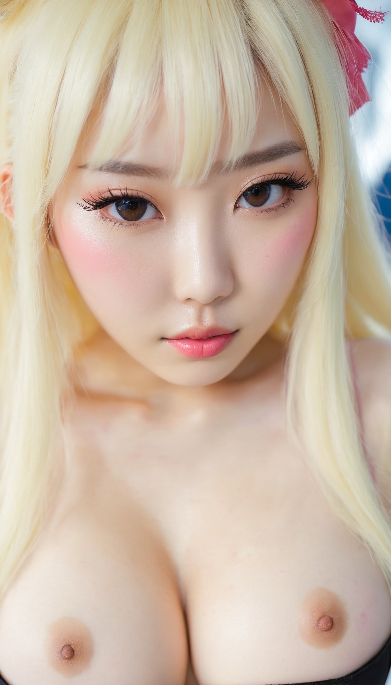 {"3": {"inputs": {"seed": 189648111985555, "steps": 64, "cfg": 5.64, "sampler_name": "dpmpp_2m", "scheduler": "karras", "denoise": 1.0, "model": ["27", 0], "positive": ["6", 0], "negative": ["7", 0], "latent_image": ["5", 0]}, "class_type": "KSampler"}, "4": {"inputs": {"ckpt_name": "juggernautxl.safetensors"}, "class_type": "CheckpointLoaderSimple"}, "5": {"inputs": {"width": 768, "height": 1344, "batch_size": 1}, "class_type": "EmptyLatentImage"}, "6": {"inputs": {"text": "24 year old girl, (korean:1.14), (taiwanese:1.06), (sexy lips:1.03), (eyelashes:0.97), (pale skin:1.07), (cute:1.14), (double eyelids:1.00), (temptress:0.97), (detailed face:1.02), (beautiful eyes:0.99), (blush:1.06), (seductive facial expression:1.02), (seductive pose:1.10), (in a seductive pose:1.05), (large perky breasts:0.98), (cleavage:1.10), (thigh gap:0.98), (in a cosplay:0.98) at comiket posing for camera, (film:1.02), (candid cinema:1.03), (natural looking skin:1.08), (portra:1.07), (RAW:1.06), (detailed skin:1.08), (soft lighting:1.03), (textured skin:1.01), (skin fuzz:1.03)", "clip": ["27", 1]}, "class_type": "CLIPTextEncode"}, "7": {"inputs": {"text": "(low resolution:1.13), (bad hands:1.13), (twisted:1.09), (open mouth:1.05), (worst quality:1.13), (distorted:1.09), (watermark:1.14)", "clip": ["27", 1]}, "class_type": "CLIPTextEncode"}, "8": {"inputs": {"samples": ["3", 0], "vae": ["4", 2]}, "class_type": "VAEDecode"}, "25": {"inputs": {"lora_name": "nudify_xl.safetensors", "strength_model": 0.03, "strength_clip": 0.16, "model": ["4", 0], "clip": ["4", 1]}, "class_type": "LoraLoader"}, "26": {"inputs": {"lora_name": "shirtlift_SDXL_v2.safetensors", "strength_model": 0.02, "strength_clip": 0.12, "model": ["25", 0], "clip": ["25", 1]}, "class_type": "LoraLoader"}, "27": {"inputs": {"lora_name": "PerfectEyesXL.safetensors", "strength_model": 0.17, "strength_clip": 0.02, "model": ["26", 0], "clip": ["26", 1]}, "class_type": "LoraLoader"}, "30": {"inputs": {"model_name": "4x_NMKD-Superscale-SP_178000_G.pth"}, "class_type": "UpscaleModelLoader"}, "31": {"inputs": {"upscale_model": ["30", 0], "image": ["8", 0]}, "class_type": "ImageUpscaleWithModel"}, "32": {"inputs": {"upscale_method": "lanczos", "scale_by": 0.5, "image": ["31", 0]}, "class_type": "ImageScaleBy"}, "33": {"inputs": {"pixels": ["32", 0], "vae": ["4", 2]}, "class_type": "VAEEncode"}, "34": {"inputs": {"seed": 189648111985555, "steps": 64, "cfg": 5.64, "sampler_name": "dpmpp_2m", "scheduler": "karras", "denoise": 0.3, "model": ["27", 0], "positive": ["6", 0], "negative": ["7", 0], "latent_image": ["33", 0]}, "class_type": "KSampler"}, "36": {"inputs": {"samples": ["34", 0], "vae": ["4", 2]}, "class_type": "VAEDecode"}, "39": {"inputs": {"filename_prefix": "comfyapi-1714080104052", "images": ["36", 0]}, "class_type": "SaveImage"}}