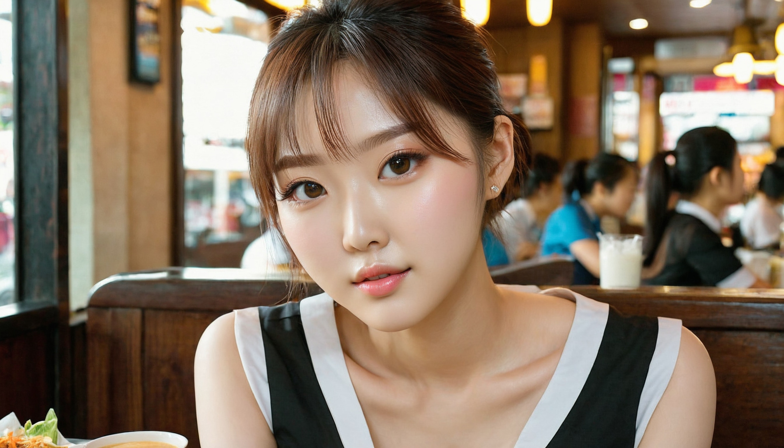 {"3": {"inputs": {"seed": 360443527585068, "steps": 64, "cfg": 6.39, "sampler_name": "dpmpp_2m", "scheduler": "karras", "denoise": 1.0, "model": ["27", 0], "positive": ["6", 0], "negative": ["7", 0], "latent_image": ["5", 0]}, "class_type": "KSampler"}, "4": {"inputs": {"ckpt_name": "juggernautxl.safetensors"}, "class_type": "CheckpointLoaderSimple"}, "5": {"inputs": {"width": 1344, "height": 768, "batch_size": 1}, "class_type": "EmptyLatentImage"}, "6": {"inputs": {"text": "25 year old girl, (korean:1.08), (beautiful eyes:1.09), (seductive pose:1.09), (sexy lips:0.98), (double eyelids:0.98), (detailed face:1.05), (seductive facial expression:1.06), (pale skin:1.08), (eyelashes:1.09), (cute:1.11), (idol:0.95), (slim:0.97), (blush:1.03), (temptress:1.13), (in a seductive pose:1.14), (large perky breasts:0.96), (cleavage:0.99), (thigh gap:1.14), (a waitress in uniform:1.05) working at a restaurant, (RAW:1.01), (textured skin:1.04), (natural looking skin:1.02), (portra:1.09), (skin fuzz:1.04), (soft lighting:1.07), (candid cinema:1.02), (film:1.04), (detailed skin:1.04)", "clip": ["27", 1]}, "class_type": "CLIPTextEncode"}, "7": {"inputs": {"text": "(low resolution:1.09), (worst quality:1.06), (watermark:1.08), (open mouth:1.12), (bad hands:1.06), (twisted:1.06), (distorted:1.10)", "clip": ["27", 1]}, "class_type": "CLIPTextEncode"}, "8": {"inputs": {"samples": ["3", 0], "vae": ["4", 2]}, "class_type": "VAEDecode"}, "25": {"inputs": {"lora_name": "nudify_xl.safetensors", "strength_model": 0.23, "strength_clip": 0.23, "model": ["4", 0], "clip": ["4", 1]}, "class_type": "LoraLoader"}, "26": {"inputs": {"lora_name": "shirtlift_SDXL_v2.safetensors", "strength_model": 0.1, "strength_clip": 0.18, "model": ["25", 0], "clip": ["25", 1]}, "class_type": "LoraLoader"}, "27": {"inputs": {"lora_name": "PerfectEyesXL.safetensors", "strength_model": 0.03, "strength_clip": 0.02, "model": ["26", 0], "clip": ["26", 1]}, "class_type": "LoraLoader"}, "30": {"inputs": {"model_name": "4x_NMKD-Superscale-SP_178000_G.pth"}, "class_type": "UpscaleModelLoader"}, "31": {"inputs": {"upscale_model": ["30", 0], "image": ["8", 0]}, "class_type": "ImageUpscaleWithModel"}, "32": {"inputs": {"upscale_method": "lanczos", "scale_by": 0.5, "image": ["31", 0]}, "class_type": "ImageScaleBy"}, "33": {"inputs": {"pixels": ["32", 0], "vae": ["4", 2]}, "class_type": "VAEEncode"}, "34": {"inputs": {"seed": 360443527585068, "steps": 64, "cfg": 6.39, "sampler_name": "dpmpp_2m", "scheduler": "karras", "denoise": 0.3, "model": ["27", 0], "positive": ["6", 0], "negative": ["7", 0], "latent_image": ["33", 0]}, "class_type": "KSampler"}, "36": {"inputs": {"samples": ["34", 0], "vae": ["4", 2]}, "class_type": "VAEDecode"}, "39": {"inputs": {"filename_prefix": "comfyapi-1716711329800", "images": ["36", 0]}, "class_type": "SaveImage"}}