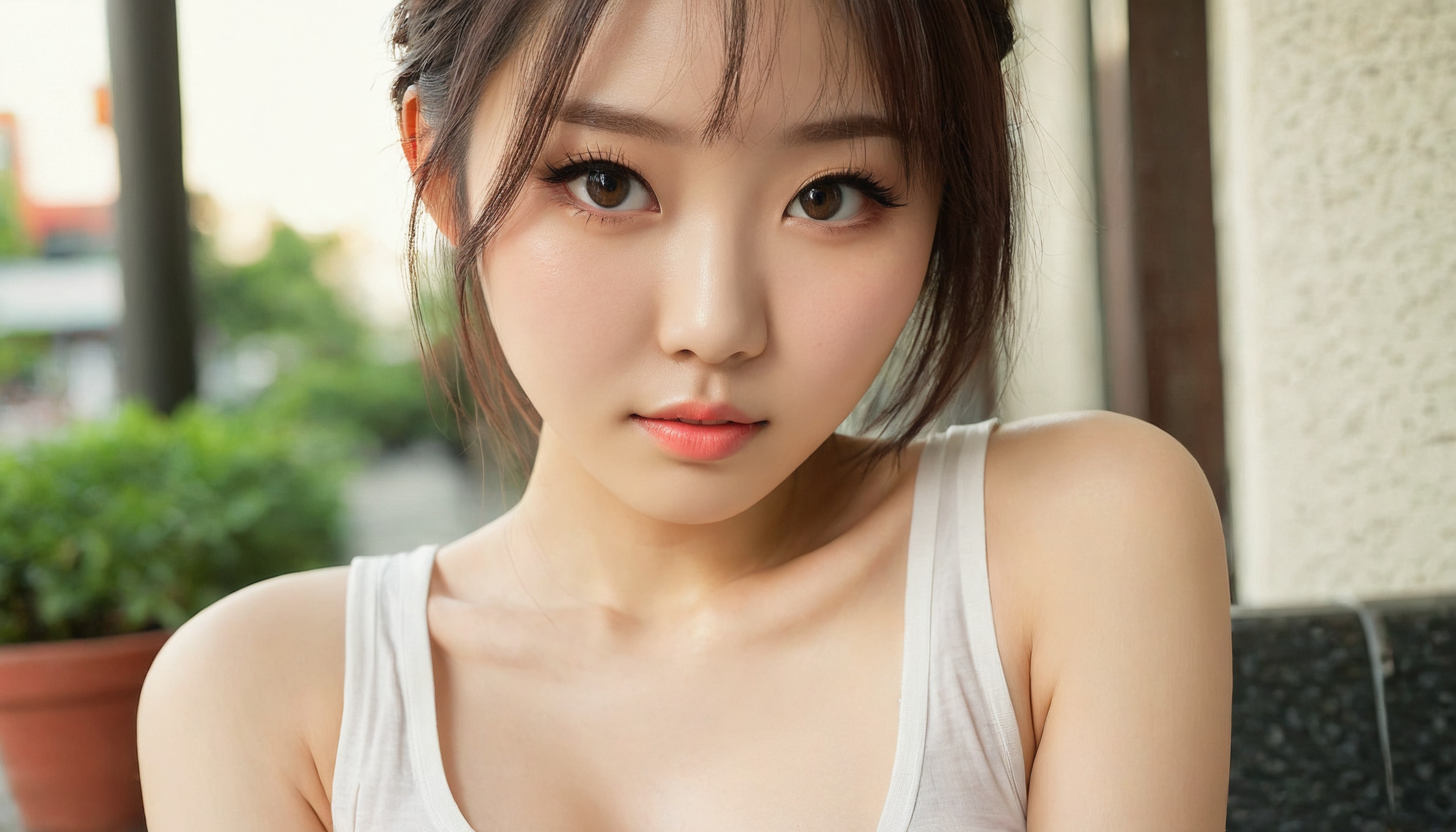 {"3": {"inputs": {"seed": 952499934396842, "steps": 64, "cfg": 5.73, "sampler_name": "dpmpp_2m", "scheduler": "karras", "denoise": 1.0, "model": ["27", 0], "positive": ["6", 0], "negative": ["7", 0], "latent_image": ["5", 0]}, "class_type": "KSampler"}, "4": {"inputs": {"ckpt_name": "juggernautxl.safetensors"}, "class_type": "CheckpointLoaderSimple"}, "5": {"inputs": {"width": 1344, "height": 768, "batch_size": 1}, "class_type": "EmptyLatentImage"}, "6": {"inputs": {"text": "26 year old girl, (chinese:0.97), (cute:1.06), (seductive pose:1.07), (double eyelids:1.07), (beautiful eyes:1.05), (slim:1.05), (idol:1.05), (detailed face:1.10), (temptress:0.95), (seductive facial expression:1.10), (eyelashes:1.04), (blush:0.96), (sexy lips:0.96), (pale skin:1.12), (in a seductive pose:1.01), (large perky breasts:1.12), (cleavage:1.07), (thigh gap:0.96), (white tanktop:1.11), busy street, (film:1.03), (skin fuzz:1.08), (textured skin:1.09), (RAW:1.01), (soft lighting:1.02), (portra:1.06), (natural looking skin:1.03), (detailed skin:1.03), (candid cinema:1.08)", "clip": ["27", 1]}, "class_type": "CLIPTextEncode"}, "7": {"inputs": {"text": "(twisted:1.12), (watermark:1.05), (bad hands:1.06), (low resolution:1.08), (worst quality:1.07), (distorted:1.14), (open mouth:1.06)", "clip": ["27", 1]}, "class_type": "CLIPTextEncode"}, "8": {"inputs": {"samples": ["3", 0], "vae": ["4", 2]}, "class_type": "VAEDecode"}, "25": {"inputs": {"lora_name": "nudify_xl.safetensors", "strength_model": 0.21, "strength_clip": 0.32, "model": ["4", 0], "clip": ["4", 1]}, "class_type": "LoraLoader"}, "26": {"inputs": {"lora_name": "shirtlift_SDXL_v2.safetensors", "strength_model": 0.05, "strength_clip": 0.08, "model": ["25", 0], "clip": ["25", 1]}, "class_type": "LoraLoader"}, "27": {"inputs": {"lora_name": "PerfectEyesXL.safetensors", "strength_model": 0.15, "strength_clip": 0.04, "model": ["26", 0], "clip": ["26", 1]}, "class_type": "LoraLoader"}, "30": {"inputs": {"model_name": "4x_NMKD-Superscale-SP_178000_G.pth"}, "class_type": "UpscaleModelLoader"}, "31": {"inputs": {"upscale_model": ["30", 0], "image": ["8", 0]}, "class_type": "ImageUpscaleWithModel"}, "32": {"inputs": {"upscale_method": "lanczos", "scale_by": 0.5, "image": ["31", 0]}, "class_type": "ImageScaleBy"}, "33": {"inputs": {"pixels": ["32", 0], "vae": ["4", 2]}, "class_type": "VAEEncode"}, "34": {"inputs": {"seed": 952499934396842, "steps": 64, "cfg": 5.73, "sampler_name": "dpmpp_2m", "scheduler": "karras", "denoise": 0.3, "model": ["27", 0], "positive": ["6", 0], "negative": ["7", 0], "latent_image": ["33", 0]}, "class_type": "KSampler"}, "36": {"inputs": {"samples": ["34", 0], "vae": ["4", 2]}, "class_type": "VAEDecode"}, "39": {"inputs": {"filename_prefix": "comfyapi-1724335226134", "images": ["36", 0]}, "class_type": "SaveImage"}}