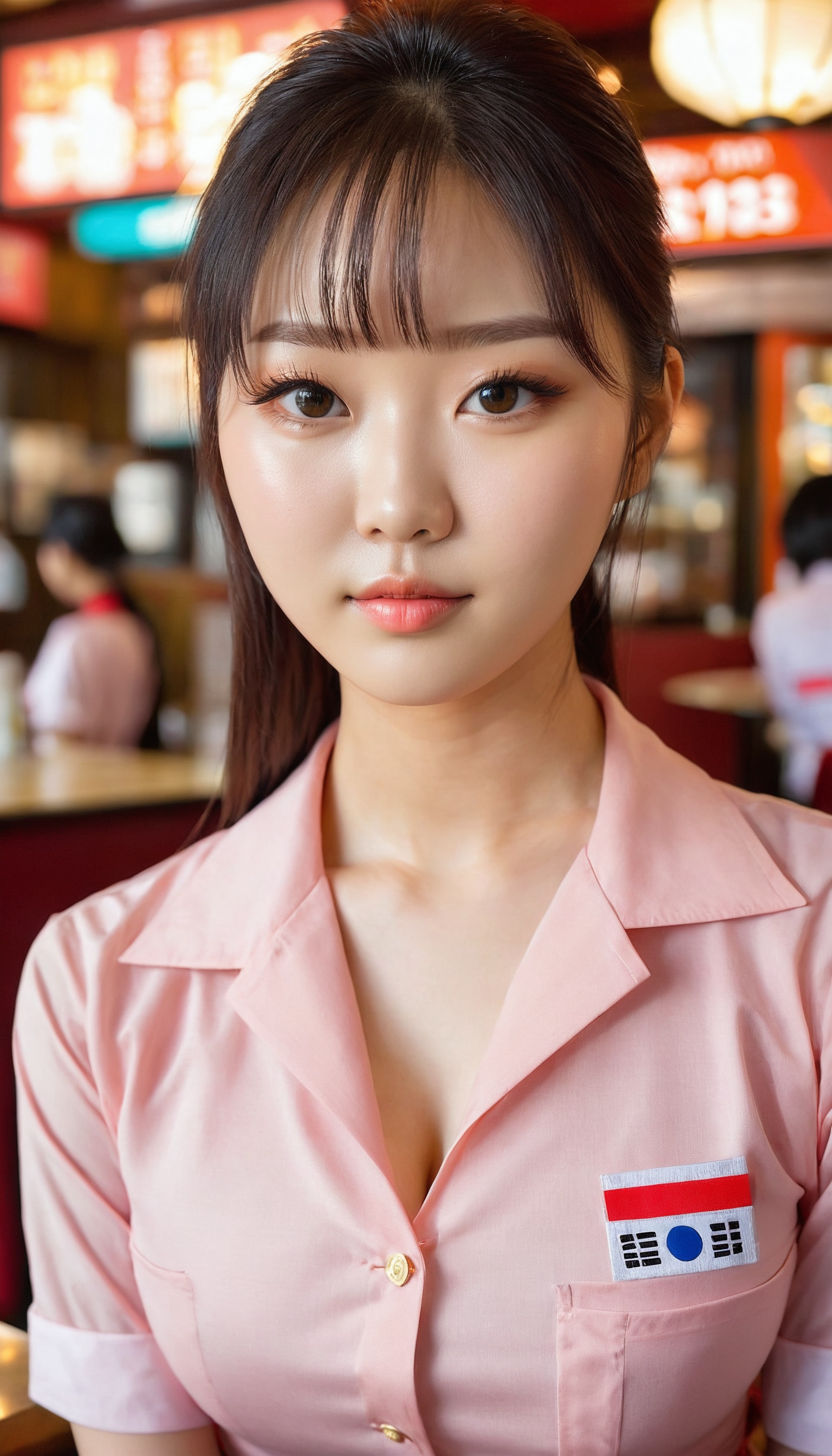 {"3": {"inputs": {"seed": 732584103136160, "steps": 32, "cfg": 7.44, "sampler_name": "dpmpp_2m", "scheduler": "karras", "denoise": 1.0, "model": ["27", 0], "positive": ["6", 0], "negative": ["7", 0], "latent_image": ["5", 0]}, "class_type": "KSampler"}, "4": {"inputs": {"ckpt_name": "juggernautxl.safetensors"}, "class_type": "CheckpointLoaderSimple"}, "5": {"inputs": {"width": 768, "height": 1344, "batch_size": 1}, "class_type": "EmptyLatentImage"}, "6": {"inputs": {"text": "21 year old girl, (korean:0.97), (double eyelids:0.97), (seductive pose:1.03), (seductive facial expression:1.04), (cute:0.96), (sexy lips:0.95), (temptress:1.05), (pale skin:0.97), (blush:1.03), (idol:1.12), (eyelashes:1.08), (slim:1.10), (beautiful eyes:1.05), (detailed face:1.14), (in a seductive pose:0.97), (large perky breasts:0.98), (cleavage:1.04), (thigh gap:1.10), (a waitress in uniform:1.10) working at a restaurant, (candid cinema:1.02), (film:1.04), (detailed skin:1.00), (textured skin:1.02), (natural looking skin:1.09), (portra:1.02), (skin fuzz:1.04), (soft lighting:1.09), (RAW:1.09)", "clip": ["27", 1]}, "class_type": "CLIPTextEncode"}, "7": {"inputs": {"text": "(worst quality:1.07), (distorted:1.14), (low resolution:1.08), (watermark:1.06), (twisted:1.10), (bad hands:1.09), (open mouth:1.06)", "clip": ["27", 1]}, "class_type": "CLIPTextEncode"}, "8": {"inputs": {"samples": ["3", 0], "vae": ["4", 2]}, "class_type": "VAEDecode"}, "25": {"inputs": {"lora_name": "nudify_xl.safetensors", "strength_model": 0.19, "strength_clip": 0.26, "model": ["4", 0], "clip": ["4", 1]}, "class_type": "LoraLoader"}, "26": {"inputs": {"lora_name": "shirtlift_SDXL_v2.safetensors", "strength_model": 0.01, "strength_clip": 0.08, "model": ["25", 0], "clip": ["25", 1]}, "class_type": "LoraLoader"}, "27": {"inputs": {"lora_name": "PerfectEyesXL.safetensors", "strength_model": 0.13, "strength_clip": 0.14, "model": ["26", 0], "clip": ["26", 1]}, "class_type": "LoraLoader"}, "30": {"inputs": {"model_name": "4x_NMKD-Superscale-SP_178000_G.pth"}, "class_type": "UpscaleModelLoader"}, "31": {"inputs": {"upscale_model": ["30", 0], "image": ["8", 0]}, "class_type": "ImageUpscaleWithModel"}, "32": {"inputs": {"upscale_method": "lanczos", "scale_by": 0.5, "image": ["31", 0]}, "class_type": "ImageScaleBy"}, "33": {"inputs": {"pixels": ["32", 0], "vae": ["4", 2]}, "class_type": "VAEEncode"}, "34": {"inputs": {"seed": 732584103136160, "steps": 32, "cfg": 7.44, "sampler_name": "dpmpp_2m", "scheduler": "karras", "denoise": 0.3, "model": ["27", 0], "positive": ["6", 0], "negative": ["7", 0], "latent_image": ["33", 0]}, "class_type": "KSampler"}, "36": {"inputs": {"samples": ["34", 0], "vae": ["4", 2]}, "class_type": "VAEDecode"}, "39": {"inputs": {"filename_prefix": "comfyapi-1715811059991", "images": ["36", 0]}, "class_type": "SaveImage"}}
