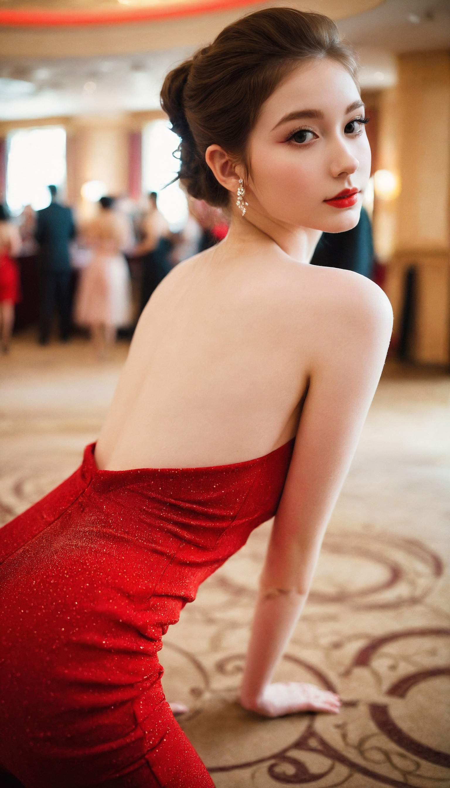 {"3": {"inputs": {"seed": 601157543516143, "steps": 64, "cfg": 6.43, "sampler_name": "dpmpp_2m", "scheduler": "karras", "denoise": 1.0, "model": ["27", 0], "positive": ["6", 0], "negative": ["7", 0], "latent_image": ["5", 0]}, "class_type": "KSampler"}, "4": {"inputs": {"ckpt_name": "helloworldxl.safetensors"}, "class_type": "CheckpointLoaderSimple"}, "5": {"inputs": {"width": 768, "height": 1344, "batch_size": 1}, "class_type": "EmptyLatentImage"}, "6": {"inputs": {"text": "20 year old girl, (sexy lips:1.00), (slim:1.13), (beautiful eyes:1.03), (pale skin:1.05), (detailed face:1.04), (seductive facial expression:1.08), (eyelashes:1.11), (temptress:1.10), (cute:1.08), (seductive pose:0.96), (on all fours:1.01), (spreading ass cheeks:0.96), (from behind:1.11), (backboob:0.96), (wearing a low-cut red dress:1.12) at a ballroom, (textured skin:1.08), (detailed skin:1.06), (skin fuzz:1.04), (natural looking skin:1.07), (portra:1.00), (soft lighting:1.00), (candid cinema:1.07), (RAW:1.04), (film:1.07)", "clip": ["27", 1]}, "class_type": "CLIPTextEncode"}, "7": {"inputs": {"text": "(distorted:1.14), (twisted:1.08), (bad hands:1.12), (worst quality:1.11), (low resolution:1.13), (watermark:1.13), (open mouth:1.11)", "clip": ["27", 1]}, "class_type": "CLIPTextEncode"}, "8": {"inputs": {"samples": ["3", 0], "vae": ["4", 2]}, "class_type": "VAEDecode"}, "25": {"inputs": {"lora_name": "nudify_xl.safetensors", "strength_model": 0.26, "strength_clip": 0.18, "model": ["4", 0], "clip": ["4", 1]}, "class_type": "LoraLoader"}, "26": {"inputs": {"lora_name": "shirtlift_SDXL_v2.safetensors", "strength_model": 0.13, "strength_clip": 0.0, "model": ["25", 0], "clip": ["25", 1]}, "class_type": "LoraLoader"}, "27": {"inputs": {"lora_name": "PerfectEyesXL.safetensors", "strength_model": 0.06, "strength_clip": 0.1, "model": ["26", 0], "clip": ["26", 1]}, "class_type": "LoraLoader"}, "30": {"inputs": {"model_name": "4x_NMKD-Superscale-SP_178000_G.pth"}, "class_type": "UpscaleModelLoader"}, "31": {"inputs": {"upscale_model": ["30", 0], "image": ["8", 0]}, "class_type": "ImageUpscaleWithModel"}, "32": {"inputs": {"upscale_method": "lanczos", "scale_by": 0.5, "image": ["31", 0]}, "class_type": "ImageScaleBy"}, "33": {"inputs": {"pixels": ["32", 0], "vae": ["4", 2]}, "class_type": "VAEEncode"}, "34": {"inputs": {"seed": 601157543516143, "steps": 64, "cfg": 6.43, "sampler_name": "dpmpp_2m", "scheduler": "karras", "denoise": 0.3, "model": ["27", 0], "positive": ["6", 0], "negative": ["7", 0], "latent_image": ["33", 0]}, "class_type": "KSampler"}, "36": {"inputs": {"samples": ["34", 0], "vae": ["4", 2]}, "class_type": "VAEDecode"}, "39": {"inputs": {"filename_prefix": "comfyapi-1717264713010", "images": ["36", 0]}, "class_type": "SaveImage"}}