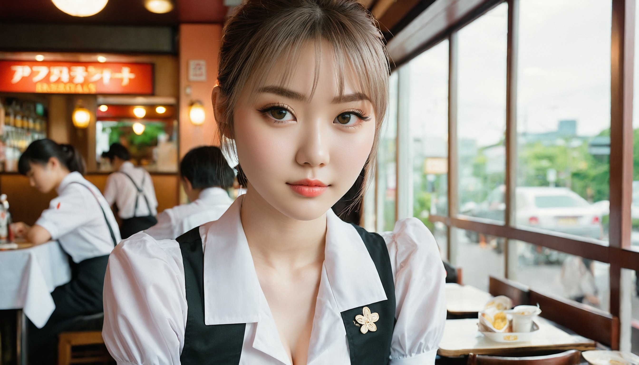 {"3": {"inputs": {"seed": 233643115976629, "steps": 64, "cfg": 7.55, "sampler_name": "dpmpp_2m", "scheduler": "karras", "denoise": 1.0, "model": ["27", 0], "positive": ["6", 0], "negative": ["7", 0], "latent_image": ["5", 0]}, "class_type": "KSampler"}, "4": {"inputs": {"ckpt_name": "juggernautxl.safetensors"}, "class_type": "CheckpointLoaderSimple"}, "5": {"inputs": {"width": 1344, "height": 768, "batch_size": 1}, "class_type": "EmptyLatentImage"}, "6": {"inputs": {"text": "20 year old girl, (irish:1.06), (japanese:1.08), (russian:1.05), (eyelashes:0.95), (detailed face:1.01), (seductive facial expression:0.97), (cute:1.02), (beautiful eyes:1.05), (double eyelids:1.01), (sexy lips:1.06), (blush:1.01), (slim:0.99), (seductive pose:0.95), (pale skin:1.09), (idol:1.14), (temptress:1.08), (in a seductive pose:0.95), (large perky breasts:1.13), (cleavage:0.95), (thigh gap:1.09), (a waitress in uniform:1.10) working at a restaurant, (detailed skin:1.00), (film:1.03), (candid cinema:1.09), (natural looking skin:1.09), (RAW:1.02), (textured skin:1.09), (soft lighting:1.09), (portra:1.04), (skin fuzz:1.07)", "clip": ["27", 1]}, "class_type": "CLIPTextEncode"}, "7": {"inputs": {"text": "(open mouth:1.08), (bad hands:1.13), (low resolution:1.07), (watermark:1.08), (twisted:1.08), (worst quality:1.08), (distorted:1.09)", "clip": ["27", 1]}, "class_type": "CLIPTextEncode"}, "8": {"inputs": {"samples": ["3", 0], "vae": ["4", 2]}, "class_type": "VAEDecode"}, "25": {"inputs": {"lora_name": "nudify_xl.safetensors", "strength_model": 0.09, "strength_clip": 0.28, "model": ["4", 0], "clip": ["4", 1]}, "class_type": "LoraLoader"}, "26": {"inputs": {"lora_name": "shirtlift_SDXL_v2.safetensors", "strength_model": 0.02, "strength_clip": 0.02, "model": ["25", 0], "clip": ["25", 1]}, "class_type": "LoraLoader"}, "27": {"inputs": {"lora_name": "PerfectEyesXL.safetensors", "strength_model": 0.04, "strength_clip": 0.03, "model": ["26", 0], "clip": ["26", 1]}, "class_type": "LoraLoader"}, "30": {"inputs": {"model_name": "4x_NMKD-Superscale-SP_178000_G.pth"}, "class_type": "UpscaleModelLoader"}, "31": {"inputs": {"upscale_model": ["30", 0], "image": ["8", 0]}, "class_type": "ImageUpscaleWithModel"}, "32": {"inputs": {"upscale_method": "lanczos", "scale_by": 0.5, "image": ["31", 0]}, "class_type": "ImageScaleBy"}, "33": {"inputs": {"pixels": ["32", 0], "vae": ["4", 2]}, "class_type": "VAEEncode"}, "34": {"inputs": {"seed": 233643115976629, "steps": 64, "cfg": 7.55, "sampler_name": "dpmpp_2m", "scheduler": "karras", "denoise": 0.3, "model": ["27", 0], "positive": ["6", 0], "negative": ["7", 0], "latent_image": ["33", 0]}, "class_type": "KSampler"}, "36": {"inputs": {"samples": ["34", 0], "vae": ["4", 2]}, "class_type": "VAEDecode"}, "39": {"inputs": {"filename_prefix": "comfyapi-1717619274381", "images": ["36", 0]}, "class_type": "SaveImage"}}