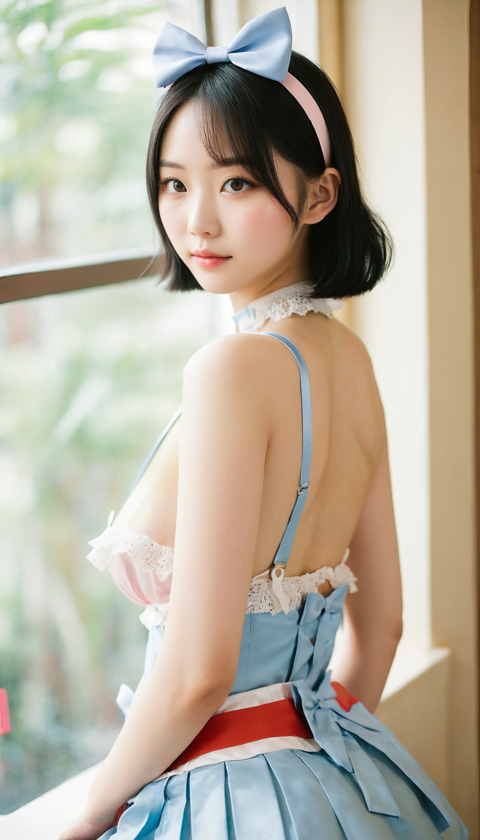 {"3": {"inputs": {"seed": 990627446239163, "steps": 64, "cfg": 6.4, "sampler_name": "dpmpp_2m", "scheduler": "karras", "denoise": 1.0, "model": ["27", 0], "positive": ["6", 0], "negative": ["7", 0], "latent_image": ["5", 0]}, "class_type": "KSampler"}, "4": {"inputs": {"ckpt_name": "juggernautxl.safetensors"}, "class_type": "CheckpointLoaderSimple"}, "5": {"inputs": {"width": 768, "height": 1344, "batch_size": 1}, "class_type": "EmptyLatentImage"}, "6": {"inputs": {"text": "19 year old girl, (taiwanese:1.12), (korean:1.13), (double eyelids:1.11), (slim:1.00), (beautiful eyes:1.10), (pale skin:0.96), (sexy lips:0.97), (idol:1.00), (temptress:1.03), (blush:0.95), (seductive facial expression:1.13), (eyelashes:1.09), (detailed face:1.10), (cute:1.07), (seductive pose:1.11), (perky ass:1.01), (exposed ass:1.09), (looking back:1.04), (sexy ass:1.10), (thigh gap:1.03), in a (skimpy maid costume:0.97) working at a maid cafe, choker, bowtie, headband, pleated skirt, (natural looking skin:1.05), (film:1.06), (detailed skin:1.00), (candid cinema:1.08), (soft lighting:1.00), (portra:1.08), (skin fuzz:1.08), (RAW:1.07)", "clip": ["27", 1]}, "class_type": "CLIPTextEncode"}, "7": {"inputs": {"text": "(twisted:1.14), (bad hands:1.11), (distorted:1.05), (watermark:1.05), (worst quality:1.05), (open mouth:1.07), (low resolution:1.07)", "clip": ["27", 1]}, "class_type": "CLIPTextEncode"}, "8": {"inputs": {"samples": ["3", 0], "vae": ["4", 2]}, "class_type": "VAEDecode"}, "25": {"inputs": {"lora_name": "nudify_xl.safetensors", "strength_model": 0.21, "strength_clip": 0.18, "model": ["4", 0], "clip": ["4", 1]}, "class_type": "LoraLoader"}, "26": {"inputs": {"lora_name": "shirtlift_SDXL_v2.safetensors", "strength_model": 0.05, "strength_clip": 0.04, "model": ["25", 0], "clip": ["25", 1]}, "class_type": "LoraLoader"}, "27": {"inputs": {"lora_name": "PerfectEyesXL.safetensors", "strength_model": 0.19, "strength_clip": 0.12, "model": ["26", 0], "clip": ["26", 1]}, "class_type": "LoraLoader"}, "30": {"inputs": {"model_name": "4x_NMKD-Superscale-SP_178000_G.pth"}, "class_type": "UpscaleModelLoader"}, "31": {"inputs": {"upscale_model": ["30", 0], "image": ["8", 0]}, "class_type": "ImageUpscaleWithModel"}, "32": {"inputs": {"upscale_method": "lanczos", "scale_by": 0.5, "image": ["31", 0]}, "class_type": "ImageScaleBy"}, "33": {"inputs": {"pixels": ["32", 0], "vae": ["4", 2]}, "class_type": "VAEEncode"}, "34": {"inputs": {"seed": 990627446239163, "steps": 64, "cfg": 6.4, "sampler_name": "dpmpp_2m", "scheduler": "karras", "denoise": 0.3, "model": ["27", 0], "positive": ["6", 0], "negative": ["7", 0], "latent_image": ["33", 0]}, "class_type": "KSampler"}, "36": {"inputs": {"samples": ["34", 0], "vae": ["4", 2]}, "class_type": "VAEDecode"}, "39": {"inputs": {"filename_prefix": "comfyapi-1713874704650", "images": ["36", 0]}, "class_type": "SaveImage"}}
