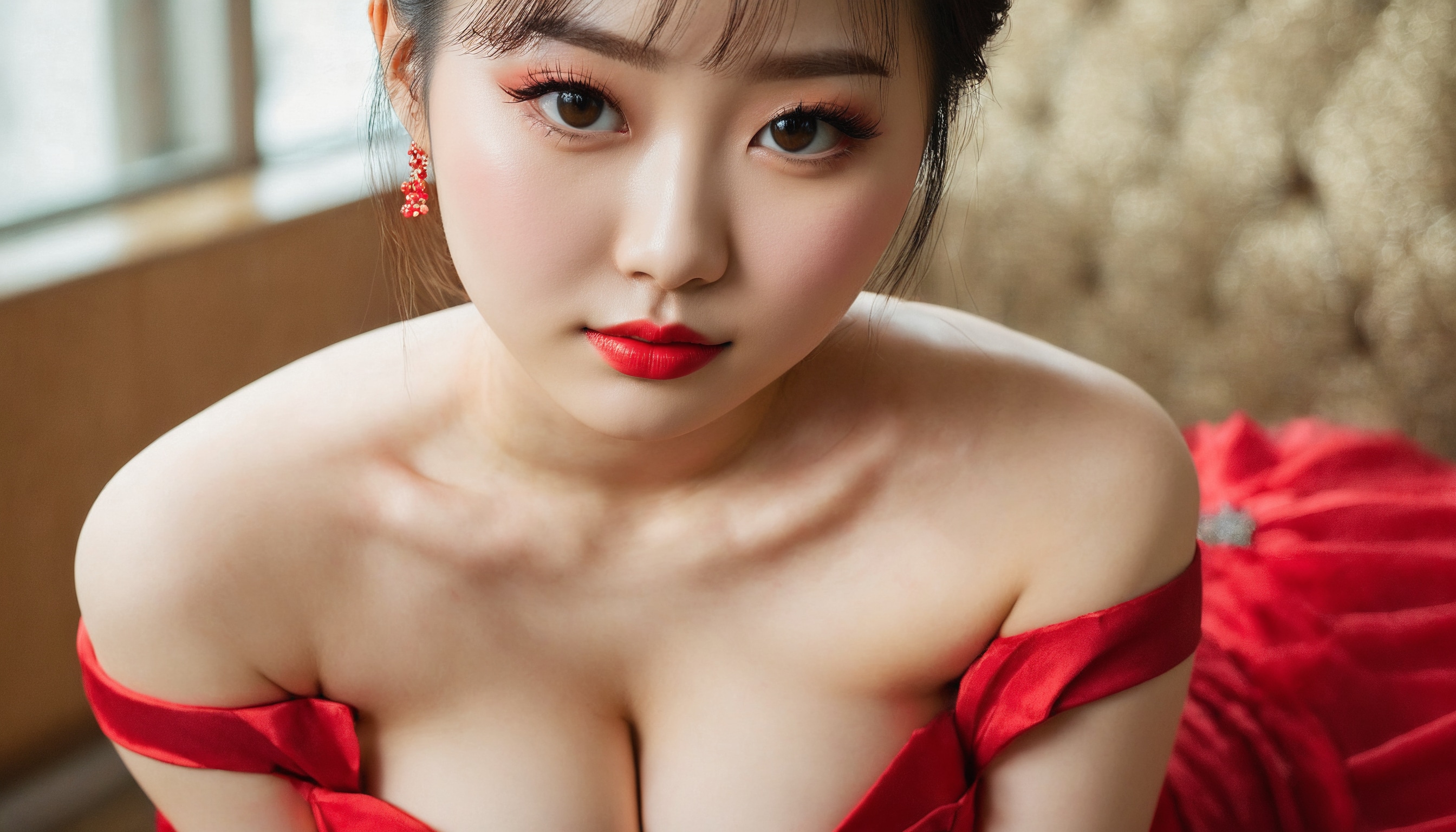 {"3": {"inputs": {"seed": 859162343436351, "steps": 32, "cfg": 7.53, "sampler_name": "dpmpp_2m", "scheduler": "karras", "denoise": 1.0, "model": ["27", 0], "positive": ["6", 0], "negative": ["7", 0], "latent_image": ["5", 0]}, "class_type": "KSampler"}, "4": {"inputs": {"ckpt_name": "juggernautxl.safetensors"}, "class_type": "CheckpointLoaderSimple"}, "5": {"inputs": {"width": 1344, "height": 768, "batch_size": 1}, "class_type": "EmptyLatentImage"}, "6": {"inputs": {"text": "24 year old girl, (chinese:0.98), (korean:1.02), (russian:0.96), (double eyelids:0.96), (cute:0.99), (beautiful eyes:0.95), (pale skin:0.97), (temptress:1.12), (seductive facial expression:1.10), (detailed face:1.05), (eyelashes:1.09), (seductive pose:0.98), (sexy lips:1.10), (blush:0.96), (in a seductive pose:1.12), (large perky breasts:0.95), (cleavage:1.08), (thigh gap:1.08), (wearing a low-cut red dress:1.08) at a ballroom, (textured skin:1.04), (detailed skin:1.09), (candid cinema:1.07), (skin fuzz:1.06), (film:1.00), (RAW:1.02), (portra:1.06), (soft lighting:1.05), (natural looking skin:1.06)", "clip": ["27", 1]}, "class_type": "CLIPTextEncode"}, "7": {"inputs": {"text": "(distorted:1.10), (bad hands:1.09), (worst quality:1.05), (open mouth:1.13), (low resolution:1.08), (watermark:1.14), (twisted:1.06)", "clip": ["27", 1]}, "class_type": "CLIPTextEncode"}, "8": {"inputs": {"samples": ["3", 0], "vae": ["4", 2]}, "class_type": "VAEDecode"}, "25": {"inputs": {"lora_name": "nudify_xl.safetensors", "strength_model": 0.23, "strength_clip": 0.22, "model": ["4", 0], "clip": ["4", 1]}, "class_type": "LoraLoader"}, "26": {"inputs": {"lora_name": "shirtlift_SDXL_v2.safetensors", "strength_model": 0.14, "strength_clip": 0.11, "model": ["25", 0], "clip": ["25", 1]}, "class_type": "LoraLoader"}, "27": {"inputs": {"lora_name": "PerfectEyesXL.safetensors", "strength_model": 0.12, "strength_clip": 0.03, "model": ["26", 0], "clip": ["26", 1]}, "class_type": "LoraLoader"}, "30": {"inputs": {"model_name": "4x_NMKD-Superscale-SP_178000_G.pth"}, "class_type": "UpscaleModelLoader"}, "31": {"inputs": {"upscale_model": ["30", 0], "image": ["8", 0]}, "class_type": "ImageUpscaleWithModel"}, "32": {"inputs": {"upscale_method": "lanczos", "scale_by": 0.5, "image": ["31", 0]}, "class_type": "ImageScaleBy"}, "33": {"inputs": {"pixels": ["32", 0], "vae": ["4", 2]}, "class_type": "VAEEncode"}, "34": {"inputs": {"seed": 859162343436351, "steps": 32, "cfg": 7.53, "sampler_name": "dpmpp_2m", "scheduler": "karras", "denoise": 0.3, "model": ["27", 0], "positive": ["6", 0], "negative": ["7", 0], "latent_image": ["33", 0]}, "class_type": "KSampler"}, "36": {"inputs": {"samples": ["34", 0], "vae": ["4", 2]}, "class_type": "VAEDecode"}, "39": {"inputs": {"filename_prefix": "comfyapi-1735460945588", "images": ["36", 0]}, "class_type": "SaveImage"}}