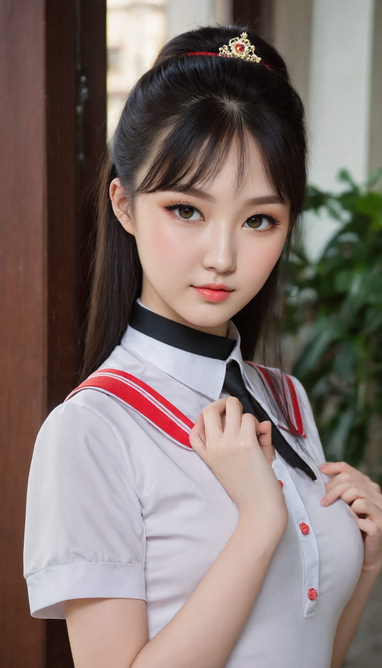 {"3": {"inputs": {"seed": 564802965564812, "steps": 32, "cfg": 5.14, "sampler_name": "dpmpp_2m", "scheduler": "karras", "denoise": 1.0, "model": ["27", 0], "positive": ["6", 0], "negative": ["7", 0], "latent_image": ["5", 0]}, "class_type": "KSampler"}, "4": {"inputs": {"ckpt_name": "juggernautXL_v8Rundiffusion.safetensors"}, "class_type": "CheckpointLoaderSimple"}, "5": {"inputs": {"width": 768, "height": 1344, "batch_size": 1}, "class_type": "EmptyLatentImage"}, "6": {"inputs": {"text": "20 year old girl, (ukrainian:1.09), (chinese:1.00), (temptress:0.97), (cute:1.00), (eyelashes:1.04), (sexy lips:0.96), (detailed face:1.10), (seductive pose:1.13), (beautiful eyes:1.02), (pale skin:1.09), (blush:0.96), (idol:0.99), (seductive facial expression:1.01), (slim:1.06), (in a seductive pose:0.98), (large perky breasts:0.99), (cleavage:1.01), (thigh gap:1.00), (school uniform:1.14), choker, busy street, (skin fuzz:1.03), (soft lighting:1.02), (textured skin:1.08), (RAW:1.09), (candid cinema:1.06), (natural looking skin:1.00), (detailed skin:1.02), (portra:1.09), (film:1.00)", "clip": ["27", 1]}, "class_type": "CLIPTextEncode"}, "7": {"inputs": {"text": "(bad hands:1.06), (twisted:1.13), (distorted:1.08), (worst quality:1.07), (low resolution:1.05), (open mouth:1.07), (watermark:1.10)", "clip": ["27", 1]}, "class_type": "CLIPTextEncode"}, "8": {"inputs": {"samples": ["3", 0], "vae": ["4", 2]}, "class_type": "VAEDecode"}, "25": {"inputs": {"lora_name": "nudify_xl.safetensors", "strength_model": 0.0, "strength_clip": 0.19, "model": ["4", 0], "clip": ["4", 1]}, "class_type": "LoraLoader"}, "26": {"inputs": {"lora_name": "shirtlift_SDXL_v2.safetensors", "strength_model": 0.1, "strength_clip": 0.18, "model": ["25", 0], "clip": ["25", 1]}, "class_type": "LoraLoader"}, "27": {"inputs": {"lora_name": "PerfectEyesXL.safetensors", "strength_model": 0.1, "strength_clip": 0.13, "model": ["26", 0], "clip": ["26", 1]}, "class_type": "LoraLoader"}, "30": {"inputs": {"model_name": "4x_NMKD-Superscale-SP_178000_G.pth"}, "class_type": "UpscaleModelLoader"}, "31": {"inputs": {"upscale_model": ["30", 0], "image": ["8", 0]}, "class_type": "ImageUpscaleWithModel"}, "32": {"inputs": {"upscale_method": "lanczos", "scale_by": 0.5, "image": ["31", 0]}, "class_type": "ImageScaleBy"}, "33": {"inputs": {"pixels": ["32", 0], "vae": ["4", 2]}, "class_type": "VAEEncode"}, "34": {"inputs": {"seed": 564802965564812, "steps": 32, "cfg": 5.14, "sampler_name": "dpmpp_2m", "scheduler": "karras", "denoise": 0.3, "model": ["27", 0], "positive": ["6", 0], "negative": ["7", 0], "latent_image": ["33", 0]}, "class_type": "KSampler"}, "36": {"inputs": {"samples": ["34", 0], "vae": ["4", 2]}, "class_type": "VAEDecode"}, "39": {"inputs": {"filename_prefix": "comfyapi-1707696324100", "images": ["36", 0]}, "class_type": "SaveImage"}}