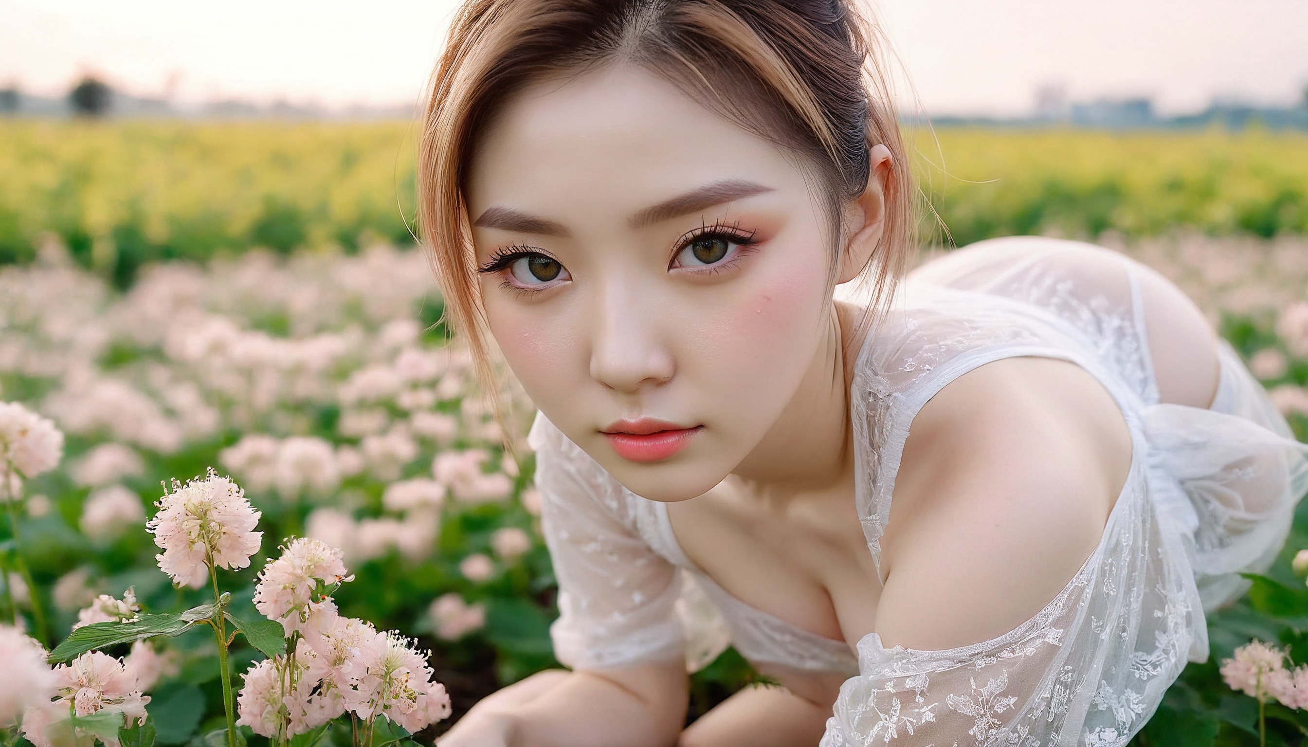 {"3": {"inputs": {"seed": 680195950410048, "steps": 32, "cfg": 7.26, "sampler_name": "dpmpp_2m", "scheduler": "karras", "denoise": 1.0, "model": ["27", 0], "positive": ["6", 0], "negative": ["7", 0], "latent_image": ["5", 0]}, "class_type": "KSampler"}, "4": {"inputs": {"ckpt_name": "juggernautxl.safetensors"}, "class_type": "CheckpointLoaderSimple"}, "5": {"inputs": {"width": 1344, "height": 768, "batch_size": 1}, "class_type": "EmptyLatentImage"}, "6": {"inputs": {"text": "23 year old girl, (korean:0.97), (russian:0.96), (irish:0.98), (ukrainian:0.96), (seductive facial expression:1.04), (pale skin:1.10), (detailed face:1.11), (double eyelids:1.11), (blush:1.09), (beautiful eyes:1.03), (slim:1.09), (idol:1.00), (cute:1.12), (temptress:0.95), (eyelashes:1.07), (seductive pose:0.95), (on all fours:0.95), (spreading ass cheeks:1.09), (from behind:1.05), (backboob:0.99), wearing (translucent clothes:1.06) on a flower field, (RAW:1.07), (portra:1.00), (soft lighting:1.02), (natural looking skin:1.01), (textured skin:1.07), (candid cinema:1.05), (film:1.03), (skin fuzz:1.00), (detailed skin:1.02)", "clip": ["27", 1]}, "class_type": "CLIPTextEncode"}, "7": {"inputs": {"text": "(worst quality:1.12), (bad hands:1.09), (distorted:1.12), (open mouth:1.13), (low resolution:1.05), (watermark:1.09), (twisted:1.05)", "clip": ["27", 1]}, "class_type": "CLIPTextEncode"}, "8": {"inputs": {"samples": ["3", 0], "vae": ["4", 2]}, "class_type": "VAEDecode"}, "25": {"inputs": {"lora_name": "nudify_xl.safetensors", "strength_model": 0.08, "strength_clip": 0.33, "model": ["4", 0], "clip": ["4", 1]}, "class_type": "LoraLoader"}, "26": {"inputs": {"lora_name": "shirtlift_SDXL_v2.safetensors", "strength_model": 0.19, "strength_clip": 0.1, "model": ["25", 0], "clip": ["25", 1]}, "class_type": "LoraLoader"}, "27": {"inputs": {"lora_name": "PerfectEyesXL.safetensors", "strength_model": 0.03, "strength_clip": 0.04, "model": ["26", 0], "clip": ["26", 1]}, "class_type": "LoraLoader"}, "30": {"inputs": {"model_name": "4x_NMKD-Superscale-SP_178000_G.pth"}, "class_type": "UpscaleModelLoader"}, "31": {"inputs": {"upscale_model": ["30", 0], "image": ["8", 0]}, "class_type": "ImageUpscaleWithModel"}, "32": {"inputs": {"upscale_method": "lanczos", "scale_by": 0.5, "image": ["31", 0]}, "class_type": "ImageScaleBy"}, "33": {"inputs": {"pixels": ["32", 0], "vae": ["4", 2]}, "class_type": "VAEEncode"}, "34": {"inputs": {"seed": 680195950410048, "steps": 32, "cfg": 7.26, "sampler_name": "dpmpp_2m", "scheduler": "karras", "denoise": 0.3, "model": ["27", 0], "positive": ["6", 0], "negative": ["7", 0], "latent_image": ["33", 0]}, "class_type": "KSampler"}, "36": {"inputs": {"samples": ["34", 0], "vae": ["4", 2]}, "class_type": "VAEDecode"}, "39": {"inputs": {"filename_prefix": "comfyapi-1718301820292", "images": ["36", 0]}, "class_type": "SaveImage"}}