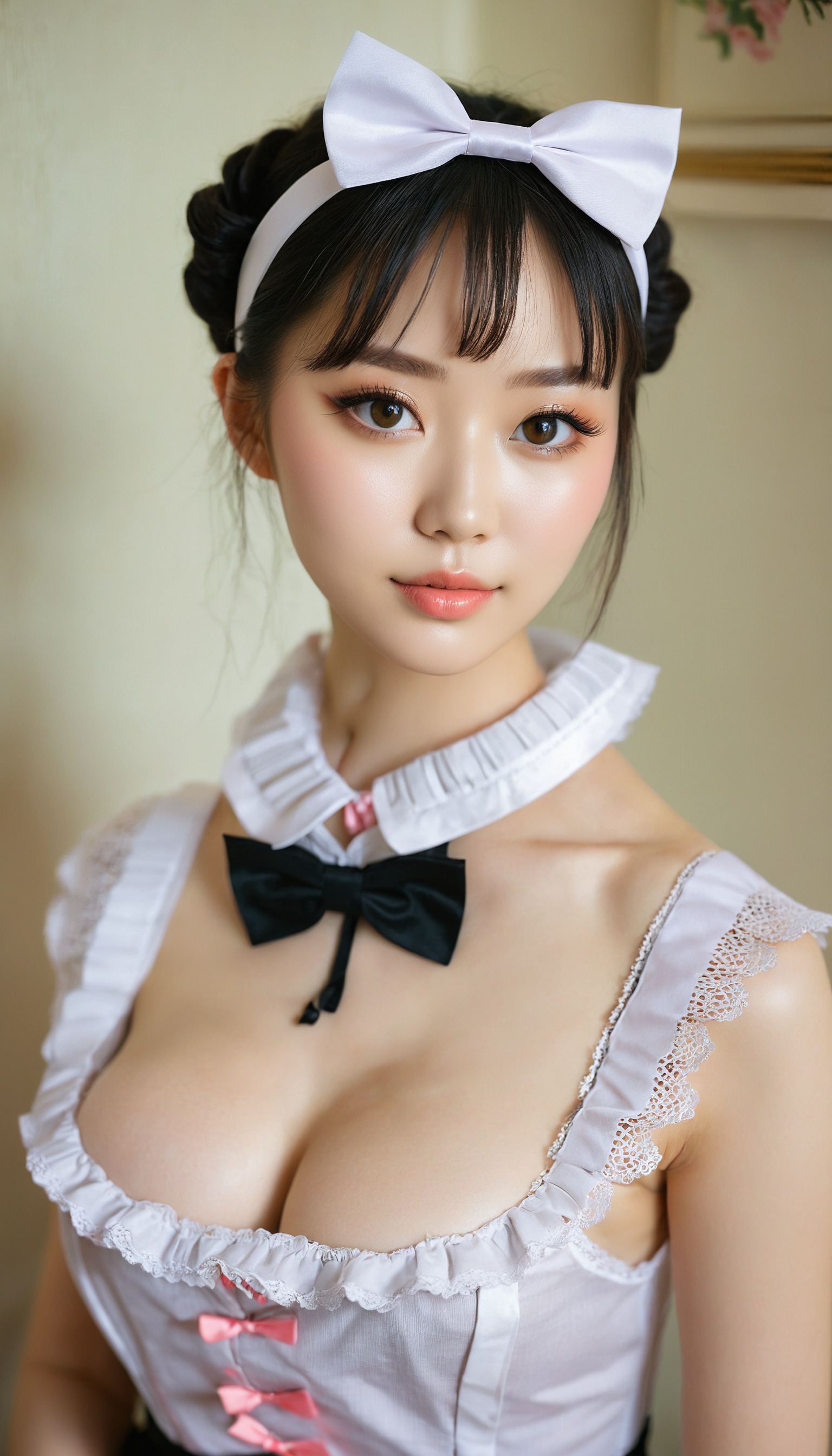 {"3": {"inputs": {"seed": 298404661428610, "steps": 32, "cfg": 7.95, "sampler_name": "dpmpp_2m", "scheduler": "karras", "denoise": 1.0, "model": ["27", 0], "positive": ["6", 0], "negative": ["7", 0], "latent_image": ["5", 0]}, "class_type": "KSampler"}, "4": {"inputs": {"ckpt_name": "juggernautxl.safetensors"}, "class_type": "CheckpointLoaderSimple"}, "5": {"inputs": {"width": 768, "height": 1344, "batch_size": 1}, "class_type": "EmptyLatentImage"}, "6": {"inputs": {"text": "25 year old girl, (chinese:1.08), (ukrainian:1.13), (irish:1.02), (beautiful eyes:0.96), (seductive facial expression:1.13), (eyelashes:1.09), (blush:0.95), (temptress:0.99), (seductive pose:1.09), (detailed face:1.12), (sexy lips:1.02), (double eyelids:1.14), (idol:1.01), (slim:1.04), (cute:1.04), (pale skin:1.00), (in a seductive pose:0.98), (large perky breasts:1.04), (cleavage:1.07), (thigh gap:1.00), in a (skimpy maid costume:1.10) working at a maid cafe, choker, bowtie, headband, pleated skirt, (soft lighting:1.04), (skin fuzz:1.02), (portra:1.05), (RAW:1.00), (natural looking skin:1.06), (textured skin:1.00), (film:1.00), (detailed skin:1.06), (candid cinema:1.01)", "clip": ["27", 1]}, "class_type": "CLIPTextEncode"}, "7": {"inputs": {"text": "(open mouth:1.13), (twisted:1.09), (distorted:1.07), (watermark:1.10), (worst quality:1.07), (bad hands:1.09), (low resolution:1.06)", "clip": ["27", 1]}, "class_type": "CLIPTextEncode"}, "8": {"inputs": {"samples": ["3", 0], "vae": ["4", 2]}, "class_type": "VAEDecode"}, "25": {"inputs": {"lora_name": "nudify_xl.safetensors", "strength_model": 0.01, "strength_clip": 0.04, "model": ["4", 0], "clip": ["4", 1]}, "class_type": "LoraLoader"}, "26": {"inputs": {"lora_name": "shirtlift_SDXL_v2.safetensors", "strength_model": 0.01, "strength_clip": 0.18, "model": ["25", 0], "clip": ["25", 1]}, "class_type": "LoraLoader"}, "27": {"inputs": {"lora_name": "PerfectEyesXL.safetensors", "strength_model": 0.03, "strength_clip": 0.09, "model": ["26", 0], "clip": ["26", 1]}, "class_type": "LoraLoader"}, "30": {"inputs": {"model_name": "4x_NMKD-Superscale-SP_178000_G.pth"}, "class_type": "UpscaleModelLoader"}, "31": {"inputs": {"upscale_model": ["30", 0], "image": ["8", 0]}, "class_type": "ImageUpscaleWithModel"}, "32": {"inputs": {"upscale_method": "lanczos", "scale_by": 0.5, "image": ["31", 0]}, "class_type": "ImageScaleBy"}, "33": {"inputs": {"pixels": ["32", 0], "vae": ["4", 2]}, "class_type": "VAEEncode"}, "34": {"inputs": {"seed": 298404661428610, "steps": 32, "cfg": 7.95, "sampler_name": "dpmpp_2m", "scheduler": "karras", "denoise": 0.3, "model": ["27", 0], "positive": ["6", 0], "negative": ["7", 0], "latent_image": ["33", 0]}, "class_type": "KSampler"}, "36": {"inputs": {"samples": ["34", 0], "vae": ["4", 2]}, "class_type": "VAEDecode"}, "39": {"inputs": {"filename_prefix": "comfyapi-1716574730002", "images": ["36", 0]}, "class_type": "SaveImage"}}