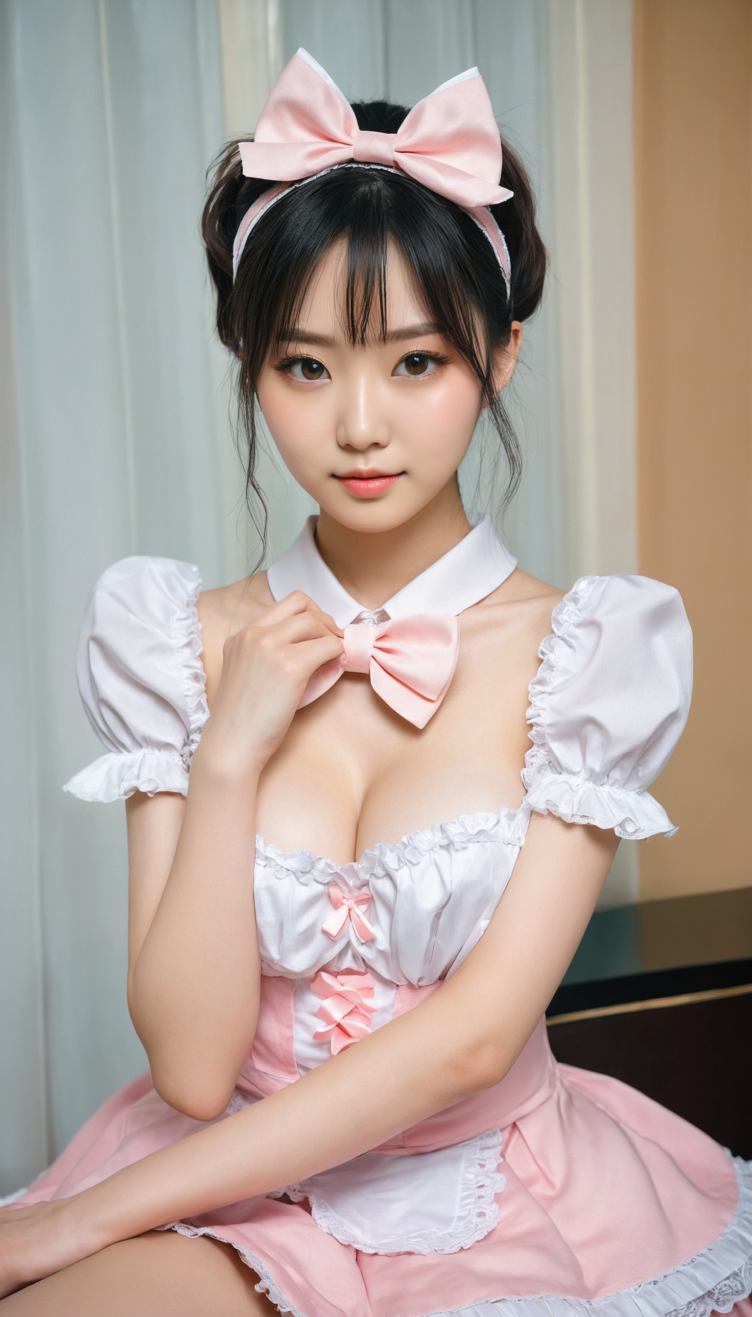 {"3": {"inputs": {"seed": 735863039558905, "steps": 32, "cfg": 6.31, "sampler_name": "dpmpp_2m", "scheduler": "karras", "denoise": 1.0, "model": ["27", 0], "positive": ["6", 0], "negative": ["7", 0], "latent_image": ["5", 0]}, "class_type": "KSampler"}, "4": {"inputs": {"ckpt_name": "juggernautxl.safetensors"}, "class_type": "CheckpointLoaderSimple"}, "5": {"inputs": {"width": 768, "height": 1344, "batch_size": 1}, "class_type": "EmptyLatentImage"}, "6": {"inputs": {"text": "22 year old girl, (japanese:0.97), (ukrainian:1.07), (chinese:1.11), (korean:1.05), (seductive facial expression:1.11), (slim:1.08), (detailed face:1.00), (blush:1.00), (eyelashes:1.01), (idol:1.12), (beautiful eyes:1.05), (cute:0.99), (seductive pose:1.10), (pale skin:0.99), (temptress:0.97), (double eyelids:0.99), (in a seductive pose:0.98), (large perky breasts:0.99), (cleavage:1.00), (thigh gap:0.96), in a (skimpy maid costume:1.14) working at a maid cafe, choker, bowtie, headband, pleated skirt, (natural looking skin:1.00), (portra:1.00), (RAW:1.01), (soft lighting:1.09), (textured skin:1.03), (film:1.03), (detailed skin:1.01), (candid cinema:1.02), (skin fuzz:1.00)", "clip": ["27", 1]}, "class_type": "CLIPTextEncode"}, "7": {"inputs": {"text": "(open mouth:1.11), (distorted:1.13), (bad hands:1.09), (watermark:1.05), (worst quality:1.13), (low resolution:1.12), (twisted:1.06)", "clip": ["27", 1]}, "class_type": "CLIPTextEncode"}, "8": {"inputs": {"samples": ["3", 0], "vae": ["4", 2]}, "class_type": "VAEDecode"}, "25": {"inputs": {"lora_name": "nudify_xl.safetensors", "strength_model": 0.14, "strength_clip": 0.1, "model": ["4", 0], "clip": ["4", 1]}, "class_type": "LoraLoader"}, "26": {"inputs": {"lora_name": "shirtlift_SDXL_v2.safetensors", "strength_model": 0.18, "strength_clip": 0.14, "model": ["25", 0], "clip": ["25", 1]}, "class_type": "LoraLoader"}, "27": {"inputs": {"lora_name": "PerfectEyesXL.safetensors", "strength_model": 0.06, "strength_clip": 0.11, "model": ["26", 0], "clip": ["26", 1]}, "class_type": "LoraLoader"}, "30": {"inputs": {"model_name": "4x_NMKD-Superscale-SP_178000_G.pth"}, "class_type": "UpscaleModelLoader"}, "31": {"inputs": {"upscale_model": ["30", 0], "image": ["8", 0]}, "class_type": "ImageUpscaleWithModel"}, "32": {"inputs": {"upscale_method": "lanczos", "scale_by": 0.5, "image": ["31", 0]}, "class_type": "ImageScaleBy"}, "33": {"inputs": {"pixels": ["32", 0], "vae": ["4", 2]}, "class_type": "VAEEncode"}, "34": {"inputs": {"seed": 735863039558905, "steps": 32, "cfg": 6.31, "sampler_name": "dpmpp_2m", "scheduler": "karras", "denoise": 0.3, "model": ["27", 0], "positive": ["6", 0], "negative": ["7", 0], "latent_image": ["33", 0]}, "class_type": "KSampler"}, "36": {"inputs": {"samples": ["34", 0], "vae": ["4", 2]}, "class_type": "VAEDecode"}, "39": {"inputs": {"filename_prefix": "comfyapi-1733084951246", "images": ["36", 0]}, "class_type": "SaveImage"}}