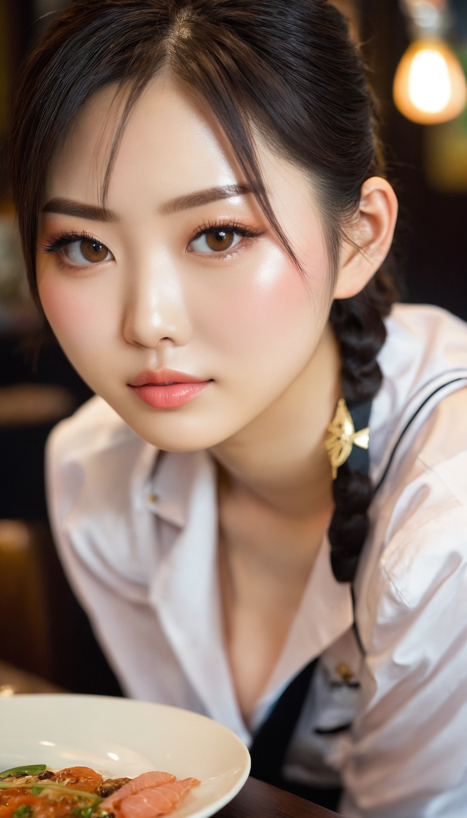 {"3": {"inputs": {"seed": 553216683970324, "steps": 64, "cfg": 7.24, "sampler_name": "dpmpp_2m", "scheduler": "karras", "denoise": 1.0, "model": ["27", 0], "positive": ["6", 0], "negative": ["7", 0], "latent_image": ["5", 0]}, "class_type": "KSampler"}, "4": {"inputs": {"ckpt_name": "juggernautxl.safetensors"}, "class_type": "CheckpointLoaderSimple"}, "5": {"inputs": {"width": 768, "height": 1344, "batch_size": 1}, "class_type": "EmptyLatentImage"}, "6": {"inputs": {"text": "25 year old girl, (japanese:0.96), (chinese:1.05), (irish:1.10), (taiwanese:1.04), (blush:1.14), (detailed face:1.12), (seductive facial expression:1.03), (eyelashes:1.01), (seductive pose:0.98), (beautiful eyes:1.14), (sexy lips:1.13), (pale skin:0.96), (cute:1.01), (double eyelids:1.11), (slim:1.00), (temptress:1.03), (idol:1.03), (on all fours:1.13), (spreading ass cheeks:0.98), (from behind:0.95), (backboob:0.96), (a waitress in uniform:1.06) working at a restaurant, (detailed skin:1.05), (portra:1.02), (film:1.00), (candid cinema:1.07), (soft lighting:1.09), (natural looking skin:1.08), (RAW:1.07), (textured skin:1.01), (skin fuzz:1.08)", "clip": ["27", 1]}, "class_type": "CLIPTextEncode"}, "7": {"inputs": {"text": "(watermark:1.07), (twisted:1.14), (open mouth:1.12), (distorted:1.08), (low resolution:1.11), (worst quality:1.14)", "clip": ["27", 1]}, "class_type": "CLIPTextEncode"}, "8": {"inputs": {"samples": ["3", 0], "vae": ["4", 2]}, "class_type": "VAEDecode"}, "25": {"inputs": {"lora_name": "nudify_xl.safetensors", "strength_model": 0.12, "strength_clip": 0.03, "model": ["4", 0], "clip": ["4", 1]}, "class_type": "LoraLoader"}, "26": {"inputs": {"lora_name": "shirtlift_SDXL_v2.safetensors", "strength_model": 0.0, "strength_clip": 0.03, "model": ["25", 0], "clip": ["25", 1]}, "class_type": "LoraLoader"}, "27": {"inputs": {"lora_name": "PerfectEyesXL.safetensors", "strength_model": 0.03, "strength_clip": 0.15, "model": ["26", 0], "clip": ["26", 1]}, "class_type": "LoraLoader"}, "30": {"inputs": {"model_name": "4x_NMKD-Superscale-SP_178000_G.pth"}, "class_type": "UpscaleModelLoader"}, "31": {"inputs": {"upscale_model": ["30", 0], "image": ["8", 0]}, "class_type": "ImageUpscaleWithModel"}, "32": {"inputs": {"upscale_method": "lanczos", "scale_by": 0.5, "image": ["31", 0]}, "class_type": "ImageScaleBy"}, "33": {"inputs": {"pixels": ["32", 0], "vae": ["4", 2]}, "class_type": "VAEEncode"}, "34": {"inputs": {"seed": 553216683970324, "steps": 64, "cfg": 7.24, "sampler_name": "dpmpp_2m", "scheduler": "karras", "denoise": 0.3, "model": ["27", 0], "positive": ["6", 0], "negative": ["7", 0], "latent_image": ["33", 0]}, "class_type": "KSampler"}, "36": {"inputs": {"samples": ["34", 0], "vae": ["4", 2]}, "class_type": "VAEDecode"}, "39": {"inputs": {"filename_prefix": "comfyapi-1715934188472", "images": ["36", 0]}, "class_type": "SaveImage"}}