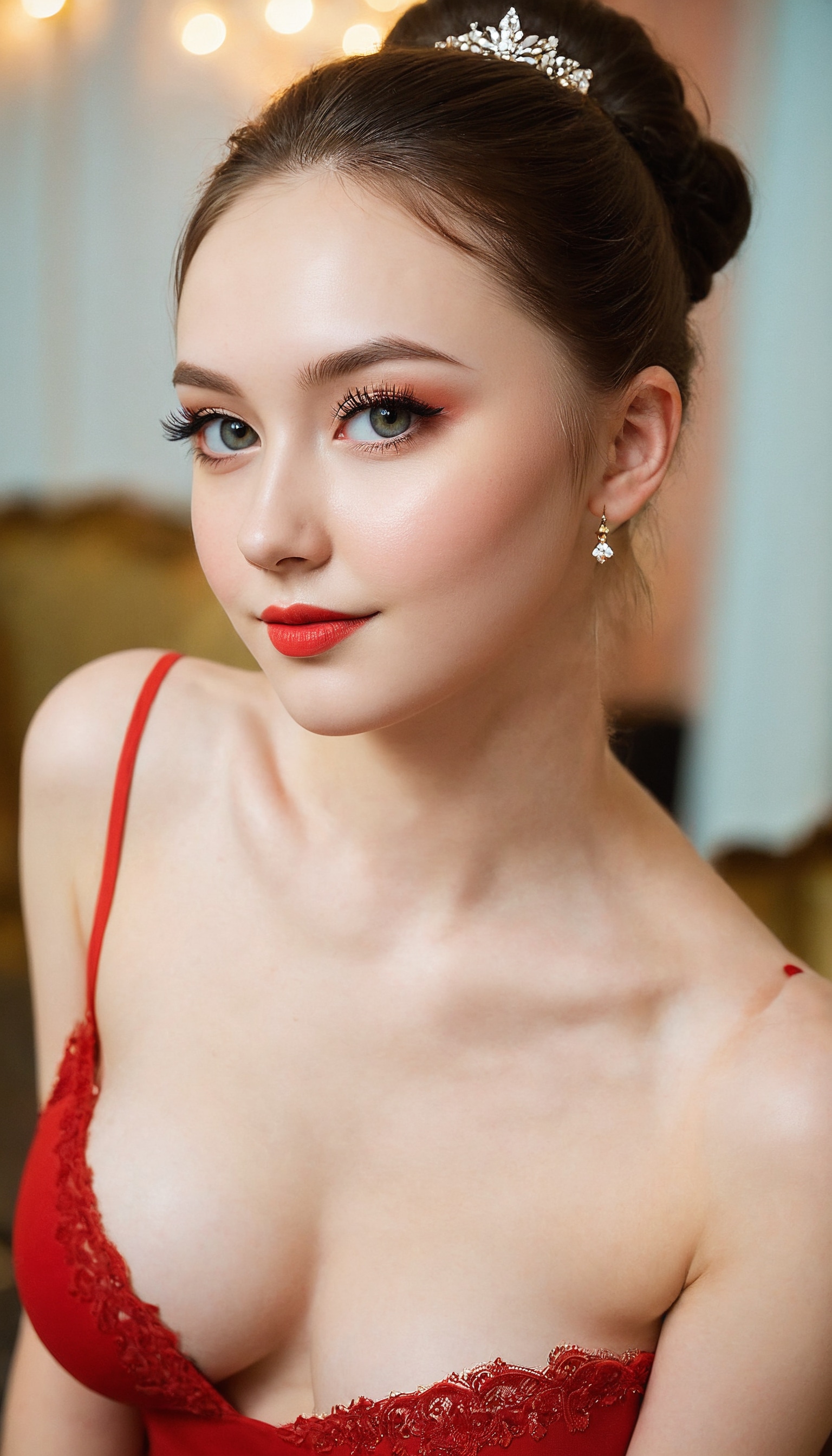 {"3": {"inputs": {"seed": 723456765700208, "steps": 64, "cfg": 6.63, "sampler_name": "dpmpp_2m", "scheduler": "karras", "denoise": 1.0, "model": ["27", 0], "positive": ["6", 0], "negative": ["7", 0], "latent_image": ["5", 0]}, "class_type": "KSampler"}, "4": {"inputs": {"ckpt_name": "juggernautXL_v8Rundiffusion.safetensors"}, "class_type": "CheckpointLoaderSimple"}, "5": {"inputs": {"width": 768, "height": 1344, "batch_size": 1}, "class_type": "EmptyLatentImage"}, "6": {"inputs": {"text": "20 year old girl, (russian:1.07), (ukrainian:1.12), (eyelashes:1.08), (seductive pose:0.95), (pale skin:0.98), (temptress:1.01), (sexy lips:0.98), (idol:1.04), (seductive facial expression:1.06), (cute:1.11), (double eyelids:1.09), (slim:1.14), (beautiful eyes:1.13), (detailed face:1.01), (perky ass:0.96), (exposed ass:1.09), (looking back:1.08), (sexy ass:1.04), (thigh gap:1.09), (wearing a low-cut red dress:0.96) at a ballroom, (detailed skin:1.06), (skin fuzz:1.09), (textured skin:1.00), (film:1.05), (portra:1.07), (RAW:1.02), (soft lighting:1.00), (candid cinema:1.08), (natural looking skin:1.07)", "clip": ["27", 1]}, "class_type": "CLIPTextEncode"}, "7": {"inputs": {"text": "(open mouth:1.14), (distorted:1.06), (worst quality:1.09), (twisted:1.10), (low resolution:1.06), (watermark:1.06), (bad hands:1.09)", "clip": ["27", 1]}, "class_type": "CLIPTextEncode"}, "8": {"inputs": {"samples": ["3", 0], "vae": ["4", 2]}, "class_type": "VAEDecode"}, "25": {"inputs": {"lora_name": "nudify_xl.safetensors", "strength_model": 0.01, "strength_clip": 0.38, "model": ["4", 0], "clip": ["4", 1]}, "class_type": "LoraLoader"}, "26": {"inputs": {"lora_name": "shirtlift_SDXL_v2.safetensors", "strength_model": 0.15, "strength_clip": 0.12, "model": ["25", 0], "clip": ["25", 1]}, "class_type": "LoraLoader"}, "27": {"inputs": {"lora_name": "PerfectEyesXL.safetensors", "strength_model": 0.15, "strength_clip": 0.15, "model": ["26", 0], "clip": ["26", 1]}, "class_type": "LoraLoader"}, "30": {"inputs": {"model_name": "4x_NMKD-Superscale-SP_178000_G.pth"}, "class_type": "UpscaleModelLoader"}, "31": {"inputs": {"upscale_model": ["30", 0], "image": ["8", 0]}, "class_type": "ImageUpscaleWithModel"}, "32": {"inputs": {"upscale_method": "lanczos", "scale_by": 0.5, "image": ["31", 0]}, "class_type": "ImageScaleBy"}, "33": {"inputs": {"pixels": ["32", 0], "vae": ["4", 2]}, "class_type": "VAEEncode"}, "34": {"inputs": {"seed": 723456765700208, "steps": 64, "cfg": 6.63, "sampler_name": "dpmpp_2m", "scheduler": "karras", "denoise": 0.3, "model": ["27", 0], "positive": ["6", 0], "negative": ["7", 0], "latent_image": ["33", 0]}, "class_type": "KSampler"}, "36": {"inputs": {"samples": ["34", 0], "vae": ["4", 2]}, "class_type": "VAEDecode"}, "39": {"inputs": {"filename_prefix": "comfyapi-1707865329633", "images": ["36", 0]}, "class_type": "SaveImage"}}