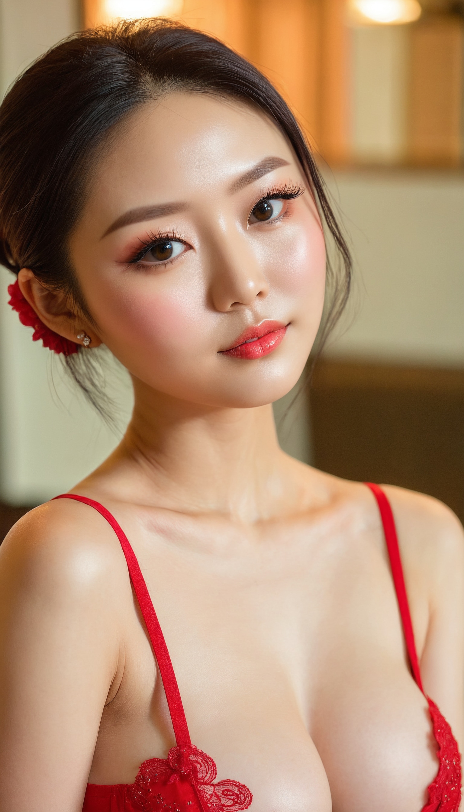 {"3": {"inputs": {"seed": 367087481132787, "steps": 64, "cfg": 5.71, "sampler_name": "dpmpp_2m", "scheduler": "karras", "denoise": 1.0, "model": ["27", 0], "positive": ["6", 0], "negative": ["7", 0], "latent_image": ["5", 0]}, "class_type": "KSampler"}, "4": {"inputs": {"ckpt_name": "juggernautxl.safetensors"}, "class_type": "CheckpointLoaderSimple"}, "5": {"inputs": {"width": 768, "height": 1344, "batch_size": 1}, "class_type": "EmptyLatentImage"}, "6": {"inputs": {"text": "28 year old girl, (taiwanese:1.06), (seductive facial expression:1.04), (seductive pose:1.10), (blush:1.04), (cute:0.99), (idol:1.08), (slim:0.97), (detailed face:1.09), (sexy lips:1.04), (beautiful eyes:1.14), (eyelashes:1.14), (temptress:0.98), (double eyelids:1.08), (pale skin:0.99), (in a seductive pose:1.08), (large perky breasts:1.00), (cleavage:1.00), (thigh gap:1.12), (wearing a low-cut red dress:0.95) at a ballroom, (skin fuzz:1.05), (candid cinema:1.07), (detailed skin:1.00), (soft lighting:1.04), (RAW:1.08), (film:1.08), (textured skin:1.05), (natural looking skin:1.00)", "clip": ["27", 1]}, "class_type": "CLIPTextEncode"}, "7": {"inputs": {"text": "(distorted:1.08), (low resolution:1.06), (twisted:1.13), (worst quality:1.14), (open mouth:1.06), (watermark:1.07), (bad hands:1.12)", "clip": ["27", 1]}, "class_type": "CLIPTextEncode"}, "8": {"inputs": {"samples": ["3", 0], "vae": ["4", 2]}, "class_type": "VAEDecode"}, "25": {"inputs": {"lora_name": "nudify_xl.safetensors", "strength_model": 0.32, "strength_clip": 0.32, "model": ["4", 0], "clip": ["4", 1]}, "class_type": "LoraLoader"}, "26": {"inputs": {"lora_name": "shirtlift_SDXL_v2.safetensors", "strength_model": 0.07, "strength_clip": 0.12, "model": ["25", 0], "clip": ["25", 1]}, "class_type": "LoraLoader"}, "27": {"inputs": {"lora_name": "PerfectEyesXL.safetensors", "strength_model": 0.19, "strength_clip": 0.16, "model": ["26", 0], "clip": ["26", 1]}, "class_type": "LoraLoader"}, "30": {"inputs": {"model_name": "4x_NMKD-Superscale-SP_178000_G.pth"}, "class_type": "UpscaleModelLoader"}, "31": {"inputs": {"upscale_model": ["30", 0], "image": ["8", 0]}, "class_type": "ImageUpscaleWithModel"}, "32": {"inputs": {"upscale_method": "lanczos", "scale_by": 0.5, "image": ["31", 0]}, "class_type": "ImageScaleBy"}, "33": {"inputs": {"pixels": ["32", 0], "vae": ["4", 2]}, "class_type": "VAEEncode"}, "34": {"inputs": {"seed": 367087481132787, "steps": 64, "cfg": 5.71, "sampler_name": "dpmpp_2m", "scheduler": "karras", "denoise": 0.3, "model": ["27", 0], "positive": ["6", 0], "negative": ["7", 0], "latent_image": ["33", 0]}, "class_type": "KSampler"}, "36": {"inputs": {"samples": ["34", 0], "vae": ["4", 2]}, "class_type": "VAEDecode"}, "39": {"inputs": {"filename_prefix": "comfyapi-1732338378571", "images": ["36", 0]}, "class_type": "SaveImage"}}