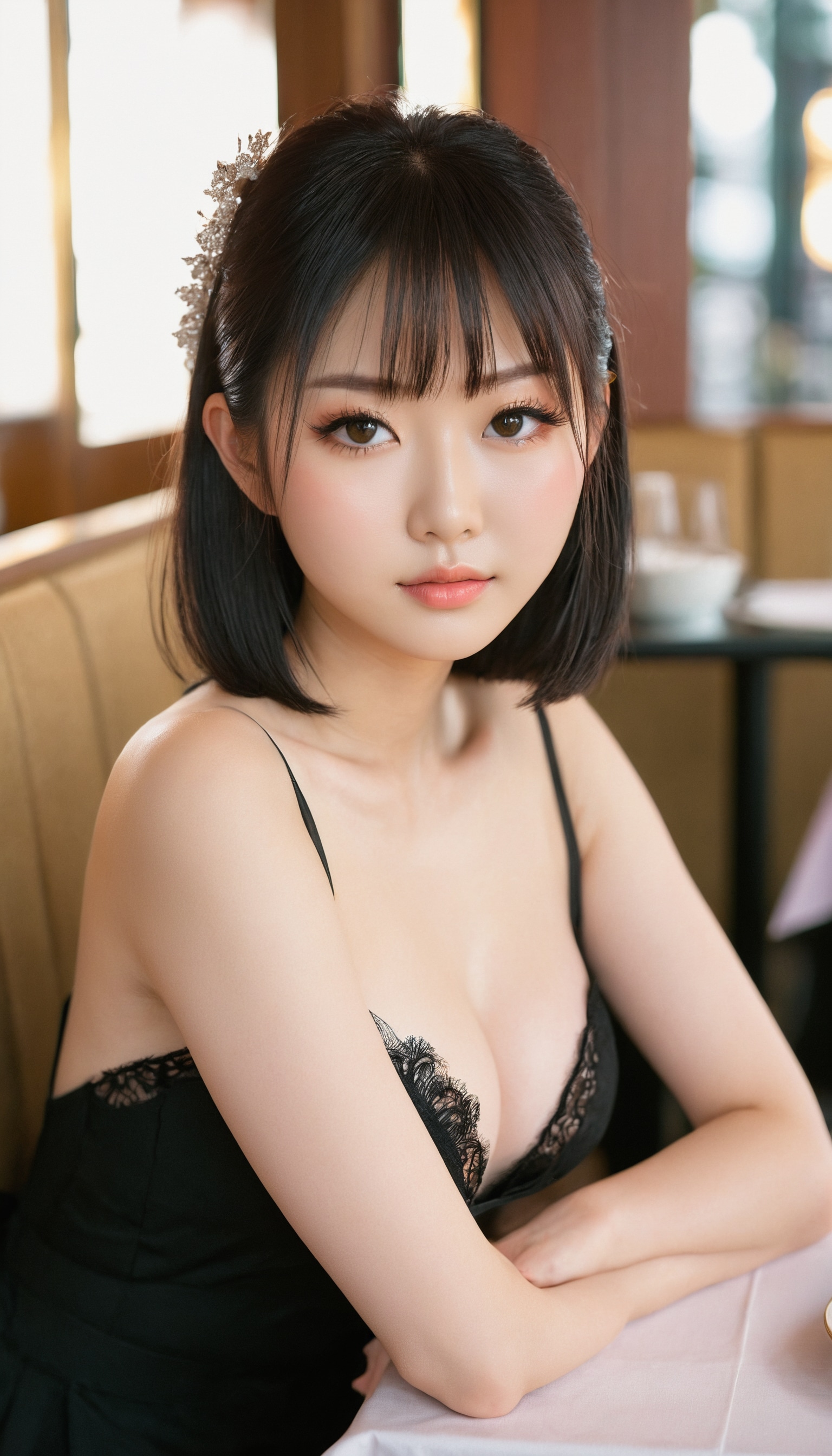 {"3": {"inputs": {"seed": 101400291105845, "steps": 32, "cfg": 7.45, "sampler_name": "dpmpp_2m", "scheduler": "karras", "denoise": 1.0, "model": ["27", 0], "positive": ["6", 0], "negative": ["7", 0], "latent_image": ["5", 0]}, "class_type": "KSampler"}, "4": {"inputs": {"ckpt_name": "juggernautxl.safetensors"}, "class_type": "CheckpointLoaderSimple"}, "5": {"inputs": {"width": 768, "height": 1344, "batch_size": 1}, "class_type": "EmptyLatentImage"}, "6": {"inputs": {"text": "19 year old girl, (japanese:1.06), (beautiful eyes:0.96), (idol:1.10), (seductive facial expression:1.02), (slim:0.97), (blush:1.11), (pale skin:1.02), (sexy lips:0.95), (temptress:1.09), (detailed face:1.05), (seductive pose:1.09), (eyelashes:1.13), (cute:1.14), (in a seductive pose:1.12), (large perky breasts:1.04), (cleavage:1.09), (thigh gap:1.02), (wearing a little black dress:1.02) at a fine dining restaurant, (candid cinema:1.02), (natural looking skin:1.07), (skin fuzz:1.02), (portra:1.05), (film:1.01), (RAW:1.01), (soft lighting:1.01), (textured skin:1.05), (detailed skin:1.09)", "clip": ["27", 1]}, "class_type": "CLIPTextEncode"}, "7": {"inputs": {"text": "(watermark:1.14), (twisted:1.14), (low resolution:1.14), (worst quality:1.13), (open mouth:1.08), (distorted:1.14), (bad hands:1.05)", "clip": ["27", 1]}, "class_type": "CLIPTextEncode"}, "8": {"inputs": {"samples": ["3", 0], "vae": ["4", 2]}, "class_type": "VAEDecode"}, "25": {"inputs": {"lora_name": "nudify_xl.safetensors", "strength_model": 0.06, "strength_clip": 0.09, "model": ["4", 0], "clip": ["4", 1]}, "class_type": "LoraLoader"}, "26": {"inputs": {"lora_name": "shirtlift_SDXL_v2.safetensors", "strength_model": 0.02, "strength_clip": 0.19, "model": ["25", 0], "clip": ["25", 1]}, "class_type": "LoraLoader"}, "27": {"inputs": {"lora_name": "PerfectEyesXL.safetensors", "strength_model": 0.01, "strength_clip": 0.02, "model": ["26", 0], "clip": ["26", 1]}, "class_type": "LoraLoader"}, "30": {"inputs": {"model_name": "4x_NMKD-Superscale-SP_178000_G.pth"}, "class_type": "UpscaleModelLoader"}, "31": {"inputs": {"upscale_model": ["30", 0], "image": ["8", 0]}, "class_type": "ImageUpscaleWithModel"}, "32": {"inputs": {"upscale_method": "lanczos", "scale_by": 0.5, "image": ["31", 0]}, "class_type": "ImageScaleBy"}, "33": {"inputs": {"pixels": ["32", 0], "vae": ["4", 2]}, "class_type": "VAEEncode"}, "34": {"inputs": {"seed": 101400291105845, "steps": 32, "cfg": 7.45, "sampler_name": "dpmpp_2m", "scheduler": "karras", "denoise": 0.3, "model": ["27", 0], "positive": ["6", 0], "negative": ["7", 0], "latent_image": ["33", 0]}, "class_type": "KSampler"}, "36": {"inputs": {"samples": ["34", 0], "vae": ["4", 2]}, "class_type": "VAEDecode"}, "39": {"inputs": {"filename_prefix": "comfyapi-1725116423168", "images": ["36", 0]}, "class_type": "SaveImage"}}