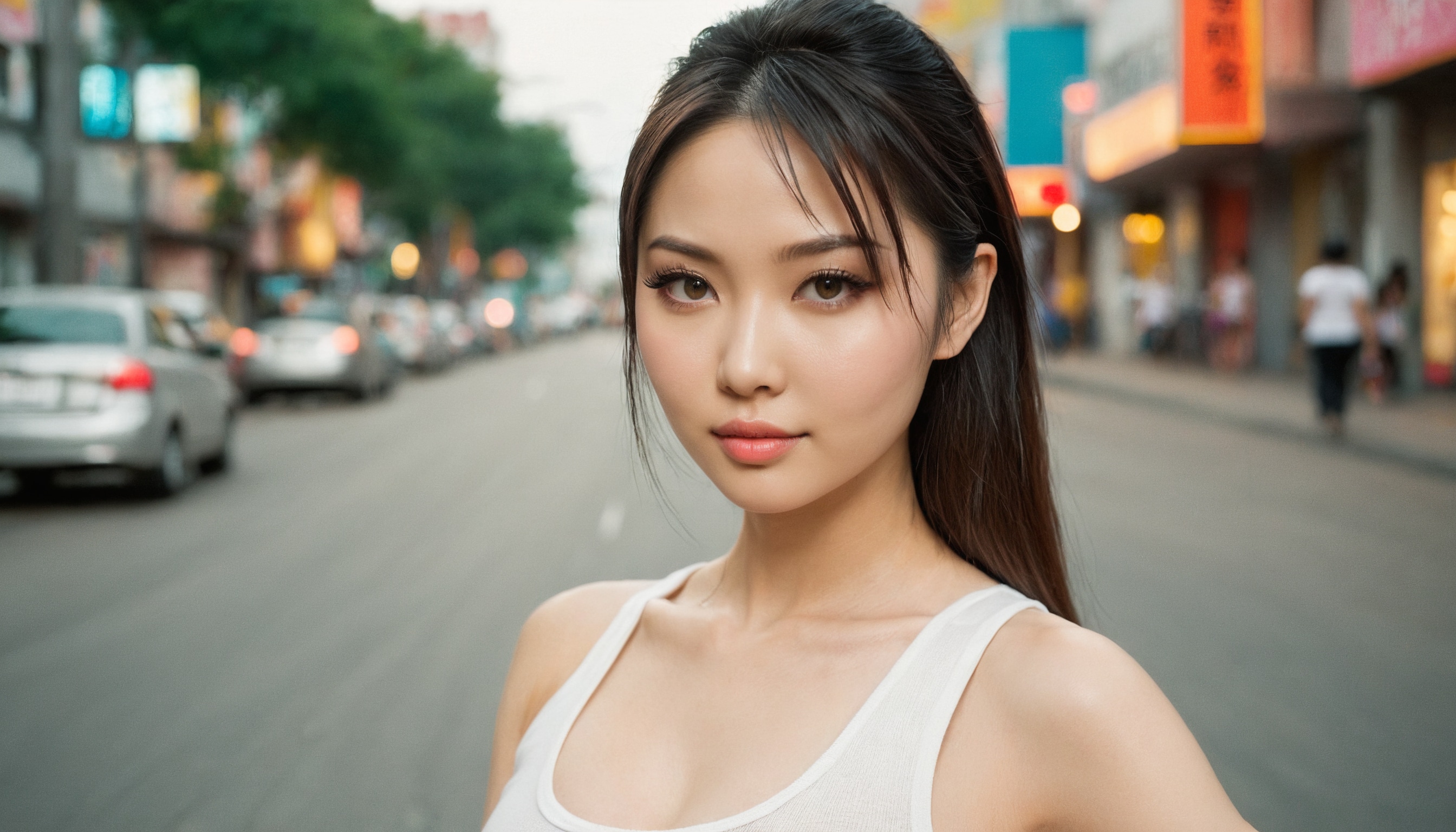 {"3": {"inputs": {"seed": 157550303654519, "steps": 64, "cfg": 6.73, "sampler_name": "dpmpp_2m", "scheduler": "karras", "denoise": 1.0, "model": ["27", 0], "positive": ["6", 0], "negative": ["7", 0], "latent_image": ["5", 0]}, "class_type": "KSampler"}, "4": {"inputs": {"ckpt_name": "juggernautxl.safetensors"}, "class_type": "CheckpointLoaderSimple"}, "5": {"inputs": {"width": 1344, "height": 768, "batch_size": 1}, "class_type": "EmptyLatentImage"}, "6": {"inputs": {"text": "28 year old girl, (taiwanese:1.01), (ukrainian:1.12), (russian:1.03), (sexy lips:1.01), (slim:1.01), (idol:1.04), (cute:1.04), (seductive facial expression:1.02), (temptress:1.05), (pale skin:0.95), (beautiful eyes:1.09), (eyelashes:1.11), (detailed face:1.10), (double eyelids:1.07), (blush:1.09), (seductive pose:1.08), (perky ass:0.95), (exposed ass:1.04), (looking back:0.98), (sexy ass:1.13), (thigh gap:1.01), (white tanktop:1.00), busy street, (textured skin:1.05), (film:1.07), (natural looking skin:1.02), (skin fuzz:1.03), (soft lighting:1.05), (portra:1.01), (RAW:1.09), (detailed skin:1.04), (candid cinema:1.03)", "clip": ["27", 1]}, "class_type": "CLIPTextEncode"}, "7": {"inputs": {"text": "(open mouth:1.14), (low resolution:1.13), (bad hands:1.07), (watermark:1.13), (worst quality:1.10), (distorted:1.08), (twisted:1.08)", "clip": ["27", 1]}, "class_type": "CLIPTextEncode"}, "8": {"inputs": {"samples": ["3", 0], "vae": ["4", 2]}, "class_type": "VAEDecode"}, "25": {"inputs": {"lora_name": "nudify_xl.safetensors", "strength_model": 0.24, "strength_clip": 0.08, "model": ["4", 0], "clip": ["4", 1]}, "class_type": "LoraLoader"}, "26": {"inputs": {"lora_name": "shirtlift_SDXL_v2.safetensors", "strength_model": 0.11, "strength_clip": 0.12, "model": ["25", 0], "clip": ["25", 1]}, "class_type": "LoraLoader"}, "27": {"inputs": {"lora_name": "PerfectEyesXL.safetensors", "strength_model": 0.1, "strength_clip": 0.15, "model": ["26", 0], "clip": ["26", 1]}, "class_type": "LoraLoader"}, "30": {"inputs": {"model_name": "4x_NMKD-Superscale-SP_178000_G.pth"}, "class_type": "UpscaleModelLoader"}, "31": {"inputs": {"upscale_model": ["30", 0], "image": ["8", 0]}, "class_type": "ImageUpscaleWithModel"}, "32": {"inputs": {"upscale_method": "lanczos", "scale_by": 0.5, "image": ["31", 0]}, "class_type": "ImageScaleBy"}, "33": {"inputs": {"pixels": ["32", 0], "vae": ["4", 2]}, "class_type": "VAEEncode"}, "34": {"inputs": {"seed": 157550303654519, "steps": 64, "cfg": 6.73, "sampler_name": "dpmpp_2m", "scheduler": "karras", "denoise": 0.3, "model": ["27", 0], "positive": ["6", 0], "negative": ["7", 0], "latent_image": ["33", 0]}, "class_type": "KSampler"}, "36": {"inputs": {"samples": ["34", 0], "vae": ["4", 2]}, "class_type": "VAEDecode"}, "39": {"inputs": {"filename_prefix": "comfyapi-1727068652377", "images": ["36", 0]}, "class_type": "SaveImage"}}