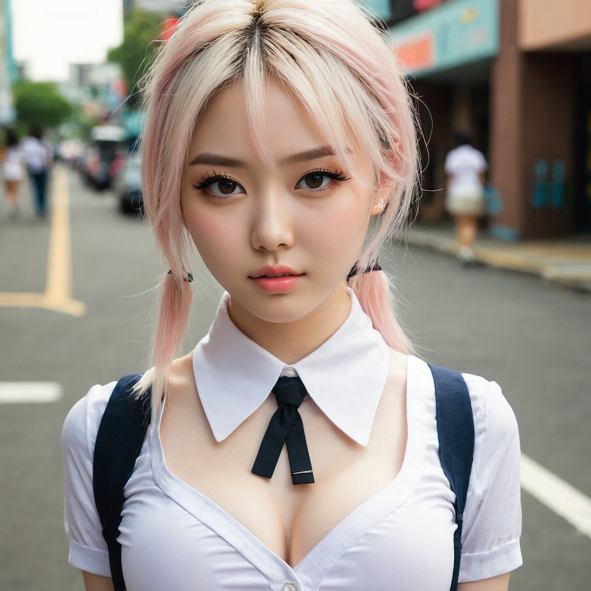 {"3": {"inputs": {"seed": 415530943244397, "steps": 64, "cfg": 7.56, "sampler_name": "dpmpp_2m", "scheduler": "karras", "denoise": 1.0, "model": ["27", 0], "positive": ["6", 0], "negative": ["7", 0], "latent_image": ["5", 0]}, "class_type": "KSampler"}, "4": {"inputs": {"ckpt_name": "juggernautxl.safetensors"}, "class_type": "CheckpointLoaderSimple"}, "5": {"inputs": {"width": 1024, "height": 1024, "batch_size": 1}, "class_type": "EmptyLatentImage"}, "6": {"inputs": {"text": "23 year old girl, (seductive facial expression:0.97), (seductive pose:1.12), (idol:0.99), (blush:0.99), (temptress:1.01), (eyelashes:1.02), (double eyelids:0.97), (slim:1.14), (cute:0.95), (pale skin:1.01), (sexy lips:1.00), (detailed face:1.04), (in a seductive pose:1.10), (large perky breasts:1.07), (cleavage:1.07), (thigh gap:1.03), (school uniform:0.99), choker, busy street, (skin fuzz:1.08), (natural looking skin:1.05), (soft lighting:1.05), (detailed skin:1.01), (textured skin:1.01), (candid cinema:1.08), (RAW:1.03), (film:1.08), (portra:1.00)", "clip": ["27", 1]}, "class_type": "CLIPTextEncode"}, "7": {"inputs": {"text": "(distorted:1.08), (worst quality:1.12), (twisted:1.12), (low resolution:1.09), (watermark:1.13), (open mouth:1.12), (bad hands:1.08)", "clip": ["27", 1]}, "class_type": "CLIPTextEncode"}, "8": {"inputs": {"samples": ["3", 0], "vae": ["4", 2]}, "class_type": "VAEDecode"}, "25": {"inputs": {"lora_name": "nudify_xl.safetensors", "strength_model": 0.1, "strength_clip": 0.26, "model": ["4", 0], "clip": ["4", 1]}, "class_type": "LoraLoader"}, "26": {"inputs": {"lora_name": "shirtlift_SDXL_v2.safetensors", "strength_model": 0.07, "strength_clip": 0.19, "model": ["25", 0], "clip": ["25", 1]}, "class_type": "LoraLoader"}, "27": {"inputs": {"lora_name": "PerfectEyesXL.safetensors", "strength_model": 0.16, "strength_clip": 0.02, "model": ["26", 0], "clip": ["26", 1]}, "class_type": "LoraLoader"}, "30": {"inputs": {"model_name": "4x_NMKD-Superscale-SP_178000_G.pth"}, "class_type": "UpscaleModelLoader"}, "31": {"inputs": {"upscale_model": ["30", 0], "image": ["8", 0]}, "class_type": "ImageUpscaleWithModel"}, "32": {"inputs": {"upscale_method": "lanczos", "scale_by": 0.5, "image": ["31", 0]}, "class_type": "ImageScaleBy"}, "33": {"inputs": {"pixels": ["32", 0], "vae": ["4", 2]}, "class_type": "VAEEncode"}, "34": {"inputs": {"seed": 415530943244397, "steps": 64, "cfg": 7.56, "sampler_name": "dpmpp_2m", "scheduler": "karras", "denoise": 0.3, "model": ["27", 0], "positive": ["6", 0], "negative": ["7", 0], "latent_image": ["33", 0]}, "class_type": "KSampler"}, "36": {"inputs": {"samples": ["34", 0], "vae": ["4", 2]}, "class_type": "VAEDecode"}, "39": {"inputs": {"filename_prefix": "comfyapi-1713842067184", "images": ["36", 0]}, "class_type": "SaveImage"}}