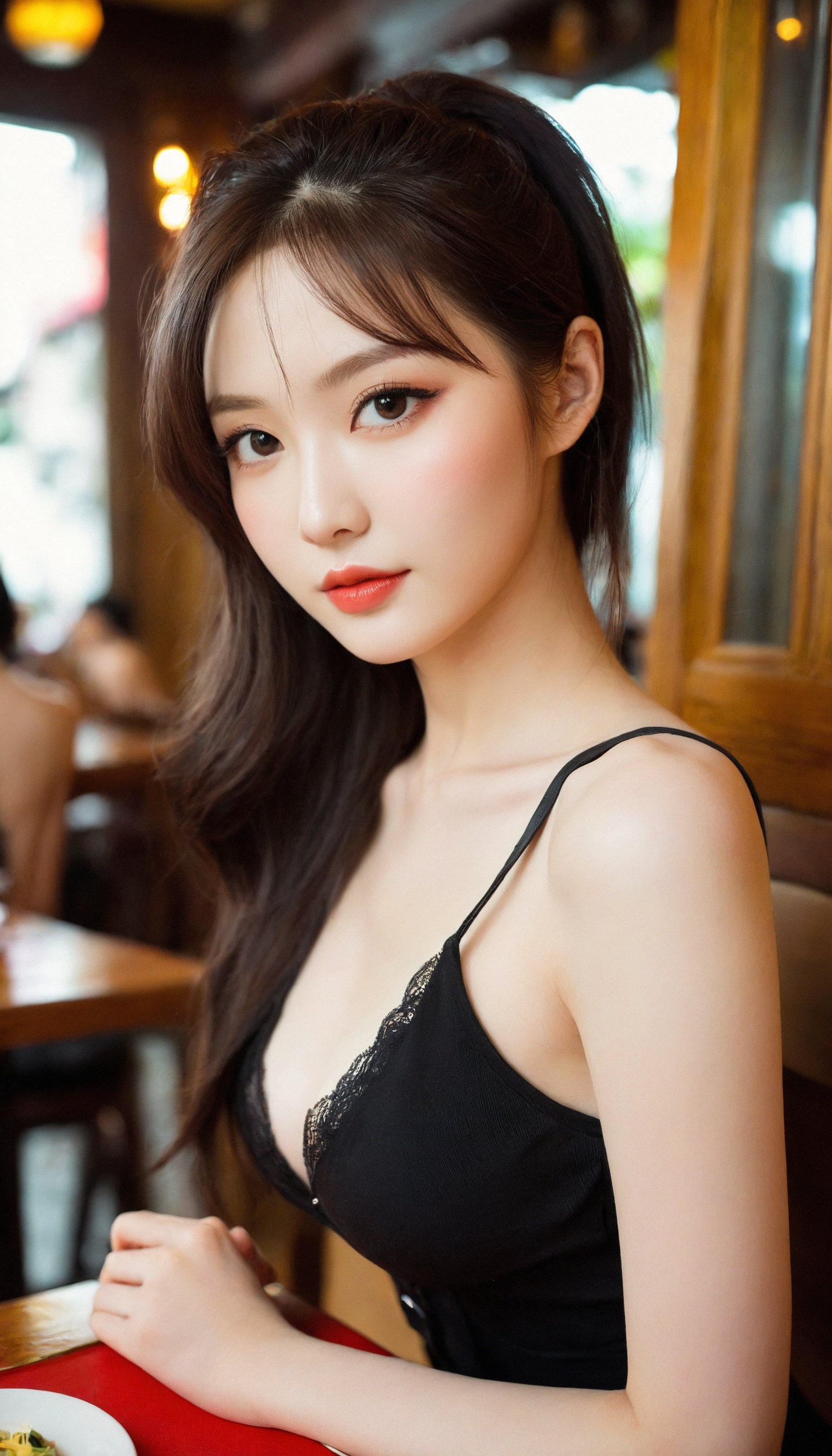 {"3": {"inputs": {"seed": 695915494491825, "steps": 32, "cfg": 5.65, "sampler_name": "dpmpp_2m", "scheduler": "karras", "denoise": 1.0, "model": ["27", 0], "positive": ["6", 0], "negative": ["7", 0], "latent_image": ["5", 0]}, "class_type": "KSampler"}, "4": {"inputs": {"ckpt_name": "helloworldxl.safetensors"}, "class_type": "CheckpointLoaderSimple"}, "5": {"inputs": {"width": 768, "height": 1344, "batch_size": 1}, "class_type": "EmptyLatentImage"}, "6": {"inputs": {"text": "26 year old girl, (russian:1.08), (korean:1.06), (beautiful eyes:1.04), (sexy lips:1.03), (temptress:0.95), (idol:0.97), (cute:0.99), (double eyelids:1.14), (pale skin:1.06), (slim:1.04), (eyelashes:0.95), (blush:1.09), (seductive facial expression:1.13), (detailed face:1.05), (seductive pose:0.96), (in a seductive pose:1.07), (large perky breasts:1.03), (cleavage:1.07), (thigh gap:0.96), (a waitress in uniform:0.97) working at a restaurant, (soft lighting:1.02), (detailed skin:1.02), (natural looking skin:1.00), (portra:1.05), (skin fuzz:1.06), (RAW:1.03), (film:1.05), (candid cinema:1.04), (textured skin:1.05)", "clip": ["27", 1]}, "class_type": "CLIPTextEncode"}, "7": {"inputs": {"text": "(bad hands:1.07), (twisted:1.05), (watermark:1.12), (distorted:1.12), (low resolution:1.06), (worst quality:1.12), (open mouth:1.12)", "clip": ["27", 1]}, "class_type": "CLIPTextEncode"}, "8": {"inputs": {"samples": ["3", 0], "vae": ["4", 2]}, "class_type": "VAEDecode"}, "25": {"inputs": {"lora_name": "nudify_xl.safetensors", "strength_model": 0.19, "strength_clip": 0.16, "model": ["4", 0], "clip": ["4", 1]}, "class_type": "LoraLoader"}, "26": {"inputs": {"lora_name": "shirtlift_SDXL_v2.safetensors", "strength_model": 0.09, "strength_clip": 0.06, "model": ["25", 0], "clip": ["25", 1]}, "class_type": "LoraLoader"}, "27": {"inputs": {"lora_name": "PerfectEyesXL.safetensors", "strength_model": 0.15, "strength_clip": 0.01, "model": ["26", 0], "clip": ["26", 1]}, "class_type": "LoraLoader"}, "30": {"inputs": {"model_name": "4x_NMKD-Superscale-SP_178000_G.pth"}, "class_type": "UpscaleModelLoader"}, "31": {"inputs": {"upscale_model": ["30", 0], "image": ["8", 0]}, "class_type": "ImageUpscaleWithModel"}, "32": {"inputs": {"upscale_method": "lanczos", "scale_by": 0.5, "image": ["31", 0]}, "class_type": "ImageScaleBy"}, "33": {"inputs": {"pixels": ["32", 0], "vae": ["4", 2]}, "class_type": "VAEEncode"}, "34": {"inputs": {"seed": 695915494491825, "steps": 32, "cfg": 5.65, "sampler_name": "dpmpp_2m", "scheduler": "karras", "denoise": 0.3, "model": ["27", 0], "positive": ["6", 0], "negative": ["7", 0], "latent_image": ["33", 0]}, "class_type": "KSampler"}, "36": {"inputs": {"samples": ["34", 0], "vae": ["4", 2]}, "class_type": "VAEDecode"}, "39": {"inputs": {"filename_prefix": "comfyapi-1713818057162", "images": ["36", 0]}, "class_type": "SaveImage"}}
