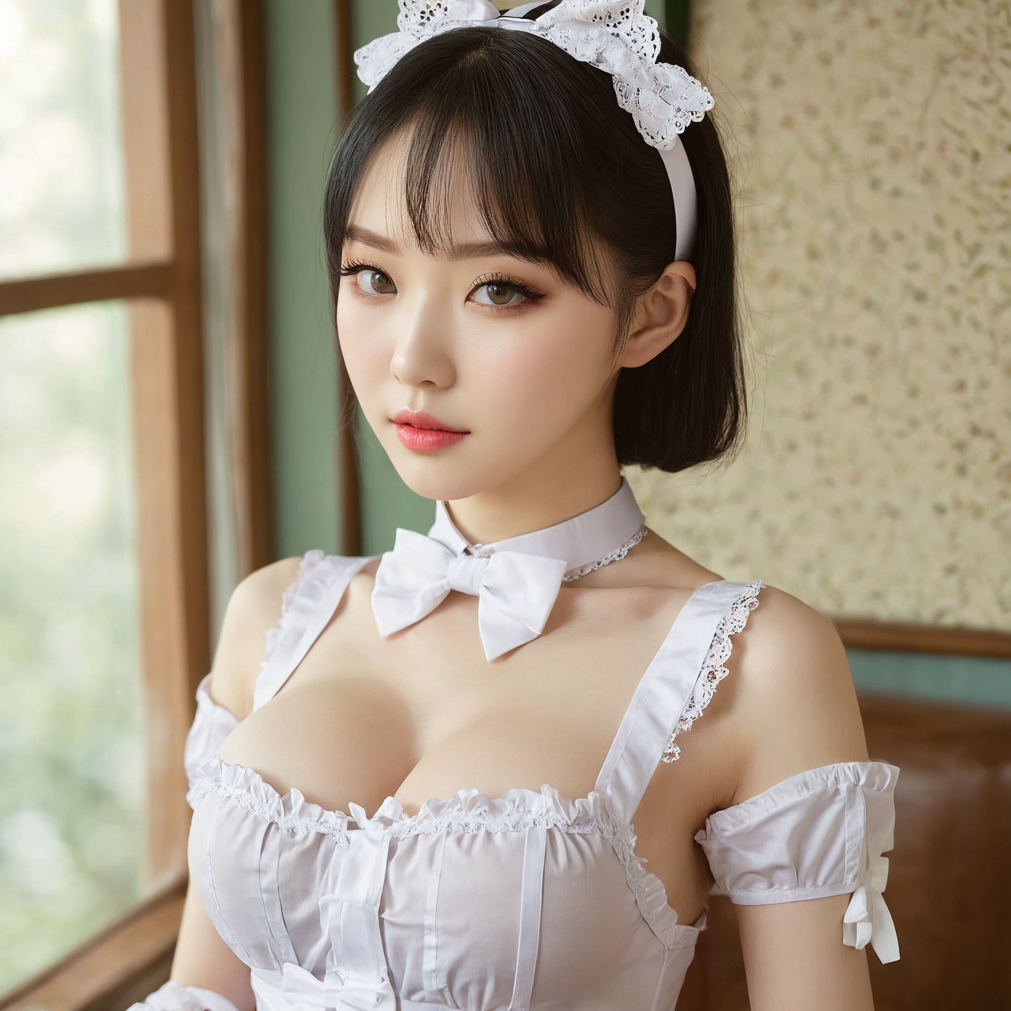 {"3": {"inputs": {"seed": 108968970347441, "steps": 32, "cfg": 6.01, "sampler_name": "dpmpp_2m", "scheduler": "karras", "denoise": 1.0, "model": ["27", 0], "positive": ["6", 0], "negative": ["7", 0], "latent_image": ["5", 0]}, "class_type": "KSampler"}, "4": {"inputs": {"ckpt_name": "juggernautxl.safetensors"}, "class_type": "CheckpointLoaderSimple"}, "5": {"inputs": {"width": 1024, "height": 1024, "batch_size": 1}, "class_type": "EmptyLatentImage"}, "6": {"inputs": {"text": "21 year old girl, (korean:1.12), (ukrainian:1.13), (russian:1.00), (idol:1.07), (pale skin:1.06), (sexy lips:1.07), (detailed face:1.12), (temptress:1.04), (cute:0.99), (slim:0.99), (double eyelids:0.98), (eyelashes:1.13), (blush:1.13), (seductive pose:1.04), (beautiful eyes:1.02), (seductive facial expression:1.02), (in a seductive pose:1.06), (large perky breasts:1.05), (cleavage:1.12), (thigh gap:1.10), in a (skimpy maid costume:1.06) working at a maid cafe, choker, bowtie, headband, pleated skirt, (skin fuzz:1.01), (soft lighting:1.05), (RAW:1.01), (candid cinema:1.02), (natural looking skin:1.01), (film:1.01), (textured skin:1.01), (detailed skin:1.01)", "clip": ["27", 1]}, "class_type": "CLIPTextEncode"}, "7": {"inputs": {"text": "(watermark:1.14), (twisted:1.11), (worst quality:1.12), (open mouth:1.14), (bad hands:1.14), (low resolution:1.10), (distorted:1.10)", "clip": ["27", 1]}, "class_type": "CLIPTextEncode"}, "8": {"inputs": {"samples": ["3", 0], "vae": ["4", 2]}, "class_type": "VAEDecode"}, "25": {"inputs": {"lora_name": "nudify_xl.safetensors", "strength_model": 0.25, "strength_clip": 0.12, "model": ["4", 0], "clip": ["4", 1]}, "class_type": "LoraLoader"}, "26": {"inputs": {"lora_name": "shirtlift_SDXL_v2.safetensors", "strength_model": 0.09, "strength_clip": 0.02, "model": ["25", 0], "clip": ["25", 1]}, "class_type": "LoraLoader"}, "27": {"inputs": {"lora_name": "PerfectEyesXL.safetensors", "strength_model": 0.06, "strength_clip": 0.01, "model": ["26", 0], "clip": ["26", 1]}, "class_type": "LoraLoader"}, "30": {"inputs": {"model_name": "4x_NMKD-Superscale-SP_178000_G.pth"}, "class_type": "UpscaleModelLoader"}, "31": {"inputs": {"upscale_model": ["30", 0], "image": ["8", 0]}, "class_type": "ImageUpscaleWithModel"}, "32": {"inputs": {"upscale_method": "lanczos", "scale_by": 0.5, "image": ["31", 0]}, "class_type": "ImageScaleBy"}, "33": {"inputs": {"pixels": ["32", 0], "vae": ["4", 2]}, "class_type": "VAEEncode"}, "34": {"inputs": {"seed": 108968970347441, "steps": 32, "cfg": 6.01, "sampler_name": "dpmpp_2m", "scheduler": "karras", "denoise": 0.3, "model": ["27", 0], "positive": ["6", 0], "negative": ["7", 0], "latent_image": ["33", 0]}, "class_type": "KSampler"}, "36": {"inputs": {"samples": ["34", 0], "vae": ["4", 2]}, "class_type": "VAEDecode"}, "39": {"inputs": {"filename_prefix": "comfyapi-1718622648644", "images": ["36", 0]}, "class_type": "SaveImage"}}