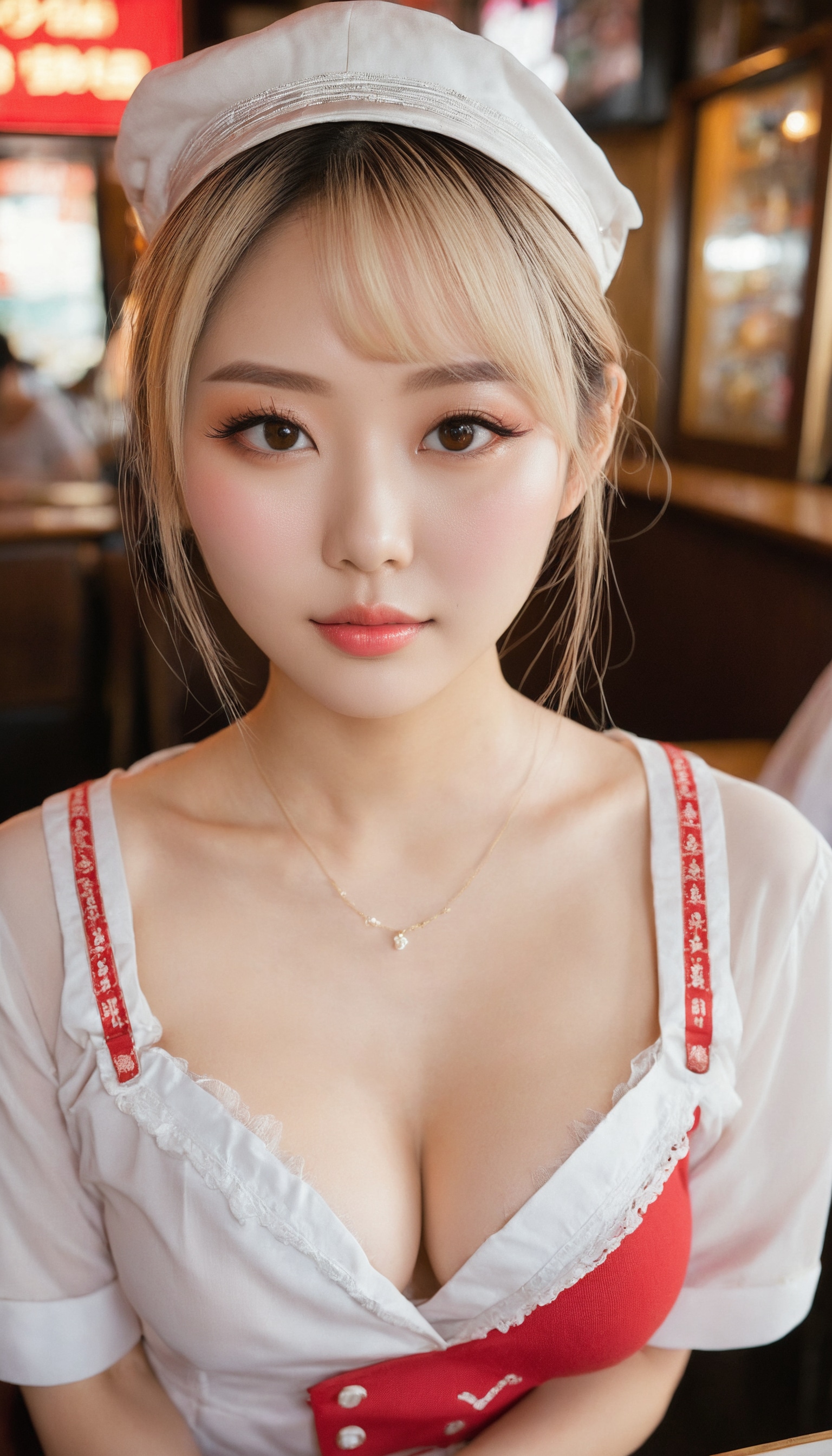 {"3": {"inputs": {"seed": 188342962007073, "steps": 32, "cfg": 5.42, "sampler_name": "dpmpp_2m", "scheduler": "karras", "denoise": 1.0, "model": ["27", 0], "positive": ["6", 0], "negative": ["7", 0], "latent_image": ["5", 0]}, "class_type": "KSampler"}, "4": {"inputs": {"ckpt_name": "juggernautxl.safetensors"}, "class_type": "CheckpointLoaderSimple"}, "5": {"inputs": {"width": 768, "height": 1344, "batch_size": 1}, "class_type": "EmptyLatentImage"}, "6": {"inputs": {"text": "26 year old girl, (japanese:1.11), (russian:1.06), (sexy lips:1.09), (detailed face:0.97), (blush:1.07), (temptress:1.11), (double eyelids:1.12), (cute:0.99), (slim:1.10), (eyelashes:1.06), (seductive facial expression:1.06), (beautiful eyes:0.95), (pale skin:1.03), (seductive pose:1.08), (idol:1.04), (in a seductive pose:1.02), (large perky breasts:1.01), (cleavage:0.99), (thigh gap:1.03), (a waitress in uniform:0.99) working at a restaurant, (candid cinema:1.05), (textured skin:1.01), (soft lighting:1.01), (detailed skin:1.01), (portra:1.09), (film:1.06), (skin fuzz:1.05), (RAW:1.01), (natural looking skin:1.00)", "clip": ["27", 1]}, "class_type": "CLIPTextEncode"}, "7": {"inputs": {"text": "(watermark:1.05), (low resolution:1.09), (worst quality:1.10), (distorted:1.14), (open mouth:1.07), (twisted:1.13), (bad hands:1.13)", "clip": ["27", 1]}, "class_type": "CLIPTextEncode"}, "8": {"inputs": {"samples": ["3", 0], "vae": ["4", 2]}, "class_type": "VAEDecode"}, "25": {"inputs": {"lora_name": "nudify_xl.safetensors", "strength_model": 0.13, "strength_clip": 0.21, "model": ["4", 0], "clip": ["4", 1]}, "class_type": "LoraLoader"}, "26": {"inputs": {"lora_name": "shirtlift_SDXL_v2.safetensors", "strength_model": 0.17, "strength_clip": 0.04, "model": ["25", 0], "clip": ["25", 1]}, "class_type": "LoraLoader"}, "27": {"inputs": {"lora_name": "PerfectEyesXL.safetensors", "strength_model": 0.02, "strength_clip": 0.13, "model": ["26", 0], "clip": ["26", 1]}, "class_type": "LoraLoader"}, "30": {"inputs": {"model_name": "4x_NMKD-Superscale-SP_178000_G.pth"}, "class_type": "UpscaleModelLoader"}, "31": {"inputs": {"upscale_model": ["30", 0], "image": ["8", 0]}, "class_type": "ImageUpscaleWithModel"}, "32": {"inputs": {"upscale_method": "lanczos", "scale_by": 0.5, "image": ["31", 0]}, "class_type": "ImageScaleBy"}, "33": {"inputs": {"pixels": ["32", 0], "vae": ["4", 2]}, "class_type": "VAEEncode"}, "34": {"inputs": {"seed": 188342962007073, "steps": 32, "cfg": 5.42, "sampler_name": "dpmpp_2m", "scheduler": "karras", "denoise": 0.3, "model": ["27", 0], "positive": ["6", 0], "negative": ["7", 0], "latent_image": ["33", 0]}, "class_type": "KSampler"}, "36": {"inputs": {"samples": ["34", 0], "vae": ["4", 2]}, "class_type": "VAEDecode"}, "39": {"inputs": {"filename_prefix": "comfyapi-1734383448612", "images": ["36", 0]}, "class_type": "SaveImage"}}