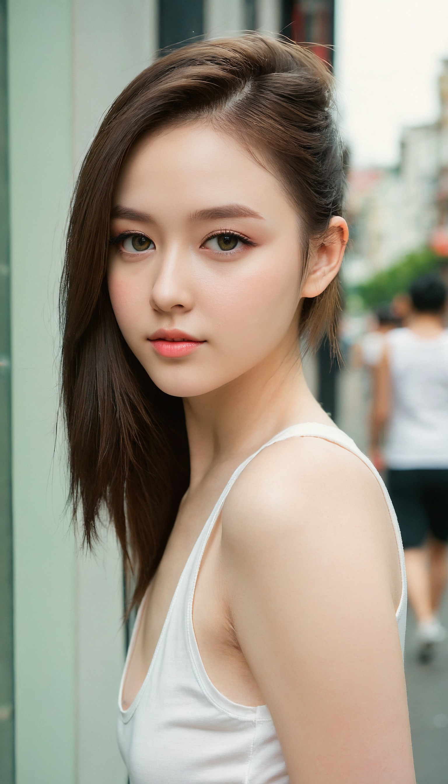 {"3": {"inputs": {"seed": 916092539088541, "steps": 32, "cfg": 7.55, "sampler_name": "dpmpp_2m", "scheduler": "karras", "denoise": 1.0, "model": ["27", 0], "positive": ["6", 0], "negative": ["7", 0], "latent_image": ["5", 0]}, "class_type": "KSampler"}, "4": {"inputs": {"ckpt_name": "juggernautXL_v8Rundiffusion.safetensors"}, "class_type": "CheckpointLoaderSimple"}, "5": {"inputs": {"width": 768, "height": 1344, "batch_size": 1}, "class_type": "EmptyLatentImage"}, "6": {"inputs": {"text": "19 year old girl, (blush:1.03), (seductive facial expression:0.97), (sexy lips:1.06), (temptress:0.97), (seductive pose:1.12), (pale skin:1.03), (beautiful eyes:1.04), (double eyelids:1.01), (detailed face:0.99), (cute:1.08), (slim:1.09), (idol:1.00), (eyelashes:0.97), (perky ass:1.02), (exposed ass:1.03), (looking back:1.09), (sexy ass:1.08), (thigh gap:1.14), (white tanktop:1.13), busy street, (natural looking skin:1.04), (skin fuzz:1.07), (portra:1.01), (detailed skin:1.00), (candid cinema:1.06), (soft lighting:1.04), (textured skin:1.01), (film:1.08), (RAW:1.00)", "clip": ["27", 1]}, "class_type": "CLIPTextEncode"}, "7": {"inputs": {"text": "(twisted:1.11), (bad hands:1.10), (open mouth:1.07), (low resolution:1.08), (worst quality:1.07), (watermark:1.10), (distorted:1.12)", "clip": ["27", 1]}, "class_type": "CLIPTextEncode"}, "8": {"inputs": {"samples": ["3", 0], "vae": ["4", 2]}, "class_type": "VAEDecode"}, "25": {"inputs": {"lora_name": "nudify_xl.safetensors", "strength_model": 0.16, "strength_clip": 0.12, "model": ["4", 0], "clip": ["4", 1]}, "class_type": "LoraLoader"}, "26": {"inputs": {"lora_name": "shirtlift_SDXL_v2.safetensors", "strength_model": 0.13, "strength_clip": 0.09, "model": ["25", 0], "clip": ["25", 1]}, "class_type": "LoraLoader"}, "27": {"inputs": {"lora_name": "PerfectEyesXL.safetensors", "strength_model": 0.14, "strength_clip": 0.1, "model": ["26", 0], "clip": ["26", 1]}, "class_type": "LoraLoader"}, "30": {"inputs": {"model_name": "4x_NMKD-Superscale-SP_178000_G.pth"}, "class_type": "UpscaleModelLoader"}, "31": {"inputs": {"upscale_model": ["30", 0], "image": ["8", 0]}, "class_type": "ImageUpscaleWithModel"}, "32": {"inputs": {"upscale_method": "lanczos", "scale_by": 0.5, "image": ["31", 0]}, "class_type": "ImageScaleBy"}, "33": {"inputs": {"pixels": ["32", 0], "vae": ["4", 2]}, "class_type": "VAEEncode"}, "34": {"inputs": {"seed": 916092539088541, "steps": 32, "cfg": 7.55, "sampler_name": "dpmpp_2m", "scheduler": "karras", "denoise": 0.3, "model": ["27", 0], "positive": ["6", 0], "negative": ["7", 0], "latent_image": ["33", 0]}, "class_type": "KSampler"}, "36": {"inputs": {"samples": ["34", 0], "vae": ["4", 2]}, "class_type": "VAEDecode"}, "39": {"inputs": {"filename_prefix": "comfyapi-1707267796906", "images": ["36", 0]}, "class_type": "SaveImage"}}