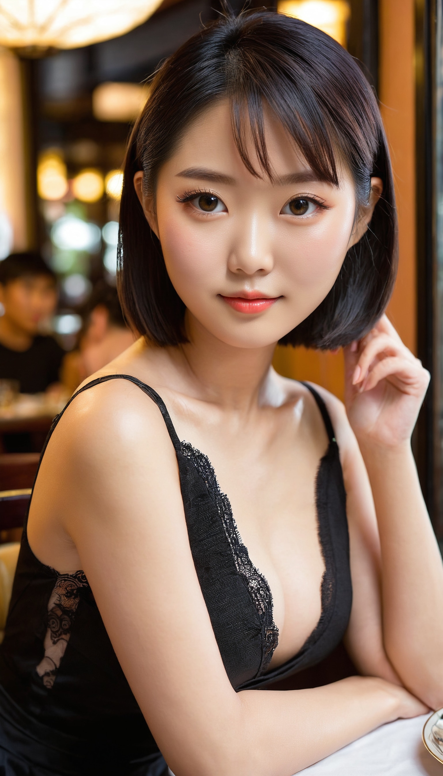 {"3": {"inputs": {"seed": 935771532010491, "steps": 32, "cfg": 7.91, "sampler_name": "dpmpp_2m", "scheduler": "karras", "denoise": 1.0, "model": ["27", 0], "positive": ["6", 0], "negative": ["7", 0], "latent_image": ["5", 0]}, "class_type": "KSampler"}, "4": {"inputs": {"ckpt_name": "juggernautxl.safetensors"}, "class_type": "CheckpointLoaderSimple"}, "5": {"inputs": {"width": 768, "height": 1344, "batch_size": 1}, "class_type": "EmptyLatentImage"}, "6": {"inputs": {"text": "23 year old girl, (japanese:0.95), (chinese:1.13), (slim:1.11), (double eyelids:1.02), (blush:1.04), (seductive facial expression:1.12), (beautiful eyes:1.04), (sexy lips:1.07), (temptress:0.98), (cute:1.14), (detailed face:0.98), (idol:1.08), (eyelashes:1.00), (seductive pose:1.10), (in a seductive pose:1.02), (large perky breasts:0.95), (cleavage:1.14), (thigh gap:1.14), (wearing a little black dress:1.11) at a fine dining restaurant, (portra:1.05), (soft lighting:1.07), (RAW:1.07), (skin fuzz:1.00), (textured skin:1.07), (candid cinema:1.02), (film:1.05), (detailed skin:1.01), (natural looking skin:1.07)", "clip": ["27", 1]}, "class_type": "CLIPTextEncode"}, "7": {"inputs": {"text": "(distorted:1.12), (open mouth:1.12), (watermark:1.14), (worst quality:1.11), (bad hands:1.12), (twisted:1.12), (low resolution:1.05)", "clip": ["27", 1]}, "class_type": "CLIPTextEncode"}, "8": {"inputs": {"samples": ["3", 0], "vae": ["4", 2]}, "class_type": "VAEDecode"}, "25": {"inputs": {"lora_name": "nudify_xl.safetensors", "strength_model": 0.24, "strength_clip": 0.18, "model": ["4", 0], "clip": ["4", 1]}, "class_type": "LoraLoader"}, "26": {"inputs": {"lora_name": "shirtlift_SDXL_v2.safetensors", "strength_model": 0.17, "strength_clip": 0.12, "model": ["25", 0], "clip": ["25", 1]}, "class_type": "LoraLoader"}, "27": {"inputs": {"lora_name": "PerfectEyesXL.safetensors", "strength_model": 0.17, "strength_clip": 0.13, "model": ["26", 0], "clip": ["26", 1]}, "class_type": "LoraLoader"}, "30": {"inputs": {"model_name": "4x_NMKD-Superscale-SP_178000_G.pth"}, "class_type": "UpscaleModelLoader"}, "31": {"inputs": {"upscale_model": ["30", 0], "image": ["8", 0]}, "class_type": "ImageUpscaleWithModel"}, "32": {"inputs": {"upscale_method": "lanczos", "scale_by": 0.5, "image": ["31", 0]}, "class_type": "ImageScaleBy"}, "33": {"inputs": {"pixels": ["32", 0], "vae": ["4", 2]}, "class_type": "VAEEncode"}, "34": {"inputs": {"seed": 935771532010491, "steps": 32, "cfg": 7.91, "sampler_name": "dpmpp_2m", "scheduler": "karras", "denoise": 0.3, "model": ["27", 0], "positive": ["6", 0], "negative": ["7", 0], "latent_image": ["33", 0]}, "class_type": "KSampler"}, "36": {"inputs": {"samples": ["34", 0], "vae": ["4", 2]}, "class_type": "VAEDecode"}, "39": {"inputs": {"filename_prefix": "comfyapi-1728267441131", "images": ["36", 0]}, "class_type": "SaveImage"}}