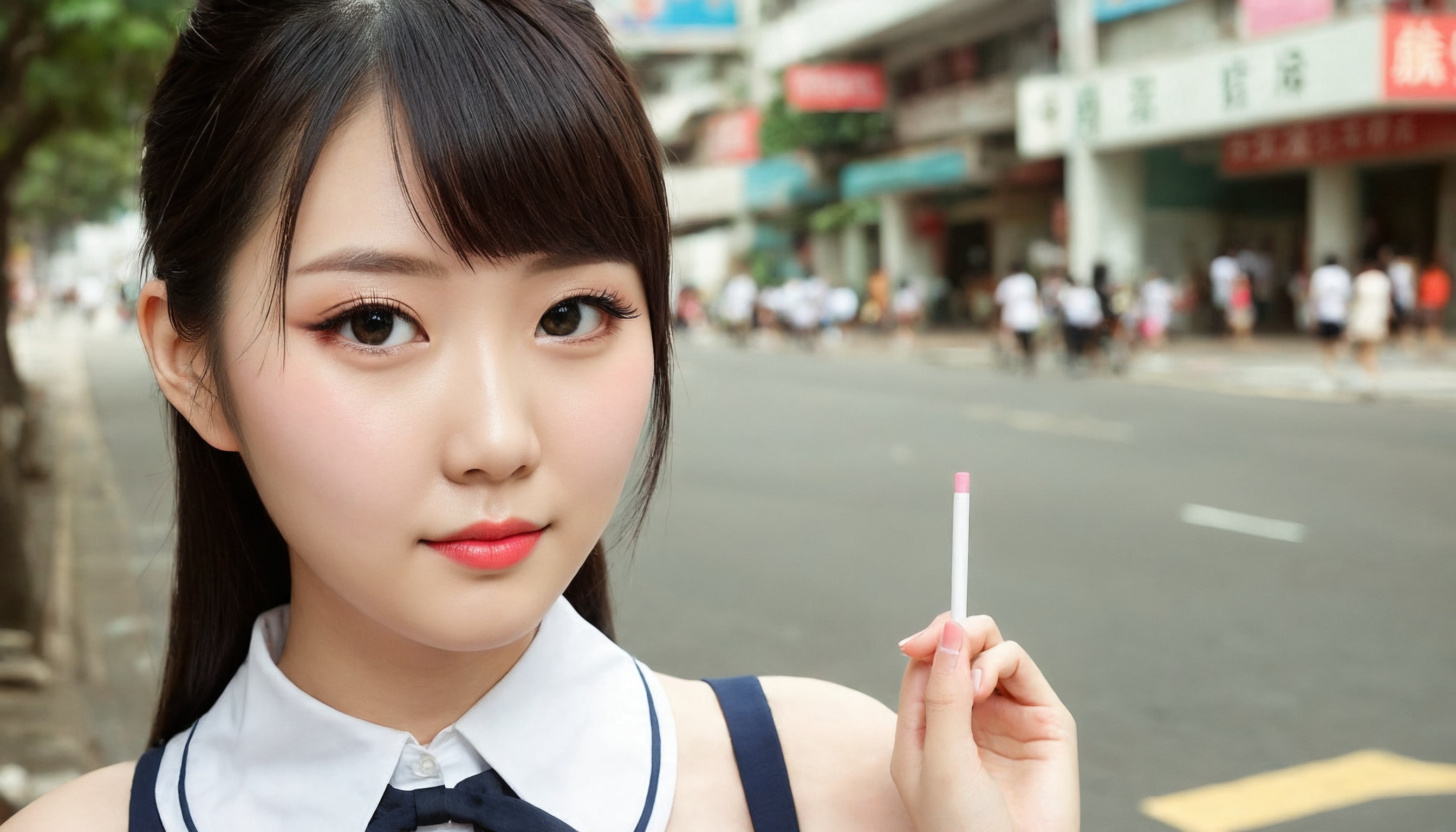 {"3": {"inputs": {"seed": 904733736684386, "steps": 32, "cfg": 6.1, "sampler_name": "dpmpp_2m", "scheduler": "karras", "denoise": 1.0, "model": ["27", 0], "positive": ["6", 0], "negative": ["7", 0], "latent_image": ["5", 0]}, "class_type": "KSampler"}, "4": {"inputs": {"ckpt_name": "juggernautXL_v8Rundiffusion.safetensors"}, "class_type": "CheckpointLoaderSimple"}, "5": {"inputs": {"width": 1344, "height": 768, "batch_size": 1}, "class_type": "EmptyLatentImage"}, "6": {"inputs": {"text": "26 year old girl, (taiwanese:1.00), (chinese:1.05), (sexy lips:0.95), (slim:1.14), (temptress:0.97), (seductive facial expression:1.04), (blush:1.12), (seductive pose:1.06), (cute:1.09), (double eyelids:0.98), (eyelashes:1.14), (idol:1.02), (pale skin:1.11), (detailed face:0.95), (beautiful eyes:1.06), (in a seductive pose:1.07), (large perky breasts:1.14), (cleavage:0.99), (thigh gap:1.14), (school uniform:1.08), choker, busy street, (natural looking skin:1.05), (RAW:1.01), (skin fuzz:1.06), (detailed skin:1.09), (textured skin:1.08), (film:1.04), (portra:1.04), (candid cinema:1.06)", "clip": ["27", 1]}, "class_type": "CLIPTextEncode"}, "7": {"inputs": {"text": "(watermark:1.08), (bad hands:1.05), (low resolution:1.12), (worst quality:1.11), (distorted:1.12), (twisted:1.10), (open mouth:1.14)", "clip": ["27", 1]}, "class_type": "CLIPTextEncode"}, "8": {"inputs": {"samples": ["3", 0], "vae": ["4", 2]}, "class_type": "VAEDecode"}, "25": {"inputs": {"lora_name": "nudify_xl.safetensors", "strength_model": 0.11, "strength_clip": 0.02, "model": ["4", 0], "clip": ["4", 1]}, "class_type": "LoraLoader"}, "26": {"inputs": {"lora_name": "shirtlift_SDXL_v2.safetensors", "strength_model": 0.19, "strength_clip": 0.05, "model": ["25", 0], "clip": ["25", 1]}, "class_type": "LoraLoader"}, "27": {"inputs": {"lora_name": "PerfectEyesXL.safetensors", "strength_model": 0.11, "strength_clip": 0.17, "model": ["26", 0], "clip": ["26", 1]}, "class_type": "LoraLoader"}, "30": {"inputs": {"model_name": "4x_NMKD-Superscale-SP_178000_G.pth"}, "class_type": "UpscaleModelLoader"}, "31": {"inputs": {"upscale_model": ["30", 0], "image": ["8", 0]}, "class_type": "ImageUpscaleWithModel"}, "32": {"inputs": {"upscale_method": "lanczos", "scale_by": 0.5, "image": ["31", 0]}, "class_type": "ImageScaleBy"}, "33": {"inputs": {"pixels": ["32", 0], "vae": ["4", 2]}, "class_type": "VAEEncode"}, "34": {"inputs": {"seed": 904733736684386, "steps": 32, "cfg": 6.1, "sampler_name": "dpmpp_2m", "scheduler": "karras", "denoise": 0.3, "model": ["27", 0], "positive": ["6", 0], "negative": ["7", 0], "latent_image": ["33", 0]}, "class_type": "KSampler"}, "36": {"inputs": {"samples": ["34", 0], "vae": ["4", 2]}, "class_type": "VAEDecode"}, "39": {"inputs": {"filename_prefix": "comfyapi-1707937515314", "images": ["36", 0]}, "class_type": "SaveImage"}}