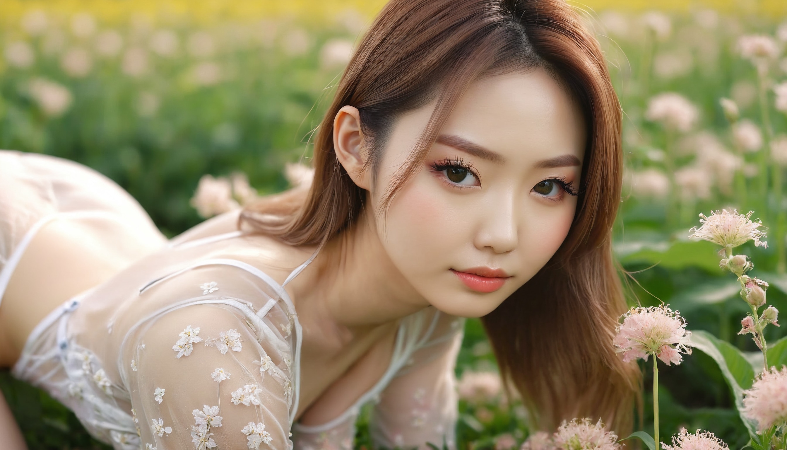 {"3": {"inputs": {"seed": 652593181153161, "steps": 64, "cfg": 7.69, "sampler_name": "dpmpp_2m", "scheduler": "karras", "denoise": 1.0, "model": ["27", 0], "positive": ["6", 0], "negative": ["7", 0], "latent_image": ["5", 0]}, "class_type": "KSampler"}, "4": {"inputs": {"ckpt_name": "juggernautxl.safetensors"}, "class_type": "CheckpointLoaderSimple"}, "5": {"inputs": {"width": 1344, "height": 768, "batch_size": 1}, "class_type": "EmptyLatentImage"}, "6": {"inputs": {"text": "27 year old girl, (japanese:0.98), (russian:0.98), (beautiful eyes:0.98), (slim:0.96), (eyelashes:1.14), (blush:0.97), (temptress:0.99), (pale skin:0.98), (sexy lips:1.11), (double eyelids:0.95), (seductive pose:1.00), (seductive facial expression:0.95), (cute:1.06), (on all fours:1.00), (spreading ass cheeks:0.99), (from behind:0.96), (backboob:1.03), wearing (translucent clothes:1.11) on a flower field, (textured skin:1.00), (candid cinema:1.00), (skin fuzz:1.03), (detailed skin:1.06), (natural looking skin:1.00), (RAW:1.01), (portra:1.09), (film:1.08), (soft lighting:1.00)", "clip": ["27", 1]}, "class_type": "CLIPTextEncode"}, "7": {"inputs": {"text": "(watermark:1.06), (twisted:1.09), (distorted:1.13), (worst quality:1.10), (bad hands:1.07), (low resolution:1.11), (open mouth:1.12)", "clip": ["27", 1]}, "class_type": "CLIPTextEncode"}, "8": {"inputs": {"samples": ["3", 0], "vae": ["4", 2]}, "class_type": "VAEDecode"}, "25": {"inputs": {"lora_name": "nudify_xl.safetensors", "strength_model": 0.03, "strength_clip": 0.15, "model": ["4", 0], "clip": ["4", 1]}, "class_type": "LoraLoader"}, "26": {"inputs": {"lora_name": "shirtlift_SDXL_v2.safetensors", "strength_model": 0.06, "strength_clip": 0.03, "model": ["25", 0], "clip": ["25", 1]}, "class_type": "LoraLoader"}, "27": {"inputs": {"lora_name": "PerfectEyesXL.safetensors", "strength_model": 0.09, "strength_clip": 0.08, "model": ["26", 0], "clip": ["26", 1]}, "class_type": "LoraLoader"}, "30": {"inputs": {"model_name": "4x_NMKD-Superscale-SP_178000_G.pth"}, "class_type": "UpscaleModelLoader"}, "31": {"inputs": {"upscale_model": ["30", 0], "image": ["8", 0]}, "class_type": "ImageUpscaleWithModel"}, "32": {"inputs": {"upscale_method": "lanczos", "scale_by": 0.5, "image": ["31", 0]}, "class_type": "ImageScaleBy"}, "33": {"inputs": {"pixels": ["32", 0], "vae": ["4", 2]}, "class_type": "VAEEncode"}, "34": {"inputs": {"seed": 652593181153161, "steps": 64, "cfg": 7.69, "sampler_name": "dpmpp_2m", "scheduler": "karras", "denoise": 0.3, "model": ["27", 0], "positive": ["6", 0], "negative": ["7", 0], "latent_image": ["33", 0]}, "class_type": "KSampler"}, "36": {"inputs": {"samples": ["34", 0], "vae": ["4", 2]}, "class_type": "VAEDecode"}, "39": {"inputs": {"filename_prefix": "comfyapi-1715037222561", "images": ["36", 0]}, "class_type": "SaveImage"}}