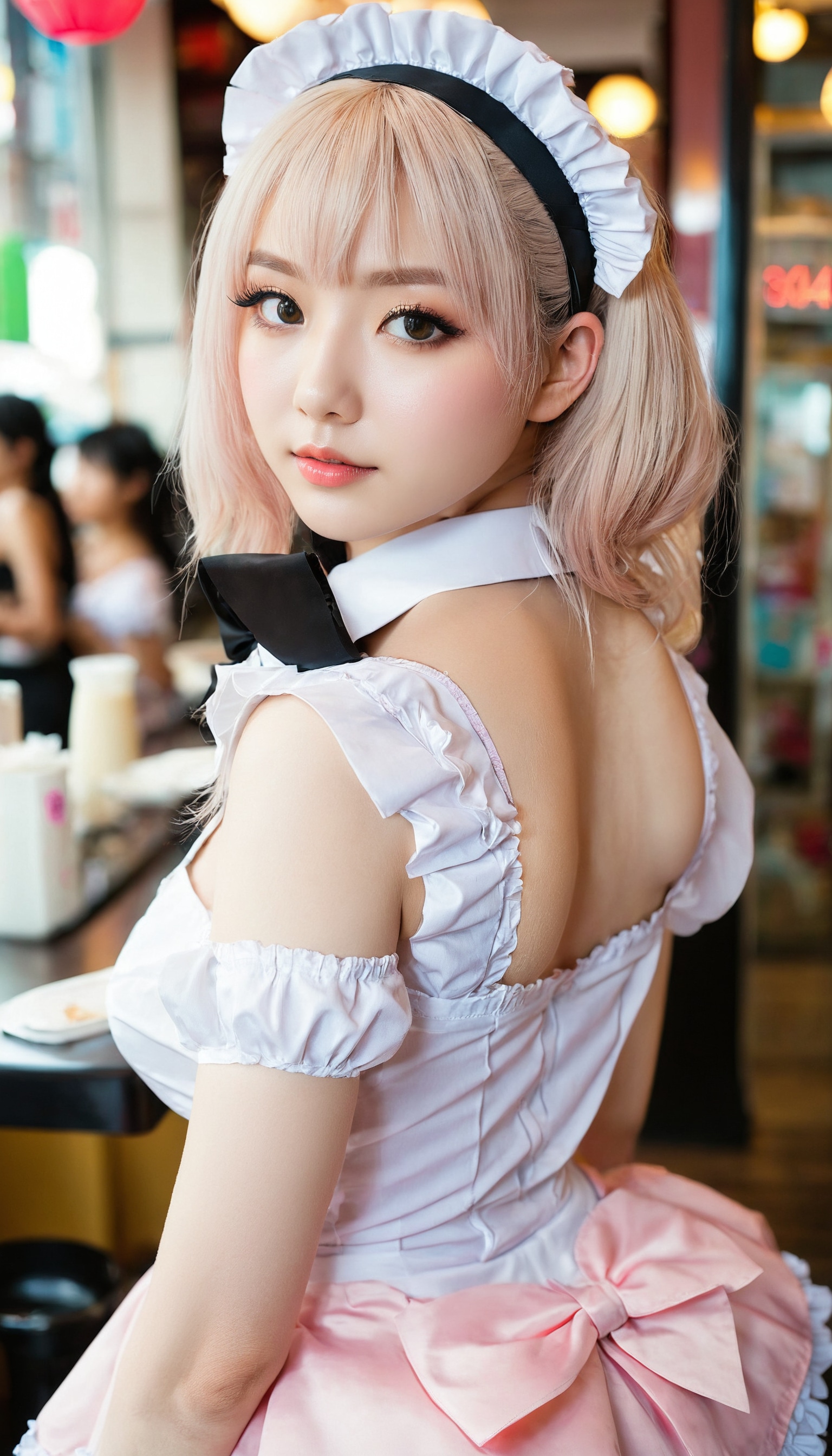 {"3": {"inputs": {"seed": 208575566956907, "steps": 64, "cfg": 7.37, "sampler_name": "dpmpp_2m", "scheduler": "karras", "denoise": 1.0, "model": ["27", 0], "positive": ["6", 0], "negative": ["7", 0], "latent_image": ["5", 0]}, "class_type": "KSampler"}, "4": {"inputs": {"ckpt_name": "juggernautxl.safetensors"}, "class_type": "CheckpointLoaderSimple"}, "5": {"inputs": {"width": 768, "height": 1344, "batch_size": 1}, "class_type": "EmptyLatentImage"}, "6": {"inputs": {"text": "22 year old girl, (beautiful eyes:1.11), (cute:1.05), (seductive pose:0.97), (sexy lips:0.97), (idol:1.07), (slim:1.09), (double eyelids:1.00), (blush:1.06), (eyelashes:1.12), (temptress:1.01), (pale skin:1.04), (seductive facial expression:0.97), (perky ass:1.06), (exposed ass:1.13), (looking back:1.07), (sexy ass:1.14), (thigh gap:0.95), in a (skimpy maid costume:1.01) working at a maid cafe, choker, bowtie, headband, pleated skirt, (detailed skin:1.01), (film:1.03), (candid cinema:1.09), (soft lighting:1.07), (RAW:1.08), (portra:1.02), (skin fuzz:1.03), (natural looking skin:1.07), (textured skin:1.00)", "clip": ["27", 1]}, "class_type": "CLIPTextEncode"}, "7": {"inputs": {"text": "(watermark:1.07), (distorted:1.08), (bad hands:1.07), (low resolution:1.07), (twisted:1.09), (worst quality:1.08), (open mouth:1.14)", "clip": ["27", 1]}, "class_type": "CLIPTextEncode"}, "8": {"inputs": {"samples": ["3", 0], "vae": ["4", 2]}, "class_type": "VAEDecode"}, "25": {"inputs": {"lora_name": "nudify_xl.safetensors", "strength_model": 0.08, "strength_clip": 0.03, "model": ["4", 0], "clip": ["4", 1]}, "class_type": "LoraLoader"}, "26": {"inputs": {"lora_name": "shirtlift_SDXL_v2.safetensors", "strength_model": 0.12, "strength_clip": 0.01, "model": ["25", 0], "clip": ["25", 1]}, "class_type": "LoraLoader"}, "27": {"inputs": {"lora_name": "PerfectEyesXL.safetensors", "strength_model": 0.18, "strength_clip": 0.18, "model": ["26", 0], "clip": ["26", 1]}, "class_type": "LoraLoader"}, "30": {"inputs": {"model_name": "4x_NMKD-Superscale-SP_178000_G.pth"}, "class_type": "UpscaleModelLoader"}, "31": {"inputs": {"upscale_model": ["30", 0], "image": ["8", 0]}, "class_type": "ImageUpscaleWithModel"}, "32": {"inputs": {"upscale_method": "lanczos", "scale_by": 0.5, "image": ["31", 0]}, "class_type": "ImageScaleBy"}, "33": {"inputs": {"pixels": ["32", 0], "vae": ["4", 2]}, "class_type": "VAEEncode"}, "34": {"inputs": {"seed": 208575566956907, "steps": 64, "cfg": 7.37, "sampler_name": "dpmpp_2m", "scheduler": "karras", "denoise": 0.3, "model": ["27", 0], "positive": ["6", 0], "negative": ["7", 0], "latent_image": ["33", 0]}, "class_type": "KSampler"}, "36": {"inputs": {"samples": ["34", 0], "vae": ["4", 2]}, "class_type": "VAEDecode"}, "39": {"inputs": {"filename_prefix": "comfyapi-1725073848180", "images": ["36", 0]}, "class_type": "SaveImage"}}