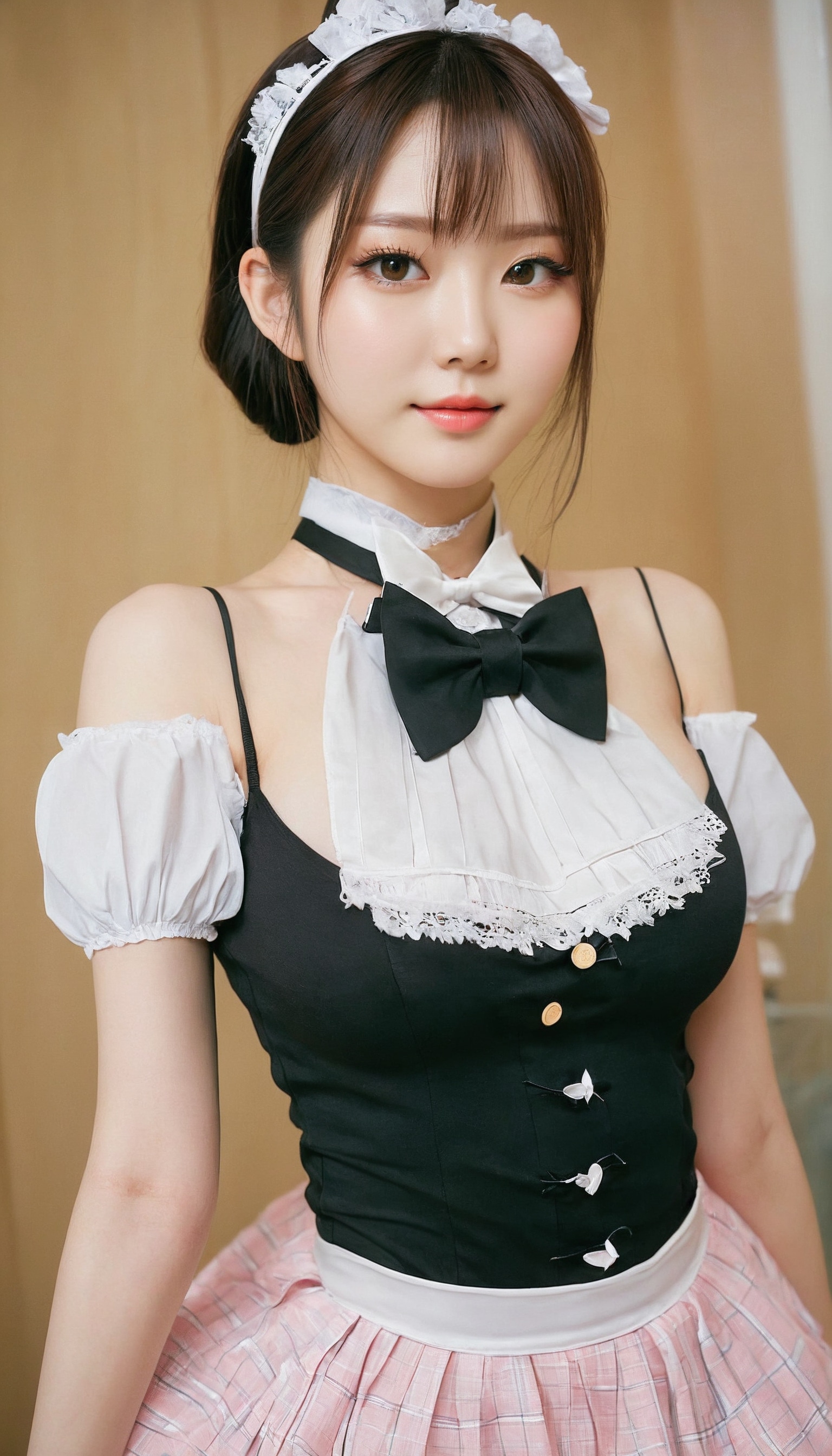 {"3": {"inputs": {"seed": 206089849377691, "steps": 32, "cfg": 5.14, "sampler_name": "dpmpp_2m", "scheduler": "karras", "denoise": 1.0, "model": ["27", 0], "positive": ["6", 0], "negative": ["7", 0], "latent_image": ["5", 0]}, "class_type": "KSampler"}, "4": {"inputs": {"ckpt_name": "juggernautxl.safetensors"}, "class_type": "CheckpointLoaderSimple"}, "5": {"inputs": {"width": 768, "height": 1344, "batch_size": 1}, "class_type": "EmptyLatentImage"}, "6": {"inputs": {"text": "24 year old girl, (japanese:1.08), (korean:1.01), (ukrainian:1.14), (slim:0.97), (cute:1.02), (double eyelids:1.08), (sexy lips:1.05), (eyelashes:0.99), (pale skin:1.04), (detailed face:1.13), (temptress:1.03), (blush:1.01), (beautiful eyes:0.99), (seductive facial expression:1.05), (seductive pose:1.01), (in a seductive pose:1.07), (large perky breasts:1.02), (cleavage:0.95), (thigh gap:1.01), in a (skimpy maid costume:0.98) working at a maid cafe, choker, bowtie, headband, pleated skirt, (skin fuzz:1.01), (portra:1.06), (soft lighting:1.00), (film:1.05), (candid cinema:1.08), (natural looking skin:1.03), (detailed skin:1.04), (RAW:1.03), (textured skin:1.08)", "clip": ["27", 1]}, "class_type": "CLIPTextEncode"}, "7": {"inputs": {"text": "(bad hands:1.14), (distorted:1.12), (open mouth:1.10), (twisted:1.13), (low resolution:1.08), (worst quality:1.09), (watermark:1.09)", "clip": ["27", 1]}, "class_type": "CLIPTextEncode"}, "8": {"inputs": {"samples": ["3", 0], "vae": ["4", 2]}, "class_type": "VAEDecode"}, "25": {"inputs": {"lora_name": "nudify_xl.safetensors", "strength_model": 0.35, "strength_clip": 0.12, "model": ["4", 0], "clip": ["4", 1]}, "class_type": "LoraLoader"}, "26": {"inputs": {"lora_name": "shirtlift_SDXL_v2.safetensors", "strength_model": 0.09, "strength_clip": 0.1, "model": ["25", 0], "clip": ["25", 1]}, "class_type": "LoraLoader"}, "27": {"inputs": {"lora_name": "PerfectEyesXL.safetensors", "strength_model": 0.06, "strength_clip": 0.09, "model": ["26", 0], "clip": ["26", 1]}, "class_type": "LoraLoader"}, "30": {"inputs": {"model_name": "4x_NMKD-Superscale-SP_178000_G.pth"}, "class_type": "UpscaleModelLoader"}, "31": {"inputs": {"upscale_model": ["30", 0], "image": ["8", 0]}, "class_type": "ImageUpscaleWithModel"}, "32": {"inputs": {"upscale_method": "lanczos", "scale_by": 0.5, "image": ["31", 0]}, "class_type": "ImageScaleBy"}, "33": {"inputs": {"pixels": ["32", 0], "vae": ["4", 2]}, "class_type": "VAEEncode"}, "34": {"inputs": {"seed": 206089849377691, "steps": 32, "cfg": 5.14, "sampler_name": "dpmpp_2m", "scheduler": "karras", "denoise": 0.3, "model": ["27", 0], "positive": ["6", 0], "negative": ["7", 0], "latent_image": ["33", 0]}, "class_type": "KSampler"}, "36": {"inputs": {"samples": ["34", 0], "vae": ["4", 2]}, "class_type": "VAEDecode"}, "39": {"inputs": {"filename_prefix": "comfyapi-1733836901266", "images": ["36", 0]}, "class_type": "SaveImage"}}
