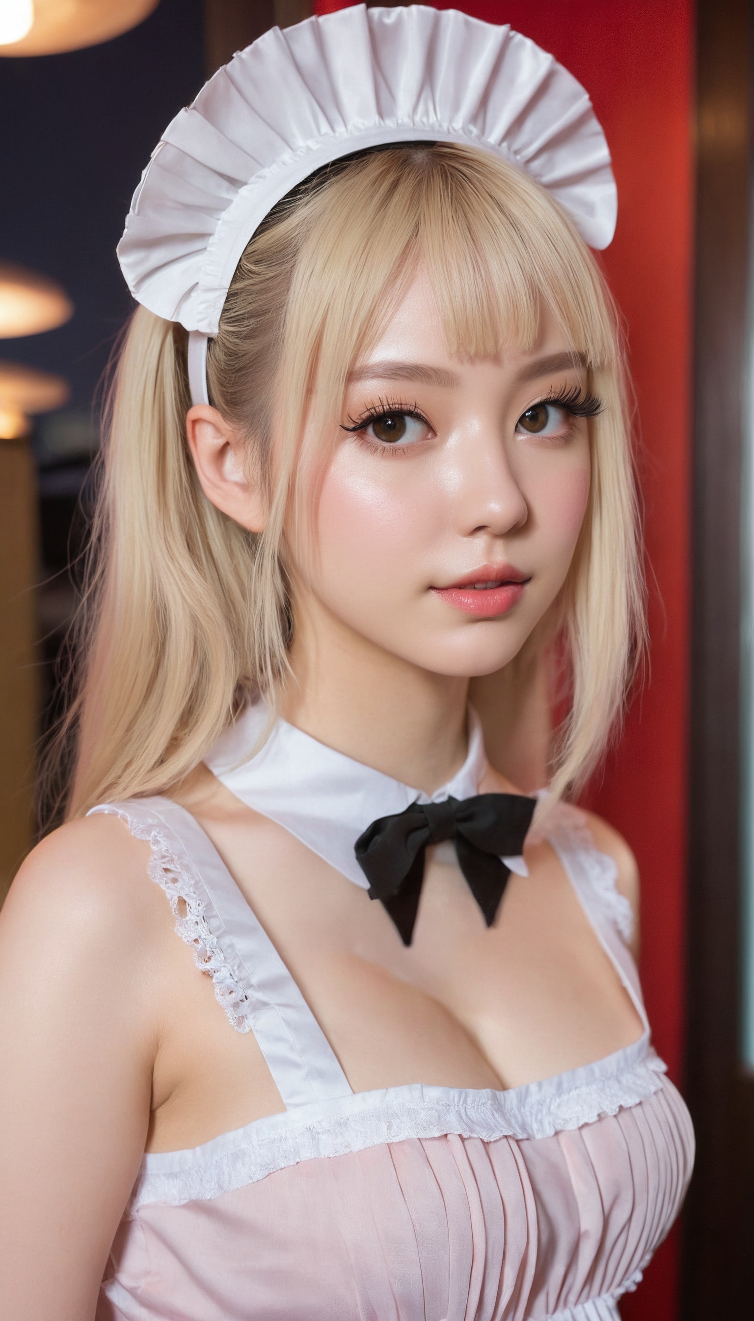 {"3": {"inputs": {"seed": 813443854474243, "steps": 32, "cfg": 6.38, "sampler_name": "dpmpp_2m", "scheduler": "karras", "denoise": 1.0, "model": ["27", 0], "positive": ["6", 0], "negative": ["7", 0], "latent_image": ["5", 0]}, "class_type": "KSampler"}, "4": {"inputs": {"ckpt_name": "juggernautxl.safetensors"}, "class_type": "CheckpointLoaderSimple"}, "5": {"inputs": {"width": 768, "height": 1344, "batch_size": 1}, "class_type": "EmptyLatentImage"}, "6": {"inputs": {"text": "28 year old girl, (detailed face:1.11), (slim:1.06), (eyelashes:1.09), (sexy lips:1.01), (temptress:1.02), (seductive facial expression:0.98), (cute:0.95), (blush:0.99), (idol:1.06), (double eyelids:1.09), (pale skin:0.98), (beautiful eyes:1.02), (perky ass:1.03), (exposed ass:1.12), (looking back:1.06), (sexy ass:1.06), (thigh gap:1.02), in a (skimpy maid costume:1.06) working at a maid cafe, choker, bowtie, headband, pleated skirt, (textured skin:1.08), (film:1.05), (portra:1.07), (soft lighting:1.06), (natural looking skin:1.03), (skin fuzz:1.09), (detailed skin:1.09), (RAW:1.08), (candid cinema:1.06)", "clip": ["27", 1]}, "class_type": "CLIPTextEncode"}, "7": {"inputs": {"text": "(bad hands:1.12), (watermark:1.05), (open mouth:1.05), (worst quality:1.12), (distorted:1.13), (low resolution:1.09), (twisted:1.06)", "clip": ["27", 1]}, "class_type": "CLIPTextEncode"}, "8": {"inputs": {"samples": ["3", 0], "vae": ["4", 2]}, "class_type": "VAEDecode"}, "25": {"inputs": {"lora_name": "nudify_xl.safetensors", "strength_model": 0.07, "strength_clip": 0.34, "model": ["4", 0], "clip": ["4", 1]}, "class_type": "LoraLoader"}, "26": {"inputs": {"lora_name": "shirtlift_SDXL_v2.safetensors", "strength_model": 0.18, "strength_clip": 0.1, "model": ["25", 0], "clip": ["25", 1]}, "class_type": "LoraLoader"}, "27": {"inputs": {"lora_name": "PerfectEyesXL.safetensors", "strength_model": 0.0, "strength_clip": 0.13, "model": ["26", 0], "clip": ["26", 1]}, "class_type": "LoraLoader"}, "30": {"inputs": {"model_name": "4x_NMKD-Superscale-SP_178000_G.pth"}, "class_type": "UpscaleModelLoader"}, "31": {"inputs": {"upscale_model": ["30", 0], "image": ["8", 0]}, "class_type": "ImageUpscaleWithModel"}, "32": {"inputs": {"upscale_method": "lanczos", "scale_by": 0.5, "image": ["31", 0]}, "class_type": "ImageScaleBy"}, "33": {"inputs": {"pixels": ["32", 0], "vae": ["4", 2]}, "class_type": "VAEEncode"}, "34": {"inputs": {"seed": 813443854474243, "steps": 32, "cfg": 6.38, "sampler_name": "dpmpp_2m", "scheduler": "karras", "denoise": 0.3, "model": ["27", 0], "positive": ["6", 0], "negative": ["7", 0], "latent_image": ["33", 0]}, "class_type": "KSampler"}, "36": {"inputs": {"samples": ["34", 0], "vae": ["4", 2]}, "class_type": "VAEDecode"}, "39": {"inputs": {"filename_prefix": "comfyapi-1716574495766", "images": ["36", 0]}, "class_type": "SaveImage"}}
