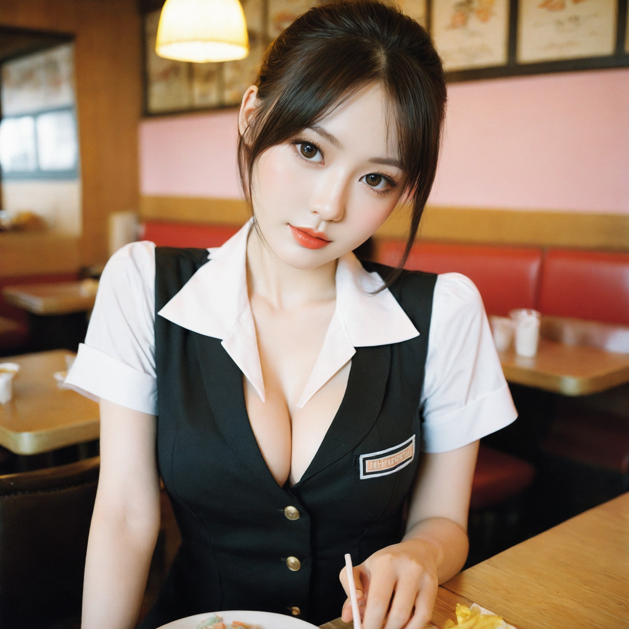 {"3": {"inputs": {"seed": 969777803139302, "steps": 64, "cfg": 5.8, "sampler_name": "dpmpp_2m", "scheduler": "karras", "denoise": 1.0, "model": ["27", 0], "positive": ["6", 0], "negative": ["7", 0], "latent_image": ["5", 0]}, "class_type": "KSampler"}, "4": {"inputs": {"ckpt_name": "helloworldxl.safetensors"}, "class_type": "CheckpointLoaderSimple"}, "5": {"inputs": {"width": 1024, "height": 1024, "batch_size": 1}, "class_type": "EmptyLatentImage"}, "6": {"inputs": {"text": "28 year old girl, (sexy lips:1.09), (cute:1.03), (idol:1.10), (eyelashes:0.98), (double eyelids:1.11), (pale skin:1.00), (seductive pose:1.04), (temptress:1.06), (slim:1.13), (blush:1.13), (beautiful eyes:1.14), (seductive facial expression:1.01), (detailed face:1.06), (in a seductive pose:1.02), (large perky breasts:1.03), (cleavage:1.03), (thigh gap:1.04), (a waitress in uniform:1.13) working at a restaurant, (natural looking skin:1.02), (soft lighting:1.03), (film:1.09), (skin fuzz:1.04), (candid cinema:1.05), (portra:1.04), (textured skin:1.01), (detailed skin:1.00), (RAW:1.05)", "clip": ["27", 1]}, "class_type": "CLIPTextEncode"}, "7": {"inputs": {"text": "(low resolution:1.08), (watermark:1.11), (twisted:1.09), (distorted:1.14), (bad hands:1.13), (worst quality:1.05), (open mouth:1.12)", "clip": ["27", 1]}, "class_type": "CLIPTextEncode"}, "8": {"inputs": {"samples": ["3", 0], "vae": ["4", 2]}, "class_type": "VAEDecode"}, "25": {"inputs": {"lora_name": "nudify_xl.safetensors", "strength_model": 0.24, "strength_clip": 0.19, "model": ["4", 0], "clip": ["4", 1]}, "class_type": "LoraLoader"}, "26": {"inputs": {"lora_name": "shirtlift_SDXL_v2.safetensors", "strength_model": 0.01, "strength_clip": 0.14, "model": ["25", 0], "clip": ["25", 1]}, "class_type": "LoraLoader"}, "27": {"inputs": {"lora_name": "PerfectEyesXL.safetensors", "strength_model": 0.14, "strength_clip": 0.15, "model": ["26", 0], "clip": ["26", 1]}, "class_type": "LoraLoader"}, "30": {"inputs": {"model_name": "4x_NMKD-Superscale-SP_178000_G.pth"}, "class_type": "UpscaleModelLoader"}, "31": {"inputs": {"upscale_model": ["30", 0], "image": ["8", 0]}, "class_type": "ImageUpscaleWithModel"}, "32": {"inputs": {"upscale_method": "lanczos", "scale_by": 0.5, "image": ["31", 0]}, "class_type": "ImageScaleBy"}, "33": {"inputs": {"pixels": ["32", 0], "vae": ["4", 2]}, "class_type": "VAEEncode"}, "34": {"inputs": {"seed": 969777803139302, "steps": 64, "cfg": 5.8, "sampler_name": "dpmpp_2m", "scheduler": "karras", "denoise": 0.3, "model": ["27", 0], "positive": ["6", 0], "negative": ["7", 0], "latent_image": ["33", 0]}, "class_type": "KSampler"}, "36": {"inputs": {"samples": ["34", 0], "vae": ["4", 2]}, "class_type": "VAEDecode"}, "39": {"inputs": {"filename_prefix": "comfyapi-1731700697247", "images": ["36", 0]}, "class_type": "SaveImage"}}