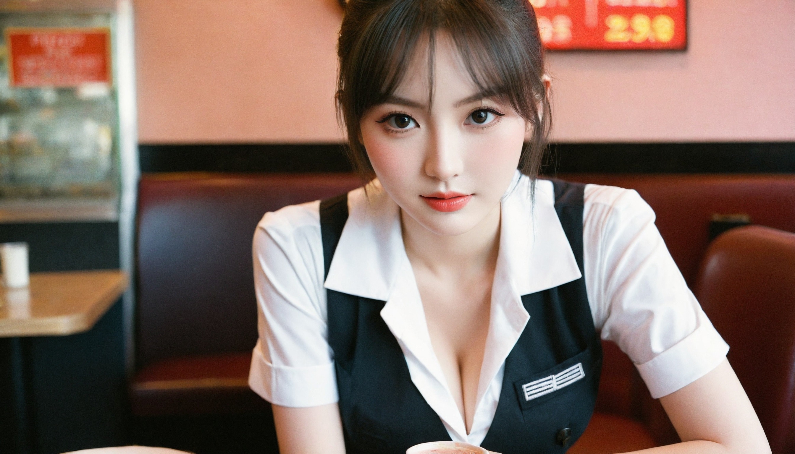 {"3": {"inputs": {"seed": 789656071997888, "steps": 64, "cfg": 5.46, "sampler_name": "dpmpp_2m", "scheduler": "karras", "denoise": 1.0, "model": ["27", 0], "positive": ["6", 0], "negative": ["7", 0], "latent_image": ["5", 0]}, "class_type": "KSampler"}, "4": {"inputs": {"ckpt_name": "leosamsHelloworldSDXL_helloworldSDXL32DPO.safetensors"}, "class_type": "CheckpointLoaderSimple"}, "5": {"inputs": {"width": 1344, "height": 768, "batch_size": 1}, "class_type": "EmptyLatentImage"}, "6": {"inputs": {"text": "25 year old girl, (blush:0.97), (temptress:0.95), (seductive pose:1.07), (detailed face:1.06), (idol:0.97), (pale skin:1.09), (eyelashes:1.08), (double eyelids:1.02), (seductive facial expression:1.09), (beautiful eyes:1.05), (sexy lips:1.09), (slim:1.06), (cute:1.12), (in a seductive pose:1.06), (large perky breasts:0.98), (cleavage:1.09), (thigh gap:0.96), (a waitress in uniform:1.11) working at a restaurant, (candid cinema:1.00), (natural looking skin:1.01), (textured skin:1.08), (skin fuzz:1.04), (portra:1.02), (film:1.05), (detailed skin:1.03), (RAW:1.05), (soft lighting:1.00)", "clip": ["27", 1]}, "class_type": "CLIPTextEncode"}, "7": {"inputs": {"text": "(bad hands:1.13), (low resolution:1.07), (twisted:1.08), (worst quality:1.13), (distorted:1.05), (open mouth:1.11), (watermark:1.05)", "clip": ["27", 1]}, "class_type": "CLIPTextEncode"}, "8": {"inputs": {"samples": ["3", 0], "vae": ["4", 2]}, "class_type": "VAEDecode"}, "25": {"inputs": {"lora_name": "nudify_xl.safetensors", "strength_model": 0.05, "strength_clip": 0.38, "model": ["4", 0], "clip": ["4", 1]}, "class_type": "LoraLoader"}, "26": {"inputs": {"lora_name": "shirtlift_SDXL_v2.safetensors", "strength_model": 0.07, "strength_clip": 0.14, "model": ["25", 0], "clip": ["25", 1]}, "class_type": "LoraLoader"}, "27": {"inputs": {"lora_name": "PerfectEyesXL.safetensors", "strength_model": 0.16, "strength_clip": 0.17, "model": ["26", 0], "clip": ["26", 1]}, "class_type": "LoraLoader"}, "30": {"inputs": {"model_name": "4x_NMKD-Superscale-SP_178000_G.pth"}, "class_type": "UpscaleModelLoader"}, "31": {"inputs": {"upscale_model": ["30", 0], "image": ["8", 0]}, "class_type": "ImageUpscaleWithModel"}, "32": {"inputs": {"upscale_method": "lanczos", "scale_by": 0.5, "image": ["31", 0]}, "class_type": "ImageScaleBy"}, "33": {"inputs": {"pixels": ["32", 0], "vae": ["4", 2]}, "class_type": "VAEEncode"}, "34": {"inputs": {"seed": 789656071997888, "steps": 64, "cfg": 5.46, "sampler_name": "dpmpp_2m", "scheduler": "karras", "denoise": 0.3, "model": ["27", 0], "positive": ["6", 0], "negative": ["7", 0], "latent_image": ["33", 0]}, "class_type": "KSampler"}, "36": {"inputs": {"samples": ["34", 0], "vae": ["4", 2]}, "class_type": "VAEDecode"}, "39": {"inputs": {"filename_prefix": "comfyapi-1707769999525", "images": ["36", 0]}, "class_type": "SaveImage"}}