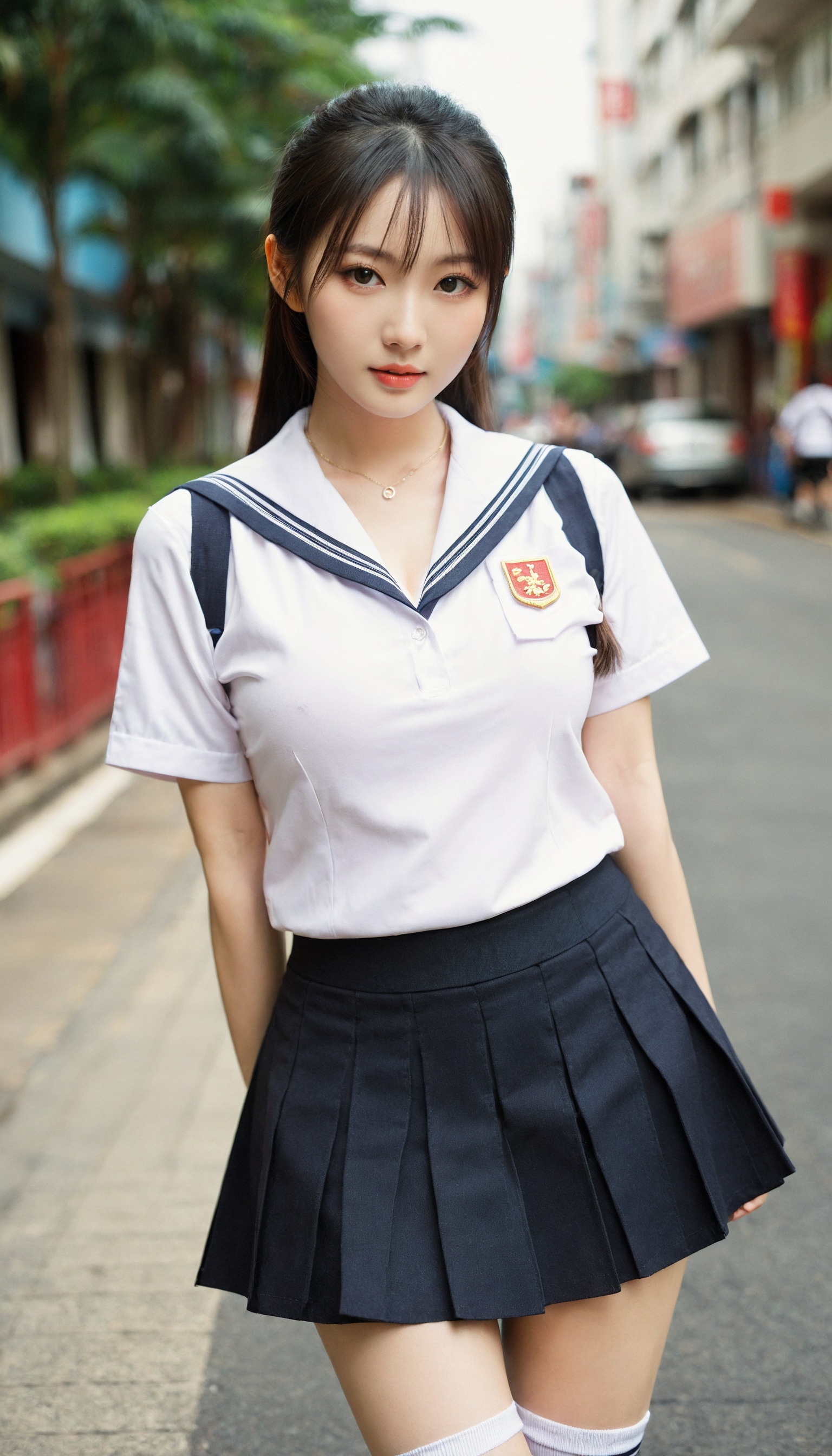{"3": {"inputs": {"seed": 102430995944598, "steps": 32, "cfg": 7.15, "sampler_name": "dpmpp_2m", "scheduler": "karras", "denoise": 1.0, "model": ["27", 0], "positive": ["6", 0], "negative": ["7", 0], "latent_image": ["5", 0]}, "class_type": "KSampler"}, "4": {"inputs": {"ckpt_name": "leosamsHelloworldSDXL_helloworldSDXL32DPO.safetensors"}, "class_type": "CheckpointLoaderSimple"}, "5": {"inputs": {"width": 768, "height": 1344, "batch_size": 1}, "class_type": "EmptyLatentImage"}, "6": {"inputs": {"text": "28 year old girl, (chinese:1.01), (taiwanese:1.01), (detailed face:1.07), (cute:1.06), (beautiful eyes:1.08), (slim:1.00), (seductive pose:1.06), (seductive facial expression:0.99), (idol:1.04), (sexy lips:1.01), (blush:0.96), (double eyelids:0.95), (temptress:1.12), (eyelashes:1.10), (pale skin:0.98), (in a seductive pose:1.11), (large perky breasts:1.14), (cleavage:0.95), (thigh gap:1.12), (school uniform:1.12), choker, busy street, (candid cinema:1.05), (textured skin:1.09), (soft lighting:1.04), (film:1.00), (natural looking skin:1.05), (RAW:1.06), (detailed skin:1.08), (portra:1.05), (skin fuzz:1.07)", "clip": ["27", 1]}, "class_type": "CLIPTextEncode"}, "7": {"inputs": {"text": "(watermark:1.11), (low resolution:1.06), (open mouth:1.13), (twisted:1.13), (distorted:1.10), (bad hands:1.08), (worst quality:1.07)", "clip": ["27", 1]}, "class_type": "CLIPTextEncode"}, "8": {"inputs": {"samples": ["3", 0], "vae": ["4", 2]}, "class_type": "VAEDecode"}, "25": {"inputs": {"lora_name": "nudify_xl.safetensors", "strength_model": 0.27, "strength_clip": 0.08, "model": ["4", 0], "clip": ["4", 1]}, "class_type": "LoraLoader"}, "26": {"inputs": {"lora_name": "shirtlift_SDXL_v2.safetensors", "strength_model": 0.11, "strength_clip": 0.17, "model": ["25", 0], "clip": ["25", 1]}, "class_type": "LoraLoader"}, "27": {"inputs": {"lora_name": "PerfectEyesXL.safetensors", "strength_model": 0.17, "strength_clip": 0.1, "model": ["26", 0], "clip": ["26", 1]}, "class_type": "LoraLoader"}, "30": {"inputs": {"model_name": "4x_NMKD-Superscale-SP_178000_G.pth"}, "class_type": "UpscaleModelLoader"}, "31": {"inputs": {"upscale_model": ["30", 0], "image": ["8", 0]}, "class_type": "ImageUpscaleWithModel"}, "32": {"inputs": {"upscale_method": "lanczos", "scale_by": 0.5, "image": ["31", 0]}, "class_type": "ImageScaleBy"}, "33": {"inputs": {"pixels": ["32", 0], "vae": ["4", 2]}, "class_type": "VAEEncode"}, "34": {"inputs": {"seed": 102430995944598, "steps": 32, "cfg": 7.15, "sampler_name": "dpmpp_2m", "scheduler": "karras", "denoise": 0.3, "model": ["27", 0], "positive": ["6", 0], "negative": ["7", 0], "latent_image": ["33", 0]}, "class_type": "KSampler"}, "36": {"inputs": {"samples": ["34", 0], "vae": ["4", 2]}, "class_type": "VAEDecode"}, "39": {"inputs": {"filename_prefix": "comfyapi-1708234449196", "images": ["36", 0]}, "class_type": "SaveImage"}}