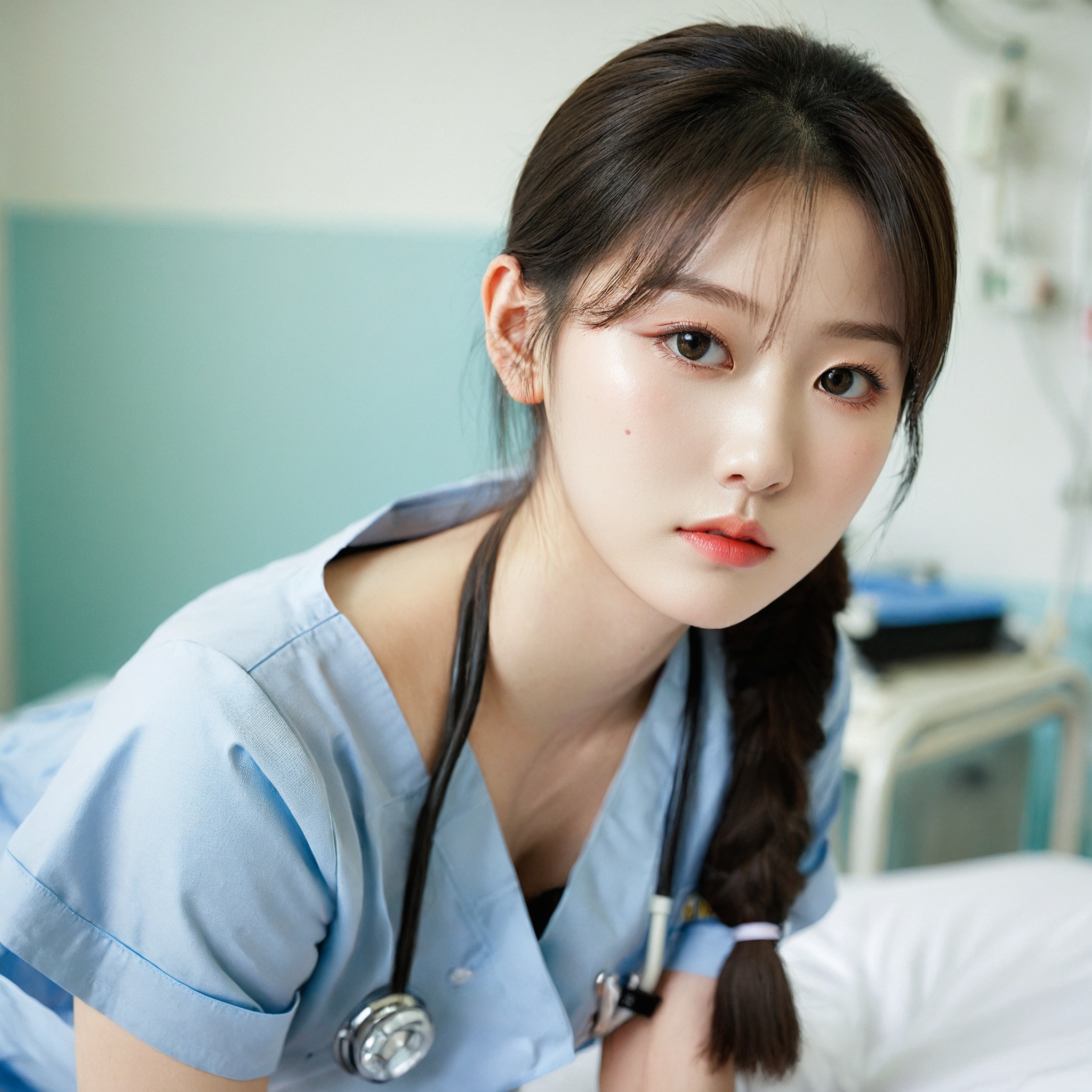 {"3": {"inputs": {"seed": 807141826783173, "steps": 32, "cfg": 7.42, "sampler_name": "dpmpp_2m", "scheduler": "karras", "denoise": 1.0, "model": ["27", 0], "positive": ["6", 0], "negative": ["7", 0], "latent_image": ["5", 0]}, "class_type": "KSampler"}, "4": {"inputs": {"ckpt_name": "leosamsHelloworldSDXL_helloworldSDXL32DPO.safetensors"}, "class_type": "CheckpointLoaderSimple"}, "5": {"inputs": {"width": 1024, "height": 1024, "batch_size": 1}, "class_type": "EmptyLatentImage"}, "6": {"inputs": {"text": "20 year old girl, (korean:1.01), (detailed face:0.99), (beautiful eyes:1.09), (seductive facial expression:1.03), (cute:1.09), (idol:1.10), (seductive pose:1.07), (pale skin:1.02), (double eyelids:0.95), (temptress:0.99), (eyelashes:0.95), (blush:1.00), (slim:1.06), (sexy lips:0.95), (perky ass:1.10), (exposed ass:1.00), (looking back:1.03), (sexy ass:1.00), (thigh gap:0.96), (nurse in uniform:1.05) working in a hospital ward, (portra:1.05), (film:1.04), (detailed skin:1.00), (candid cinema:1.09), (soft lighting:1.06), (textured skin:1.05), (skin fuzz:1.01), (RAW:1.09), (natural looking skin:1.00)", "clip": ["27", 1]}, "class_type": "CLIPTextEncode"}, "7": {"inputs": {"text": "(open mouth:1.09), (worst quality:1.08), (bad hands:1.14), (watermark:1.06), (distorted:1.12), (twisted:1.11), (low resolution:1.10)", "clip": ["27", 1]}, "class_type": "CLIPTextEncode"}, "8": {"inputs": {"samples": ["3", 0], "vae": ["4", 2]}, "class_type": "VAEDecode"}, "25": {"inputs": {"lora_name": "nudify_xl.safetensors", "strength_model": 0.08, "strength_clip": 0.02, "model": ["4", 0], "clip": ["4", 1]}, "class_type": "LoraLoader"}, "26": {"inputs": {"lora_name": "shirtlift_SDXL_v2.safetensors", "strength_model": 0.1, "strength_clip": 0.09, "model": ["25", 0], "clip": ["25", 1]}, "class_type": "LoraLoader"}, "27": {"inputs": {"lora_name": "PerfectEyesXL.safetensors", "strength_model": 0.13, "strength_clip": 0.19, "model": ["26", 0], "clip": ["26", 1]}, "class_type": "LoraLoader"}, "30": {"inputs": {"model_name": "4x_NMKD-Superscale-SP_178000_G.pth"}, "class_type": "UpscaleModelLoader"}, "31": {"inputs": {"upscale_model": ["30", 0], "image": ["8", 0]}, "class_type": "ImageUpscaleWithModel"}, "32": {"inputs": {"upscale_method": "lanczos", "scale_by": 0.5, "image": ["31", 0]}, "class_type": "ImageScaleBy"}, "33": {"inputs": {"pixels": ["32", 0], "vae": ["4", 2]}, "class_type": "VAEEncode"}, "34": {"inputs": {"seed": 807141826783173, "steps": 32, "cfg": 7.42, "sampler_name": "dpmpp_2m", "scheduler": "karras", "denoise": 0.3, "model": ["27", 0], "positive": ["6", 0], "negative": ["7", 0], "latent_image": ["33", 0]}, "class_type": "KSampler"}, "36": {"inputs": {"samples": ["34", 0], "vae": ["4", 2]}, "class_type": "VAEDecode"}, "39": {"inputs": {"filename_prefix": "comfyapi-1708213234069", "images": ["36", 0]}, "class_type": "SaveImage"}}