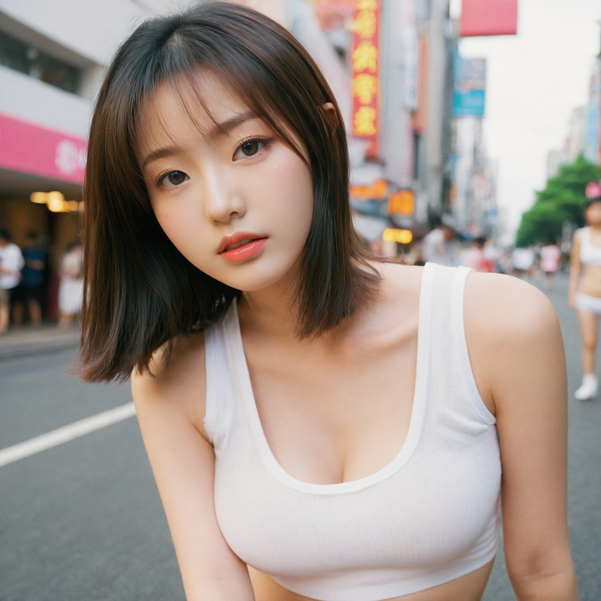 {"3": {"inputs": {"seed": 755596927553271, "steps": 32, "cfg": 6.06, "sampler_name": "dpmpp_2m", "scheduler": "karras", "denoise": 1.0, "model": ["27", 0], "positive": ["6", 0], "negative": ["7", 0], "latent_image": ["5", 0]}, "class_type": "KSampler"}, "4": {"inputs": {"ckpt_name": "leosamsHelloworldSDXL_helloworldSDXL32DPO.safetensors"}, "class_type": "CheckpointLoaderSimple"}, "5": {"inputs": {"width": 1024, "height": 1024, "batch_size": 1}, "class_type": "EmptyLatentImage"}, "6": {"inputs": {"text": "18 year old girl, (korean:0.99), (japanese:1.03), (eyelashes:1.10), (seductive pose:0.95), (detailed face:1.01), (double eyelids:1.07), (idol:0.97), (sexy lips:0.97), (beautiful eyes:1.13), (blush:1.07), (seductive facial expression:0.98), (cute:1.06), (temptress:1.14), (in a seductive pose:0.99), (large perky breasts:1.00), (cleavage:1.00), (thigh gap:1.11), (white tanktop:1.14), busy street, (detailed skin:1.08), (soft lighting:1.05), (candid cinema:1.06), (film:1.05), (RAW:1.00), (portra:1.03), (skin fuzz:1.03), (natural looking skin:1.07), (textured skin:1.05)", "clip": ["27", 1]}, "class_type": "CLIPTextEncode"}, "7": {"inputs": {"text": "(watermark:1.06), (open mouth:1.06), (bad hands:1.12), (worst quality:1.11), (low resolution:1.06), (twisted:1.13), (distorted:1.09)", "clip": ["27", 1]}, "class_type": "CLIPTextEncode"}, "8": {"inputs": {"samples": ["3", 0], "vae": ["4", 2]}, "class_type": "VAEDecode"}, "25": {"inputs": {"lora_name": "nudify_xl.safetensors", "strength_model": 0.11, "strength_clip": 0.04, "model": ["4", 0], "clip": ["4", 1]}, "class_type": "LoraLoader"}, "26": {"inputs": {"lora_name": "shirtlift_SDXL_v2.safetensors", "strength_model": 0.09, "strength_clip": 0.03, "model": ["25", 0], "clip": ["25", 1]}, "class_type": "LoraLoader"}, "27": {"inputs": {"lora_name": "PerfectEyesXL.safetensors", "strength_model": 0.04, "strength_clip": 0.1, "model": ["26", 0], "clip": ["26", 1]}, "class_type": "LoraLoader"}, "30": {"inputs": {"model_name": "4x_NMKD-Superscale-SP_178000_G.pth"}, "class_type": "UpscaleModelLoader"}, "31": {"inputs": {"upscale_model": ["30", 0], "image": ["8", 0]}, "class_type": "ImageUpscaleWithModel"}, "32": {"inputs": {"upscale_method": "lanczos", "scale_by": 0.5, "image": ["31", 0]}, "class_type": "ImageScaleBy"}, "33": {"inputs": {"pixels": ["32", 0], "vae": ["4", 2]}, "class_type": "VAEEncode"}, "34": {"inputs": {"seed": 755596927553271, "steps": 32, "cfg": 6.06, "sampler_name": "dpmpp_2m", "scheduler": "karras", "denoise": 0.3, "model": ["27", 0], "positive": ["6", 0], "negative": ["7", 0], "latent_image": ["33", 0]}, "class_type": "KSampler"}, "36": {"inputs": {"samples": ["34", 0], "vae": ["4", 2]}, "class_type": "VAEDecode"}, "39": {"inputs": {"filename_prefix": "comfyapi-1707950943340", "images": ["36", 0]}, "class_type": "SaveImage"}}