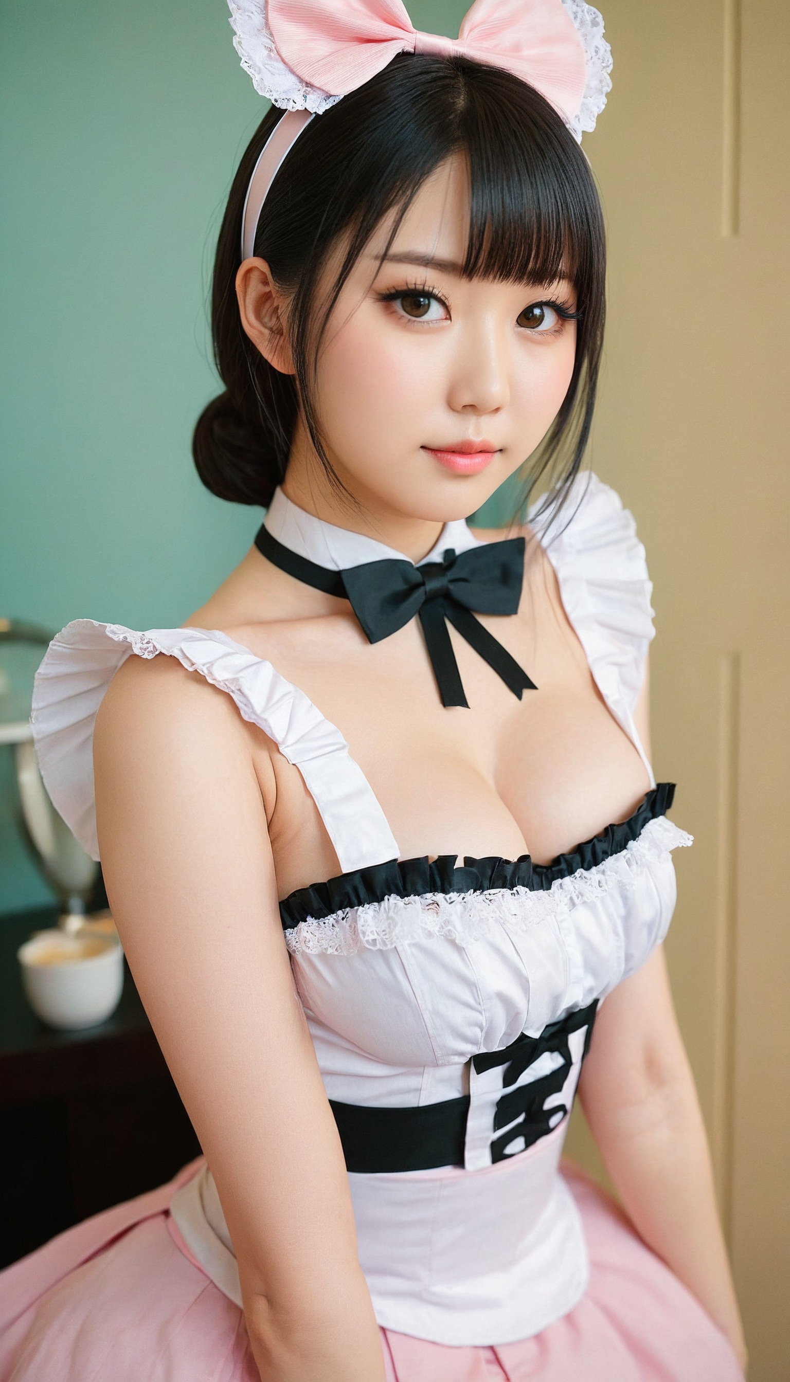 {"3": {"inputs": {"seed": 855225108353234, "steps": 64, "cfg": 6.23, "sampler_name": "dpmpp_2m", "scheduler": "karras", "denoise": 1.0, "model": ["27", 0], "positive": ["6", 0], "negative": ["7", 0], "latent_image": ["5", 0]}, "class_type": "KSampler"}, "4": {"inputs": {"ckpt_name": "juggernautxl.safetensors"}, "class_type": "CheckpointLoaderSimple"}, "5": {"inputs": {"width": 768, "height": 1344, "batch_size": 1}, "class_type": "EmptyLatentImage"}, "6": {"inputs": {"text": "24 year old girl, (japanese:1.10), (detailed face:1.07), (idol:1.03), (seductive facial expression:1.08), (seductive pose:1.00), (sexy lips:1.00), (temptress:1.13), (slim:0.97), (pale skin:1.02), (blush:1.08), (double eyelids:1.02), (beautiful eyes:1.09), (cute:1.08), (eyelashes:1.10), (in a seductive pose:0.98), (large perky breasts:1.01), (cleavage:1.10), (thigh gap:1.08), in a (skimpy maid costume:1.12) working at a maid cafe, choker, bowtie, headband, pleated skirt, (film:1.07), (textured skin:1.02), (RAW:1.09), (skin fuzz:1.02), (portra:1.04), (soft lighting:1.02), (natural looking skin:1.01), (detailed skin:1.03), (candid cinema:1.03)", "clip": ["27", 1]}, "class_type": "CLIPTextEncode"}, "7": {"inputs": {"text": "(distorted:1.10), (twisted:1.08), (worst quality:1.13), (bad hands:1.06), (open mouth:1.08), (watermark:1.08), (low resolution:1.05)", "clip": ["27", 1]}, "class_type": "CLIPTextEncode"}, "8": {"inputs": {"samples": ["3", 0], "vae": ["4", 2]}, "class_type": "VAEDecode"}, "25": {"inputs": {"lora_name": "nudify_xl.safetensors", "strength_model": 0.32, "strength_clip": 0.32, "model": ["4", 0], "clip": ["4", 1]}, "class_type": "LoraLoader"}, "26": {"inputs": {"lora_name": "shirtlift_SDXL_v2.safetensors", "strength_model": 0.07, "strength_clip": 0.07, "model": ["25", 0], "clip": ["25", 1]}, "class_type": "LoraLoader"}, "27": {"inputs": {"lora_name": "PerfectEyesXL.safetensors", "strength_model": 0.19, "strength_clip": 0.09, "model": ["26", 0], "clip": ["26", 1]}, "class_type": "LoraLoader"}, "30": {"inputs": {"model_name": "4x_NMKD-Superscale-SP_178000_G.pth"}, "class_type": "UpscaleModelLoader"}, "31": {"inputs": {"upscale_model": ["30", 0], "image": ["8", 0]}, "class_type": "ImageUpscaleWithModel"}, "32": {"inputs": {"upscale_method": "lanczos", "scale_by": 0.5, "image": ["31", 0]}, "class_type": "ImageScaleBy"}, "33": {"inputs": {"pixels": ["32", 0], "vae": ["4", 2]}, "class_type": "VAEEncode"}, "34": {"inputs": {"seed": 855225108353234, "steps": 64, "cfg": 6.23, "sampler_name": "dpmpp_2m", "scheduler": "karras", "denoise": 0.3, "model": ["27", 0], "positive": ["6", 0], "negative": ["7", 0], "latent_image": ["33", 0]}, "class_type": "KSampler"}, "36": {"inputs": {"samples": ["34", 0], "vae": ["4", 2]}, "class_type": "VAEDecode"}, "39": {"inputs": {"filename_prefix": "comfyapi-1727014694266", "images": ["36", 0]}, "class_type": "SaveImage"}}