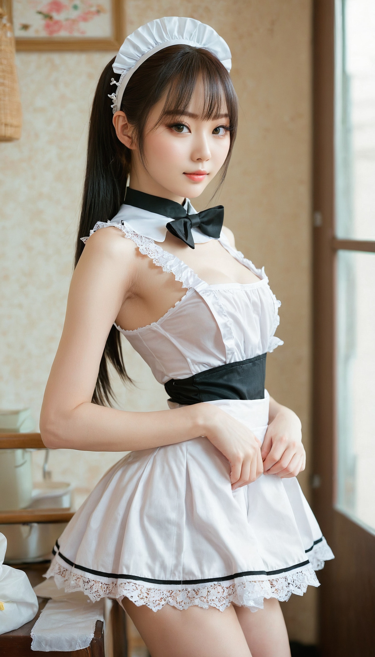 {"3": {"inputs": {"seed": 744324845000557, "steps": 64, "cfg": 7.89, "sampler_name": "dpmpp_2m", "scheduler": "karras", "denoise": 1.0, "model": ["27", 0], "positive": ["6", 0], "negative": ["7", 0], "latent_image": ["5", 0]}, "class_type": "KSampler"}, "4": {"inputs": {"ckpt_name": "juggernautxl.safetensors"}, "class_type": "CheckpointLoaderSimple"}, "5": {"inputs": {"width": 768, "height": 1344, "batch_size": 1}, "class_type": "EmptyLatentImage"}, "6": {"inputs": {"text": "28 year old girl, (japanese:1.00), (russian:1.11), (ukrainian:1.14), (idol:1.14), (temptress:1.07), (slim:1.12), (double eyelids:1.13), (blush:0.99), (seductive pose:1.05), (eyelashes:1.12), (cute:1.10), (pale skin:1.12), (detailed face:0.98), (beautiful eyes:1.12), (seductive facial expression:1.11), (sexy lips:1.12), (perky ass:1.14), (exposed ass:1.03), (looking back:0.97), (sexy ass:1.00), (thigh gap:1.14), in a (skimpy maid costume:1.13) working at a maid cafe, choker, bowtie, headband, pleated skirt, (textured skin:1.01), (candid cinema:1.02), (skin fuzz:1.02), (portra:1.09), (natural looking skin:1.02), (RAW:1.09), (detailed skin:1.01), (soft lighting:1.02), (film:1.08)", "clip": ["27", 1]}, "class_type": "CLIPTextEncode"}, "7": {"inputs": {"text": "(distorted:1.08), (twisted:1.14), (low resolution:1.05), (bad hands:1.09), (watermark:1.14), (open mouth:1.13), (worst quality:1.14)", "clip": ["27", 1]}, "class_type": "CLIPTextEncode"}, "8": {"inputs": {"samples": ["3", 0], "vae": ["4", 2]}, "class_type": "VAEDecode"}, "25": {"inputs": {"lora_name": "nudify_xl.safetensors", "strength_model": 0.13, "strength_clip": 0.21, "model": ["4", 0], "clip": ["4", 1]}, "class_type": "LoraLoader"}, "26": {"inputs": {"lora_name": "shirtlift_SDXL_v2.safetensors", "strength_model": 0.11, "strength_clip": 0.0, "model": ["25", 0], "clip": ["25", 1]}, "class_type": "LoraLoader"}, "27": {"inputs": {"lora_name": "PerfectEyesXL.safetensors", "strength_model": 0.11, "strength_clip": 0.05, "model": ["26", 0], "clip": ["26", 1]}, "class_type": "LoraLoader"}, "30": {"inputs": {"model_name": "4x_NMKD-Superscale-SP_178000_G.pth"}, "class_type": "UpscaleModelLoader"}, "31": {"inputs": {"upscale_model": ["30", 0], "image": ["8", 0]}, "class_type": "ImageUpscaleWithModel"}, "32": {"inputs": {"upscale_method": "lanczos", "scale_by": 0.5, "image": ["31", 0]}, "class_type": "ImageScaleBy"}, "33": {"inputs": {"pixels": ["32", 0], "vae": ["4", 2]}, "class_type": "VAEEncode"}, "34": {"inputs": {"seed": 744324845000557, "steps": 64, "cfg": 7.89, "sampler_name": "dpmpp_2m", "scheduler": "karras", "denoise": 0.3, "model": ["27", 0], "positive": ["6", 0], "negative": ["7", 0], "latent_image": ["33", 0]}, "class_type": "KSampler"}, "36": {"inputs": {"samples": ["34", 0], "vae": ["4", 2]}, "class_type": "VAEDecode"}, "39": {"inputs": {"filename_prefix": "comfyapi-1714501081556", "images": ["36", 0]}, "class_type": "SaveImage"}}