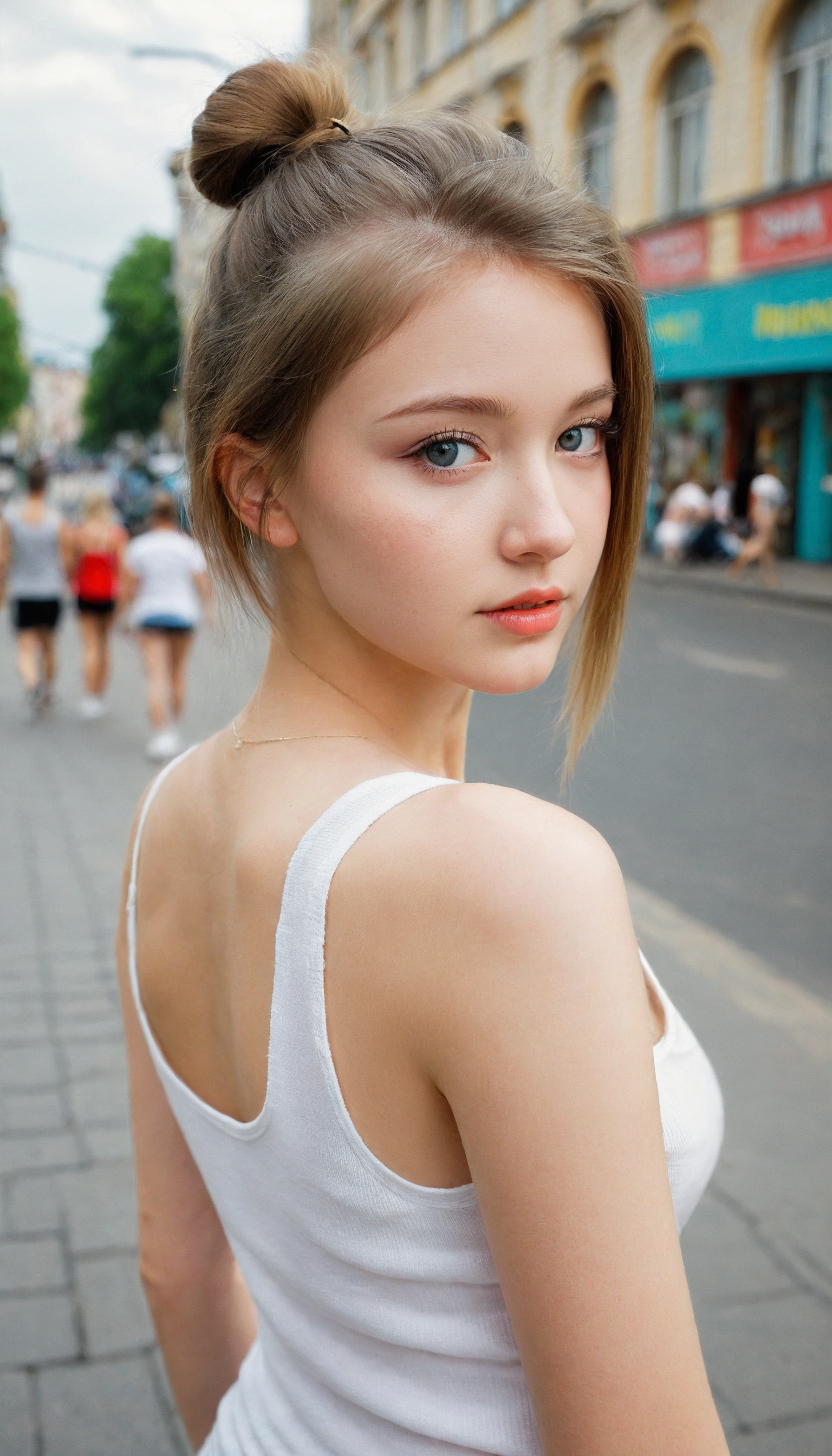 {"3": {"inputs": {"seed": 142995476631804, "steps": 32, "cfg": 5.53, "sampler_name": "dpmpp_2m", "scheduler": "karras", "denoise": 1.0, "model": ["27", 0], "positive": ["6", 0], "negative": ["7", 0], "latent_image": ["5", 0]}, "class_type": "KSampler"}, "4": {"inputs": {"ckpt_name": "leosamsHelloworldSDXL_helloworldSDXL32DPO.safetensors"}, "class_type": "CheckpointLoaderSimple"}, "5": {"inputs": {"width": 768, "height": 1344, "batch_size": 1}, "class_type": "EmptyLatentImage"}, "6": {"inputs": {"text": "21 year old girl, (ukrainian:1.03), (irish:0.96), (eyelashes:0.98), (detailed face:1.10), (seductive facial expression:1.09), (cute:1.12), (double eyelids:1.13), (slim:1.02), (blush:0.98), (seductive pose:1.08), (sexy lips:0.99), (beautiful eyes:1.14), (temptress:1.01), (pale skin:1.00), (perky ass:1.09), (exposed ass:1.07), (looking back:1.14), (sexy ass:1.05), (thigh gap:0.97), (white tanktop:1.05), busy street, (textured skin:1.01), (candid cinema:1.04), (film:1.01), (soft lighting:1.00), (skin fuzz:1.09), (natural looking skin:1.03), (detailed skin:1.01), (RAW:1.05)", "clip": ["27", 1]}, "class_type": "CLIPTextEncode"}, "7": {"inputs": {"text": "(bad hands:1.09), (distorted:1.12), (open mouth:1.09), (twisted:1.08), (watermark:1.12), (worst quality:1.07), (low resolution:1.09)", "clip": ["27", 1]}, "class_type": "CLIPTextEncode"}, "8": {"inputs": {"samples": ["3", 0], "vae": ["4", 2]}, "class_type": "VAEDecode"}, "25": {"inputs": {"lora_name": "nudify_xl.safetensors", "strength_model": 0.27, "strength_clip": 0.1, "model": ["4", 0], "clip": ["4", 1]}, "class_type": "LoraLoader"}, "26": {"inputs": {"lora_name": "shirtlift_SDXL_v2.safetensors", "strength_model": 0.06, "strength_clip": 0.14, "model": ["25", 0], "clip": ["25", 1]}, "class_type": "LoraLoader"}, "27": {"inputs": {"lora_name": "PerfectEyesXL.safetensors", "strength_model": 0.11, "strength_clip": 0.02, "model": ["26", 0], "clip": ["26", 1]}, "class_type": "LoraLoader"}, "30": {"inputs": {"model_name": "4x_NMKD-Superscale-SP_178000_G.pth"}, "class_type": "UpscaleModelLoader"}, "31": {"inputs": {"upscale_model": ["30", 0], "image": ["8", 0]}, "class_type": "ImageUpscaleWithModel"}, "32": {"inputs": {"upscale_method": "lanczos", "scale_by": 0.5, "image": ["31", 0]}, "class_type": "ImageScaleBy"}, "33": {"inputs": {"pixels": ["32", 0], "vae": ["4", 2]}, "class_type": "VAEEncode"}, "34": {"inputs": {"seed": 142995476631804, "steps": 32, "cfg": 5.53, "sampler_name": "dpmpp_2m", "scheduler": "karras", "denoise": 0.3, "model": ["27", 0], "positive": ["6", 0], "negative": ["7", 0], "latent_image": ["33", 0]}, "class_type": "KSampler"}, "36": {"inputs": {"samples": ["34", 0], "vae": ["4", 2]}, "class_type": "VAEDecode"}, "39": {"inputs": {"filename_prefix": "comfyapi-1707932770321", "images": ["36", 0]}, "class_type": "SaveImage"}}