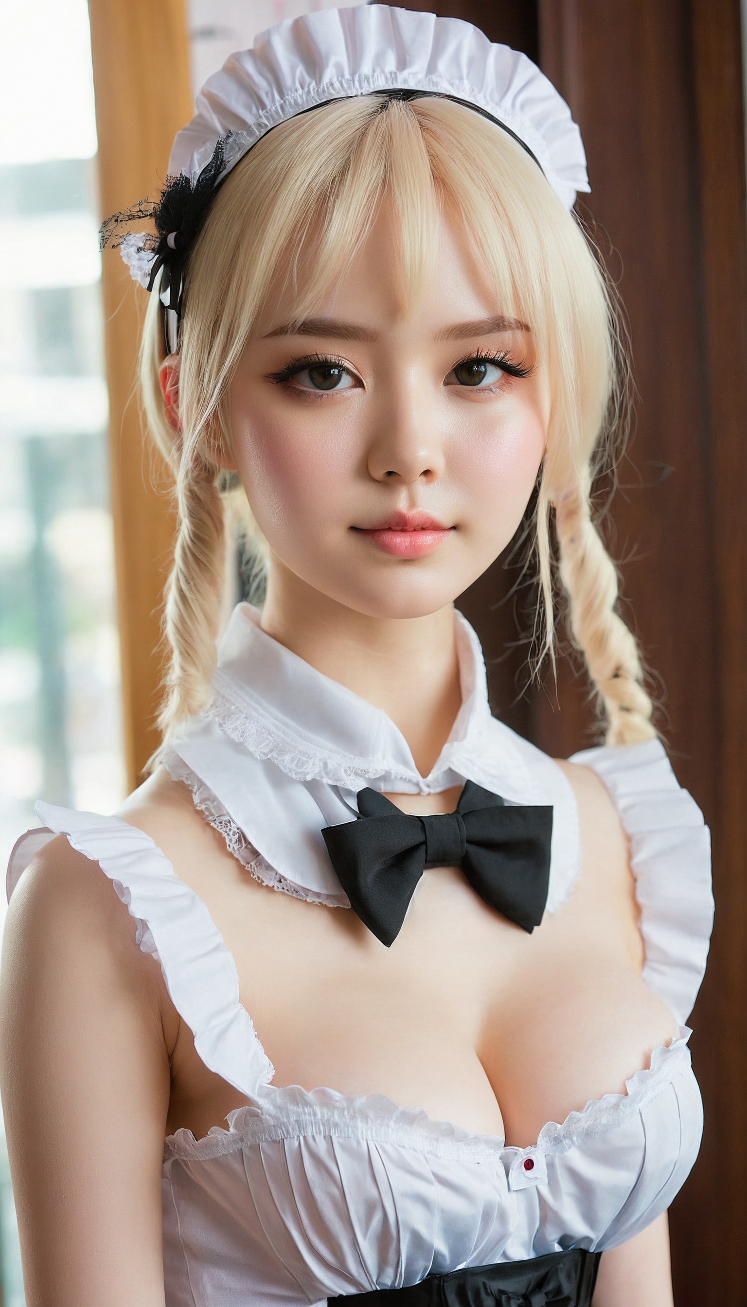 {"3": {"inputs": {"seed": 475095242306984, "steps": 32, "cfg": 6.61, "sampler_name": "dpmpp_2m", "scheduler": "karras", "denoise": 1.0, "model": ["27", 0], "positive": ["6", 0], "negative": ["7", 0], "latent_image": ["5", 0]}, "class_type": "KSampler"}, "4": {"inputs": {"ckpt_name": "juggernautxl.safetensors"}, "class_type": "CheckpointLoaderSimple"}, "5": {"inputs": {"width": 768, "height": 1344, "batch_size": 1}, "class_type": "EmptyLatentImage"}, "6": {"inputs": {"text": "25 year old girl, (temptress:0.98), (eyelashes:0.99), (pale skin:1.00), (sexy lips:0.96), (slim:1.03), (blush:1.09), (seductive facial expression:0.95), (idol:1.05), (cute:0.98), (detailed face:0.97), (double eyelids:1.04), (seductive pose:1.13), (in a seductive pose:1.00), (large perky breasts:0.98), (cleavage:0.99), (thigh gap:1.05), in a (skimpy maid costume:1.09) working at a maid cafe, choker, bowtie, headband, pleated skirt, (skin fuzz:1.04), (natural looking skin:1.08), (film:1.09), (candid cinema:1.08), (detailed skin:1.03), (RAW:1.06), (portra:1.05), (textured skin:1.03), (soft lighting:1.04)", "clip": ["27", 1]}, "class_type": "CLIPTextEncode"}, "7": {"inputs": {"text": "(bad hands:1.13), (open mouth:1.09), (worst quality:1.10), (distorted:1.10), (low resolution:1.11), (watermark:1.10), (twisted:1.10)", "clip": ["27", 1]}, "class_type": "CLIPTextEncode"}, "8": {"inputs": {"samples": ["3", 0], "vae": ["4", 2]}, "class_type": "VAEDecode"}, "25": {"inputs": {"lora_name": "nudify_xl.safetensors", "strength_model": 0.03, "strength_clip": 0.24, "model": ["4", 0], "clip": ["4", 1]}, "class_type": "LoraLoader"}, "26": {"inputs": {"lora_name": "shirtlift_SDXL_v2.safetensors", "strength_model": 0.09, "strength_clip": 0.02, "model": ["25", 0], "clip": ["25", 1]}, "class_type": "LoraLoader"}, "27": {"inputs": {"lora_name": "PerfectEyesXL.safetensors", "strength_model": 0.15, "strength_clip": 0.02, "model": ["26", 0], "clip": ["26", 1]}, "class_type": "LoraLoader"}, "30": {"inputs": {"model_name": "4x_NMKD-Superscale-SP_178000_G.pth"}, "class_type": "UpscaleModelLoader"}, "31": {"inputs": {"upscale_model": ["30", 0], "image": ["8", 0]}, "class_type": "ImageUpscaleWithModel"}, "32": {"inputs": {"upscale_method": "lanczos", "scale_by": 0.5, "image": ["31", 0]}, "class_type": "ImageScaleBy"}, "33": {"inputs": {"pixels": ["32", 0], "vae": ["4", 2]}, "class_type": "VAEEncode"}, "34": {"inputs": {"seed": 475095242306984, "steps": 32, "cfg": 6.61, "sampler_name": "dpmpp_2m", "scheduler": "karras", "denoise": 0.3, "model": ["27", 0], "positive": ["6", 0], "negative": ["7", 0], "latent_image": ["33", 0]}, "class_type": "KSampler"}, "36": {"inputs": {"samples": ["34", 0], "vae": ["4", 2]}, "class_type": "VAEDecode"}, "39": {"inputs": {"filename_prefix": "comfyapi-1725848863551", "images": ["36", 0]}, "class_type": "SaveImage"}}